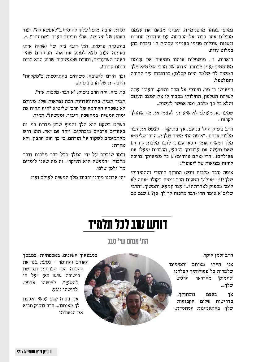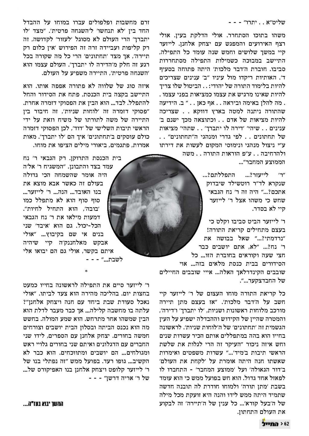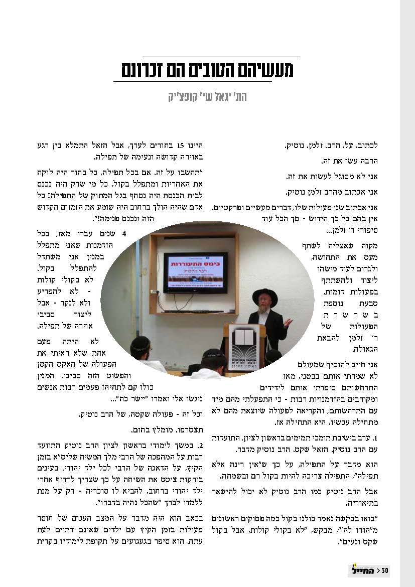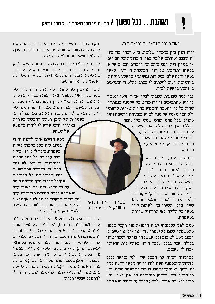 "החייל" 37 מוקדש לרב זלמן נוטיק