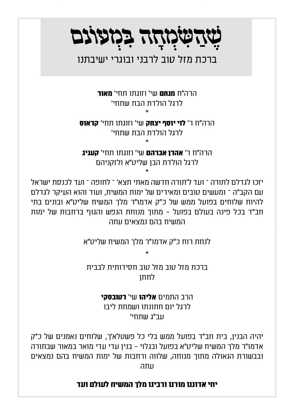 הגלריה השבועית מבית משיח 770