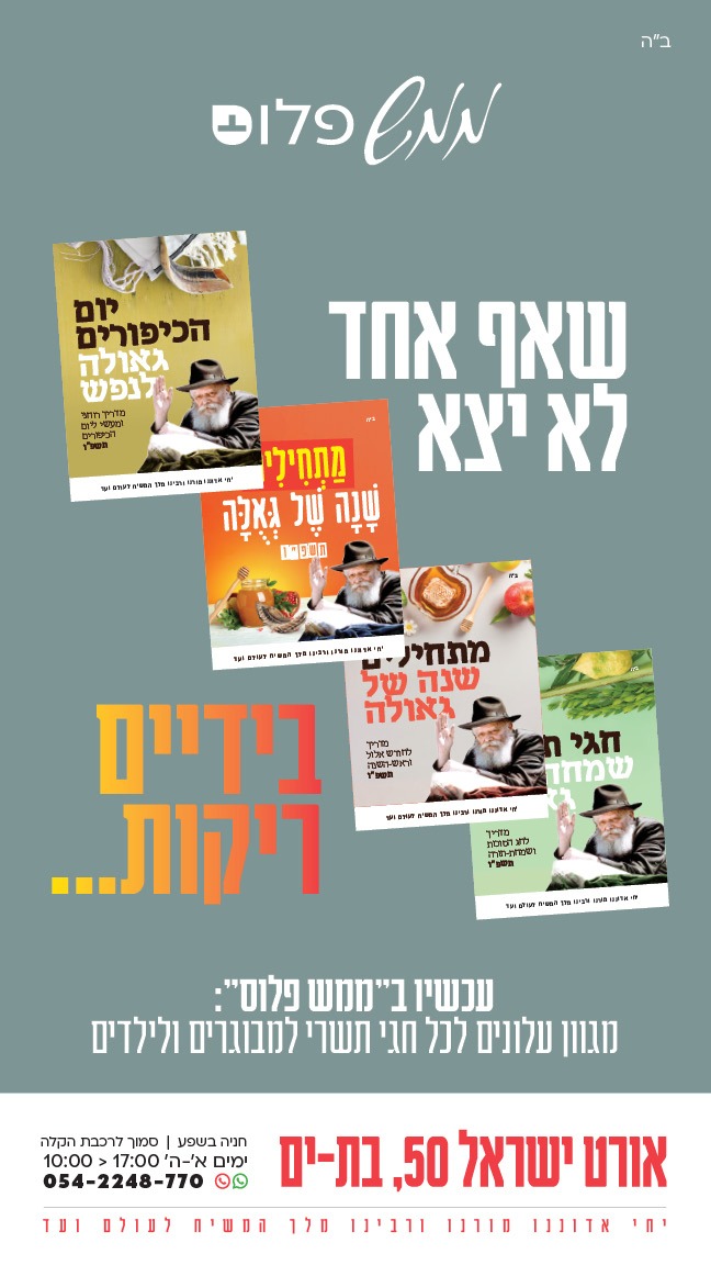 בהשקעה מרובה ובהפקה מרהיבה יוצאים לאור בימים אלה עלוני החגים תשפ"ו המהודרים של ‘ממש’ המביאים את הרעיונות וההנחיות על החג הקרוב בשפה בהירה וקולחת ובעיצוב נאה ומושך עין. העלונים נוחים לשימוש ועם התאריכים והזמנים המותאמים אשר יסייעו לכל אחד ואחת מהידידים, השכנים והמקורבים שלכם לחגוג חג כהלכה עם ניחוח של גאולה. הפיצו את האור.