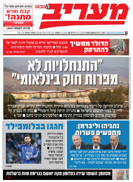 - הודעה זו של מייק פומפיאו, שר החוץ בממשל טרמפ, באה ימים ספורים אחרי ההודעה המבישה של האיחוד האירופי על סימון מוצרים מההתנחלויות. הפוך על הפוך.