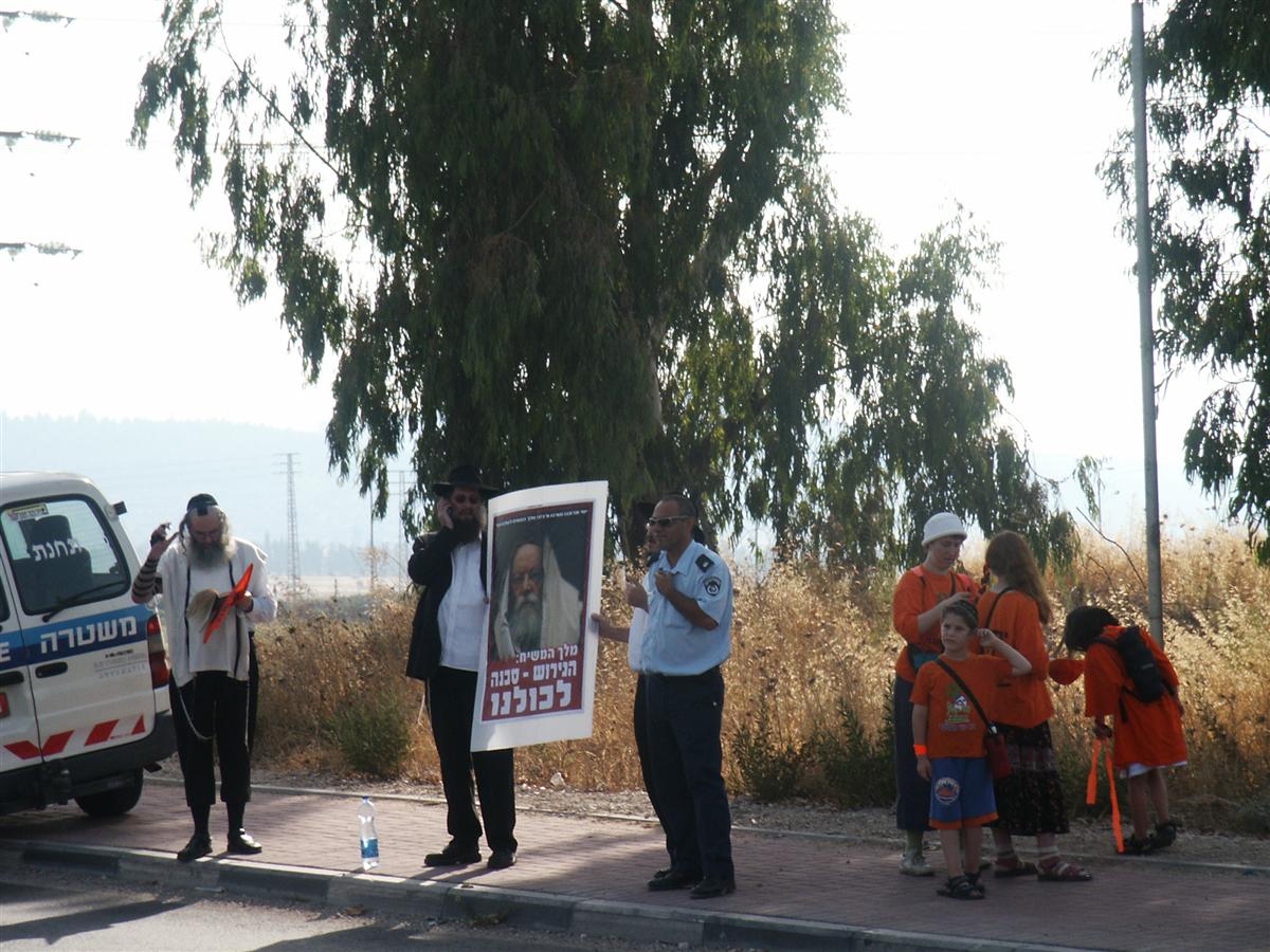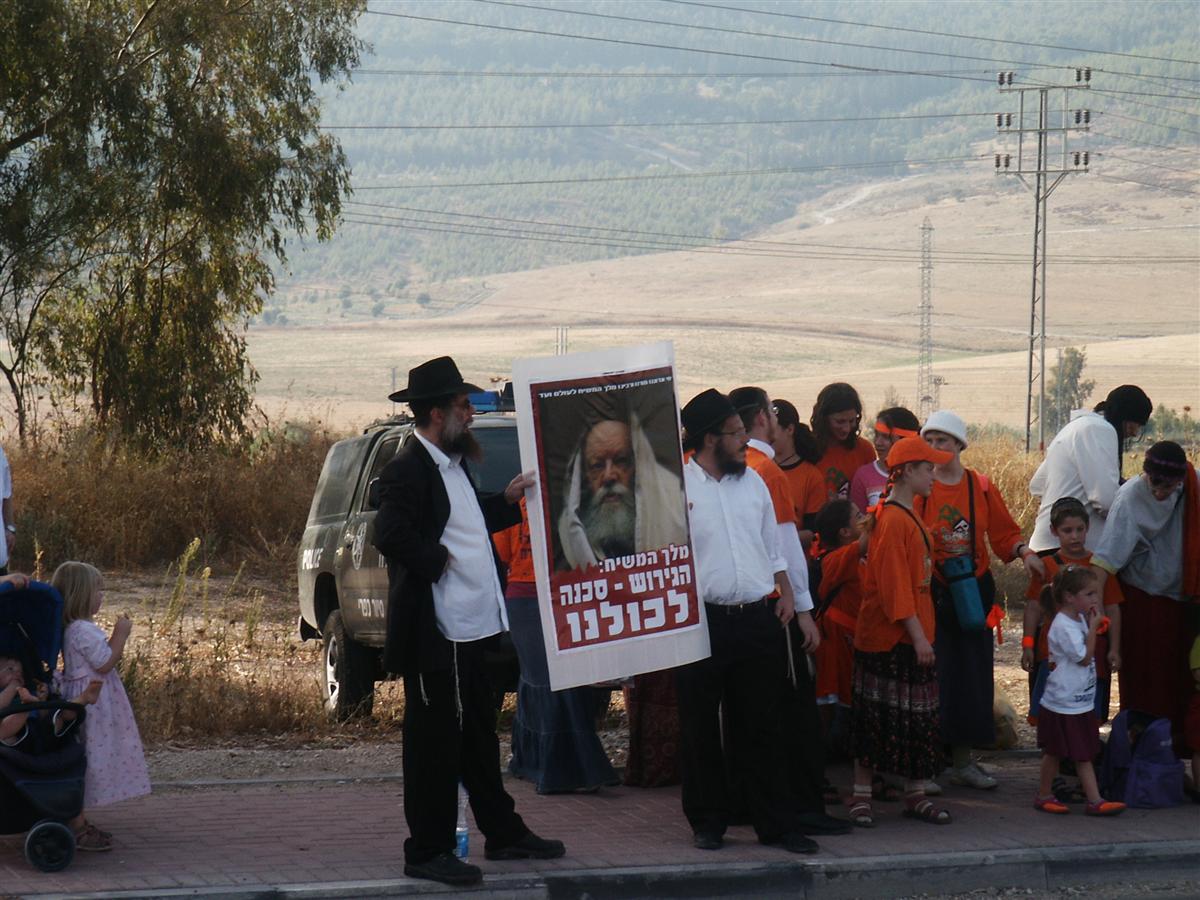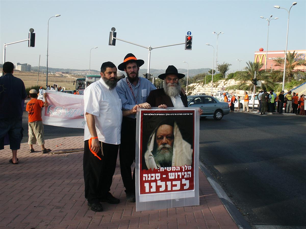 במהלך הימים שקדמו לעקירה והגירוש מגוש קטיף, שבימים אלו מציינים 17 שנה לאירוע, יצאו המוני חסידי חב"ד ונטלו חלק במיזמי המחאה ברחבי הארץ. לצד דגלי משיח הם הניפו שלטים בהם הובעה דעתו הנחרצת של הרבי שליט"א מלך המשיח כנגד המהלך. צפו בתמונות