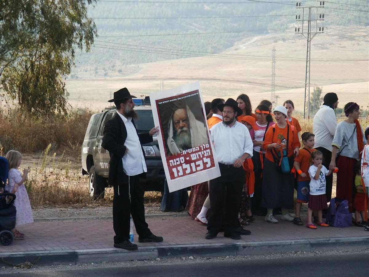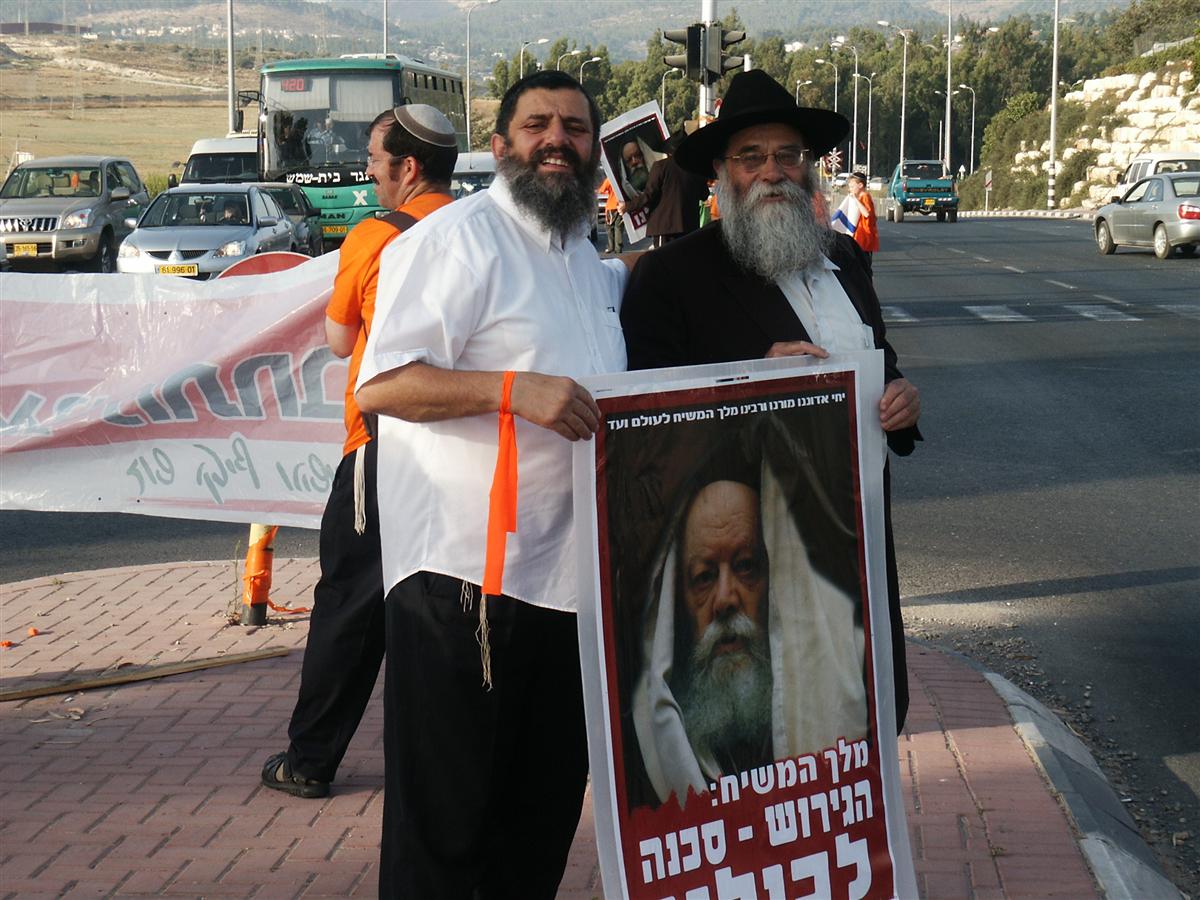 כשיצאו חסידי חב"ד למחאה כנגד תהליך ההתנקות מגוש קטיף וצפון השומרון, הם הביאו את דעתו של הרבי שליט"א מלך המשיח, אשר מזה עשרות שנים מוחה ומזהיר ממהלכים אלו, כפי שכולנו נוכחנו לראות.