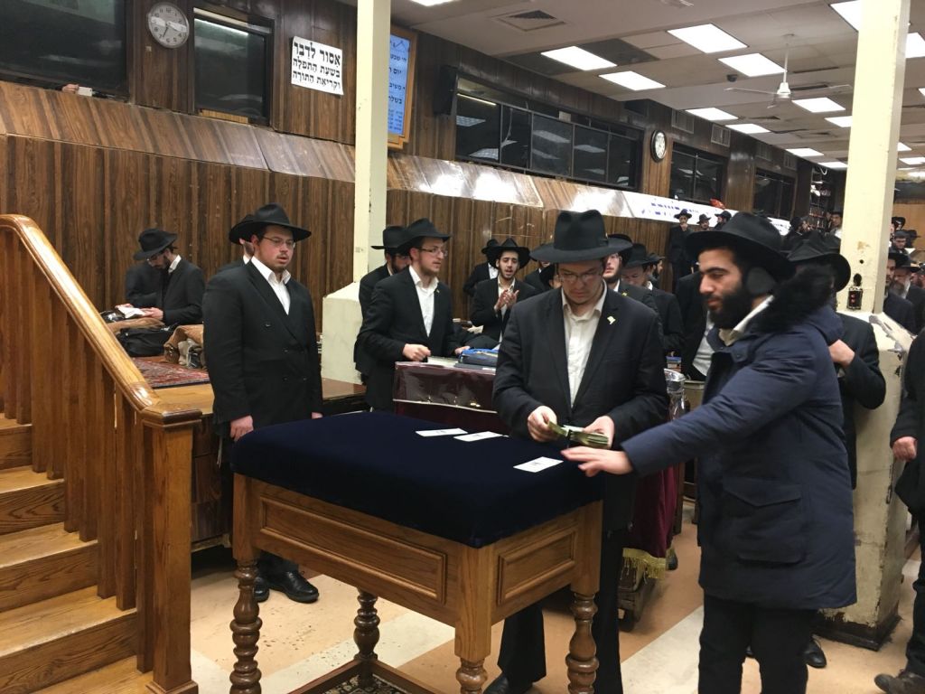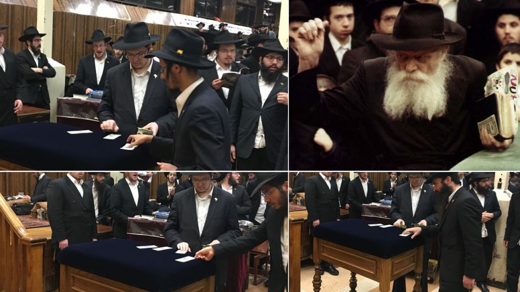 כמידי יום ראשון נערכת "חלוקת דולרים" מעמד בו כ"ק הרבי מלך המשיח שליט"א מחלק דולרים בשביל שליחות מצוות צדקה • בשנים האחרונות רוב החלוקות נערכות אחרי תפילת מנחה ב"זאל הגדול" של "בית רבינו שבבבל" - 770 שבניו יורק • הת' מענדי ציקשוולי מגיש תמונות מהמעמד שנערך בה' שבט תשע"ח.