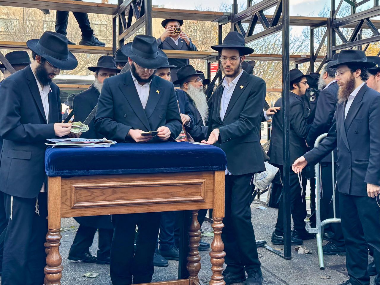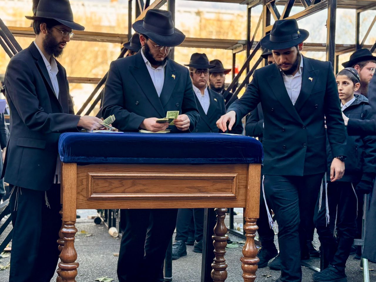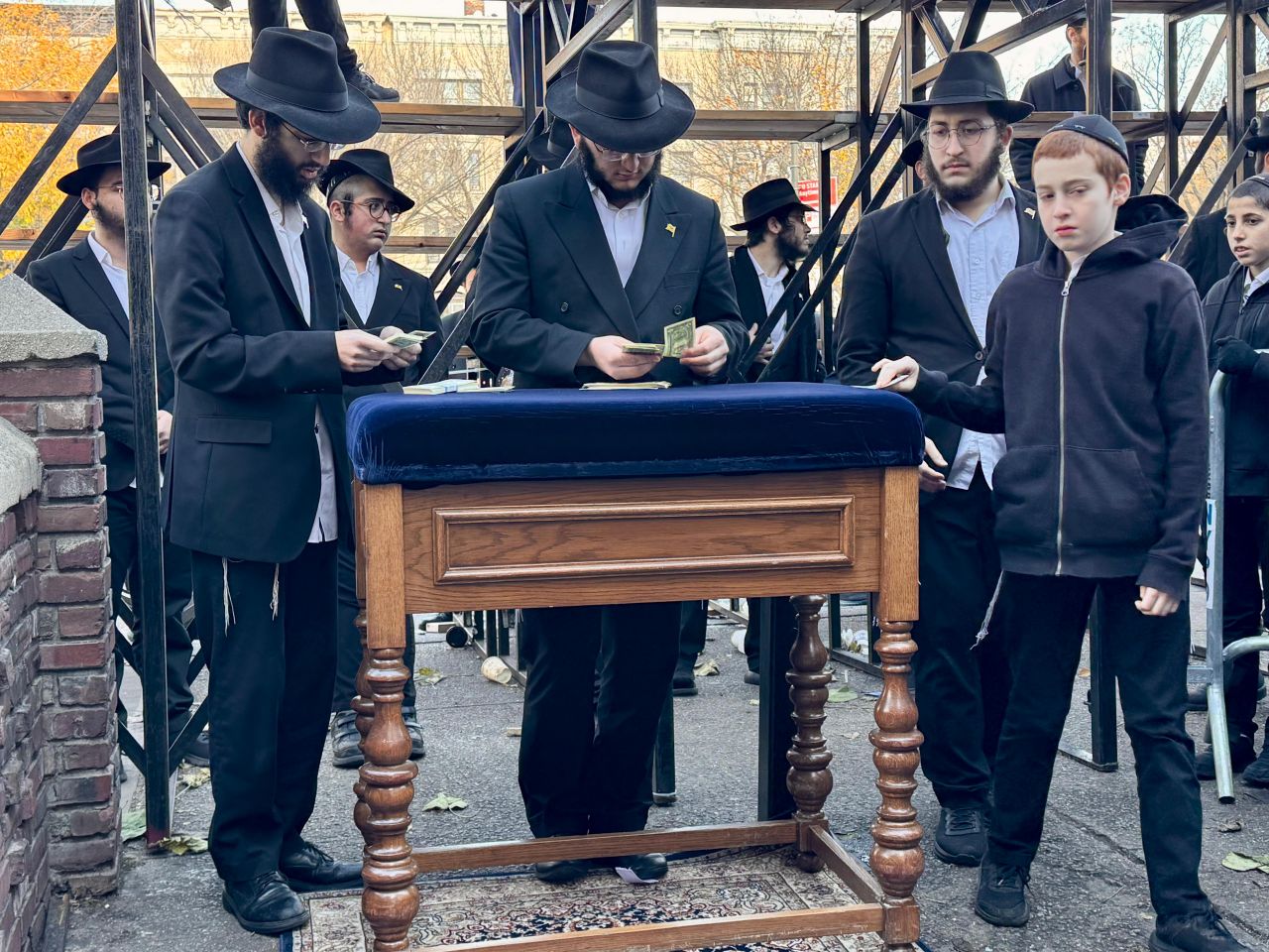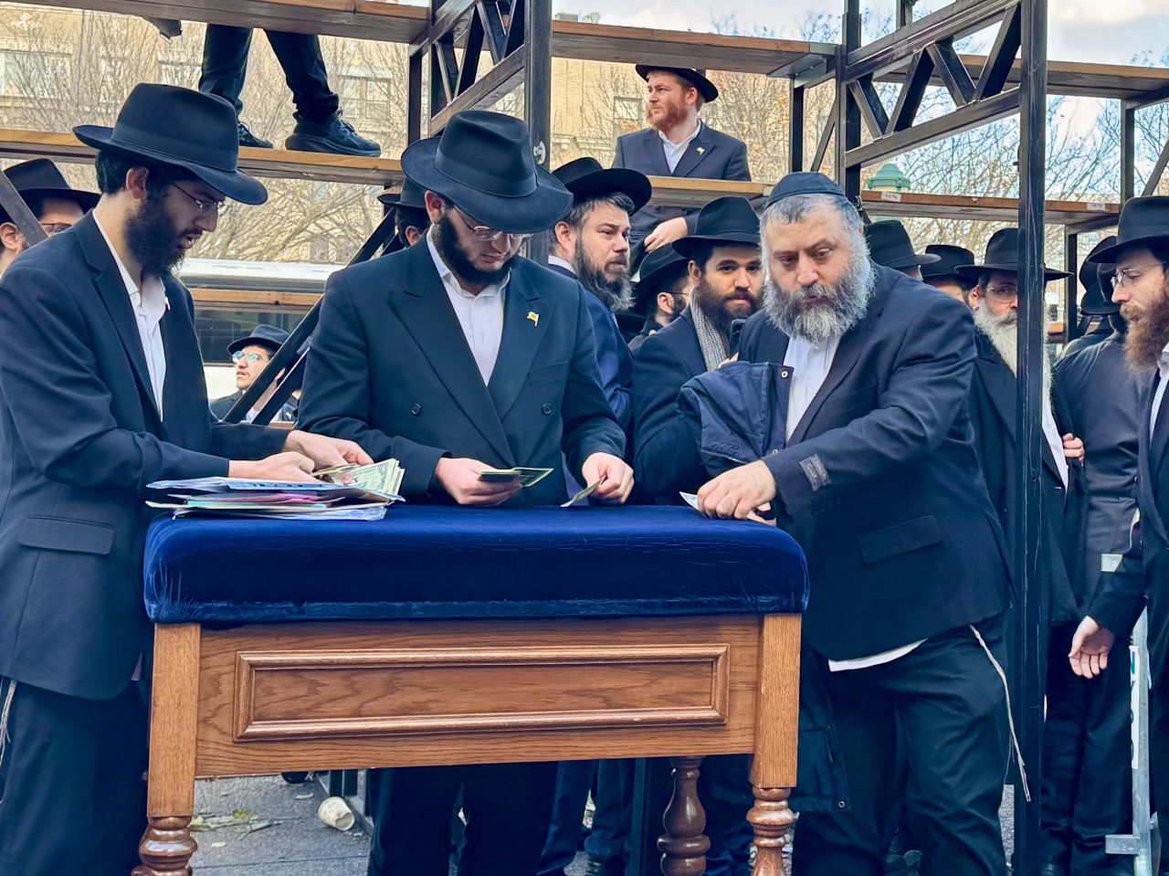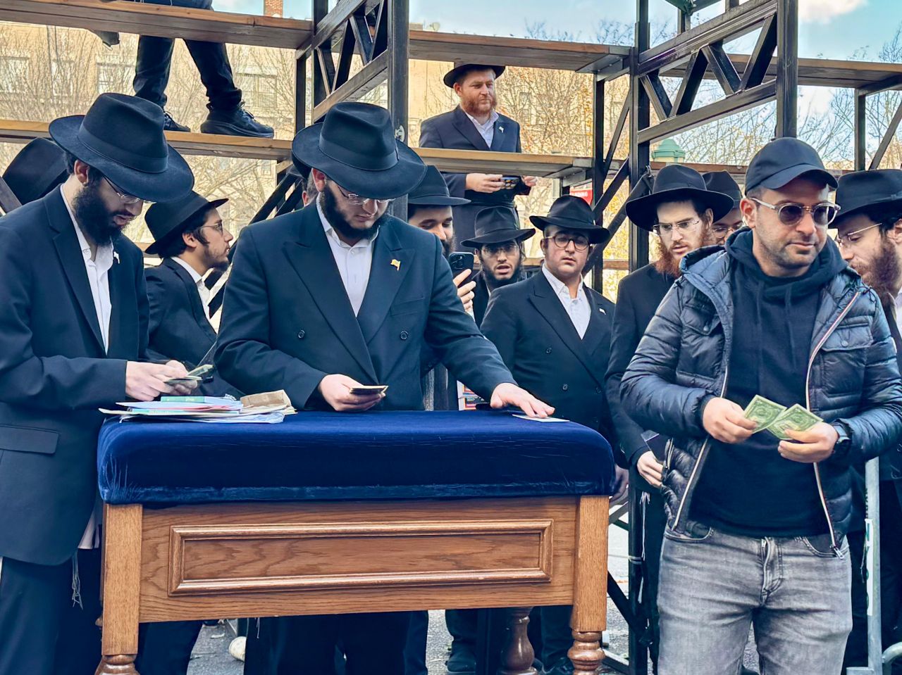 הצלם הת׳ פתחיה אדעליסט תיעד את החלוקה הבוקר בפתחו של 770.