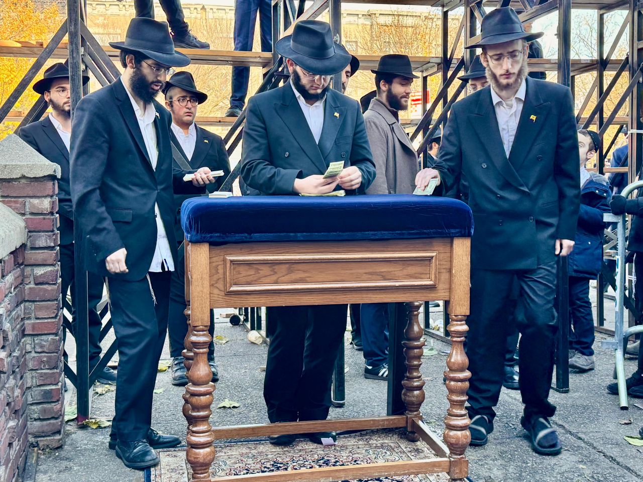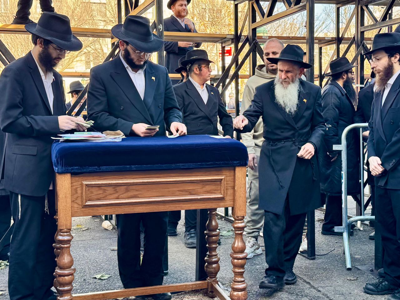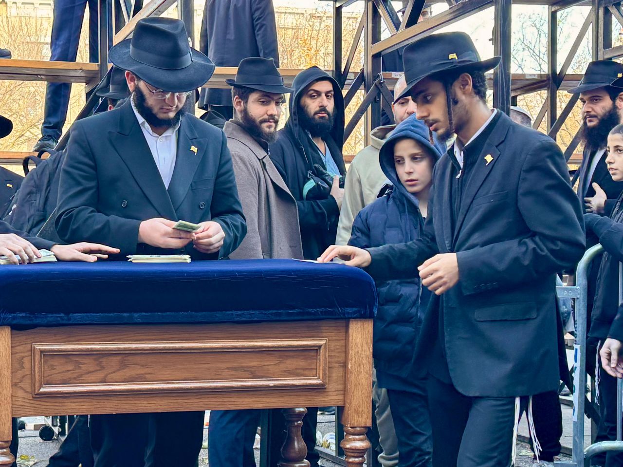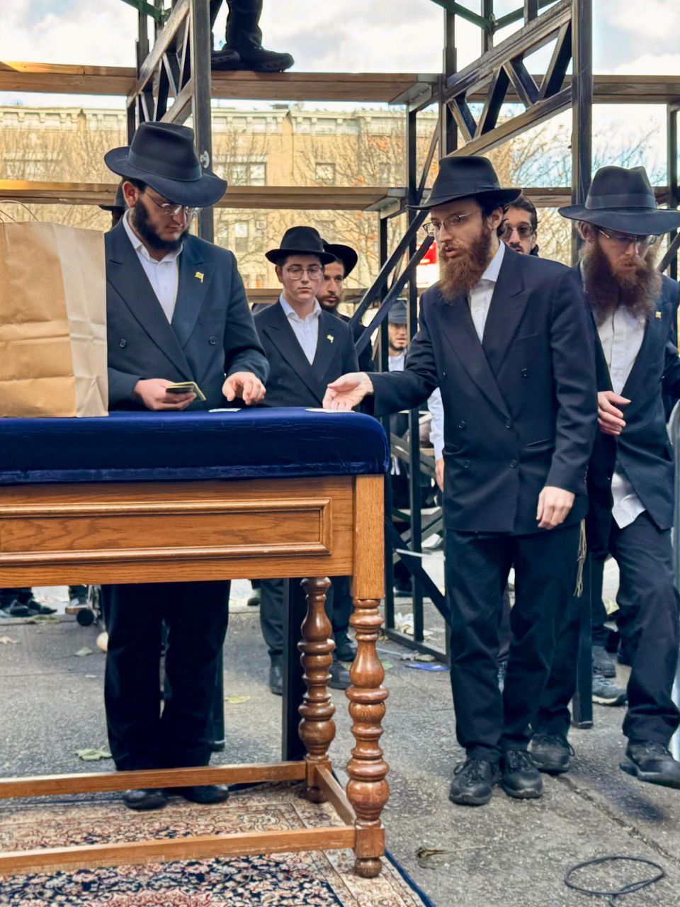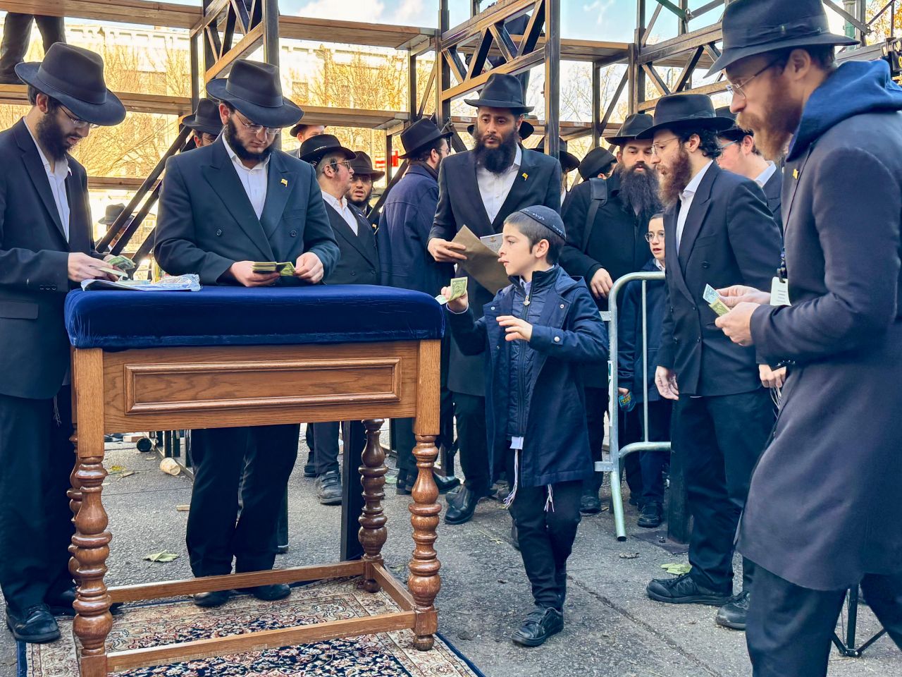 הצלם הת׳ פתחיה אדעליסט תיעד את החלוקה הבוקר בפתחו של 770.