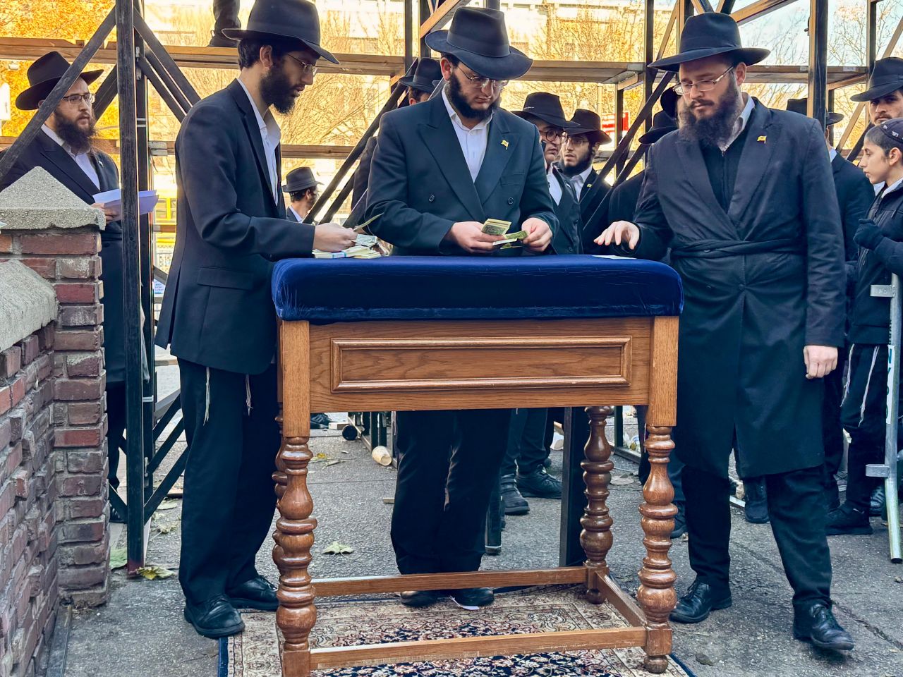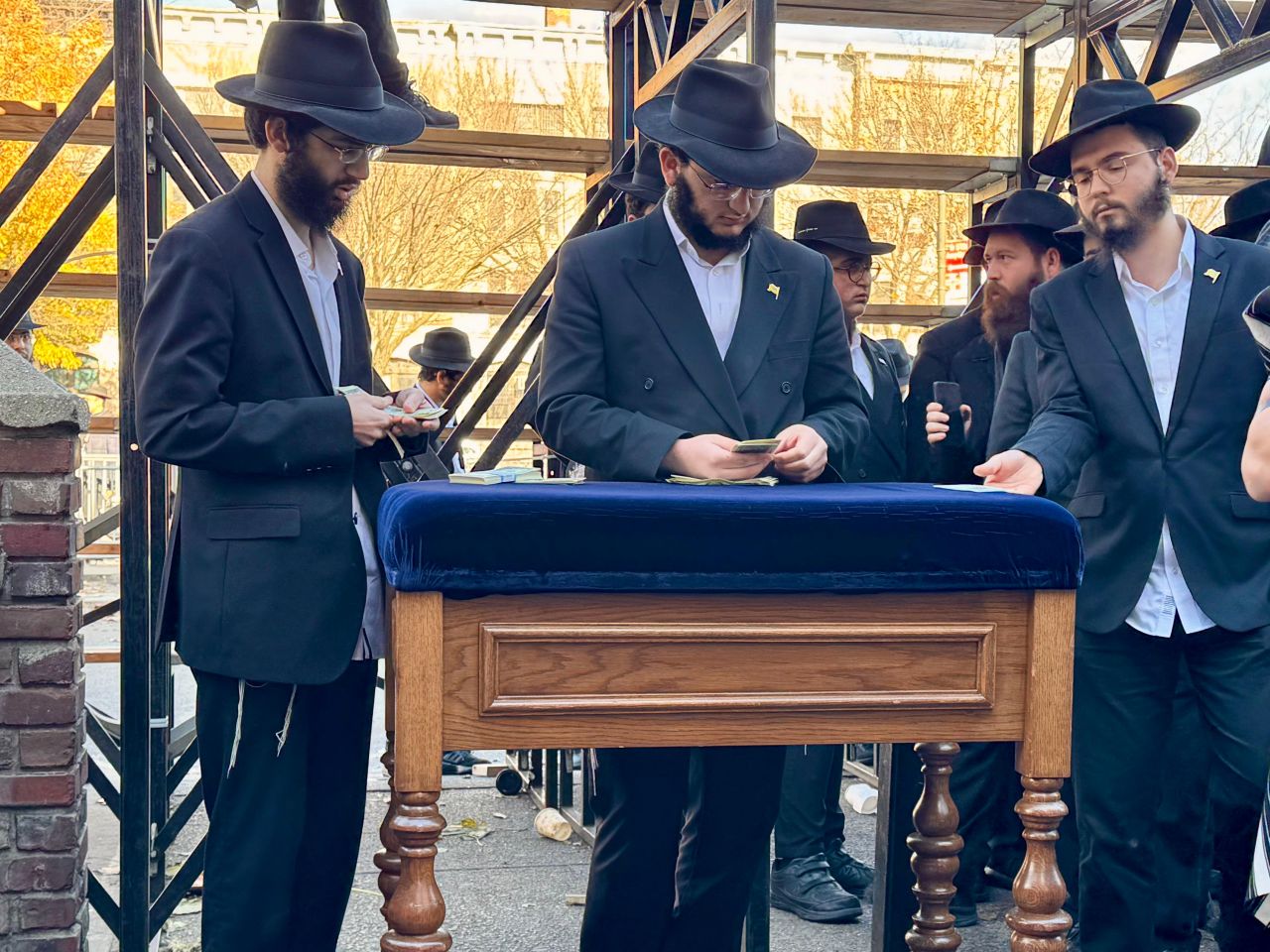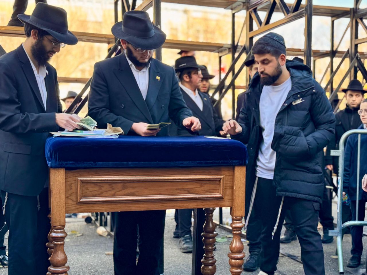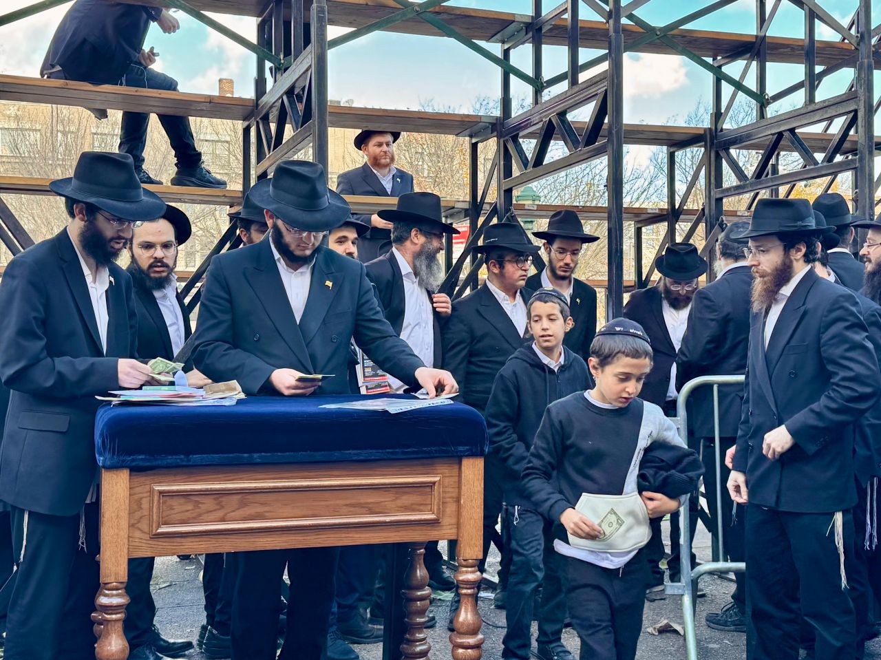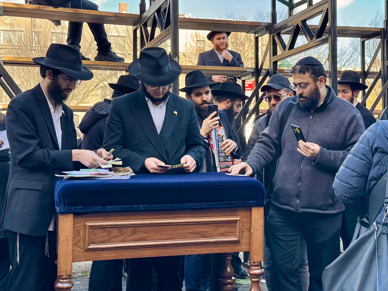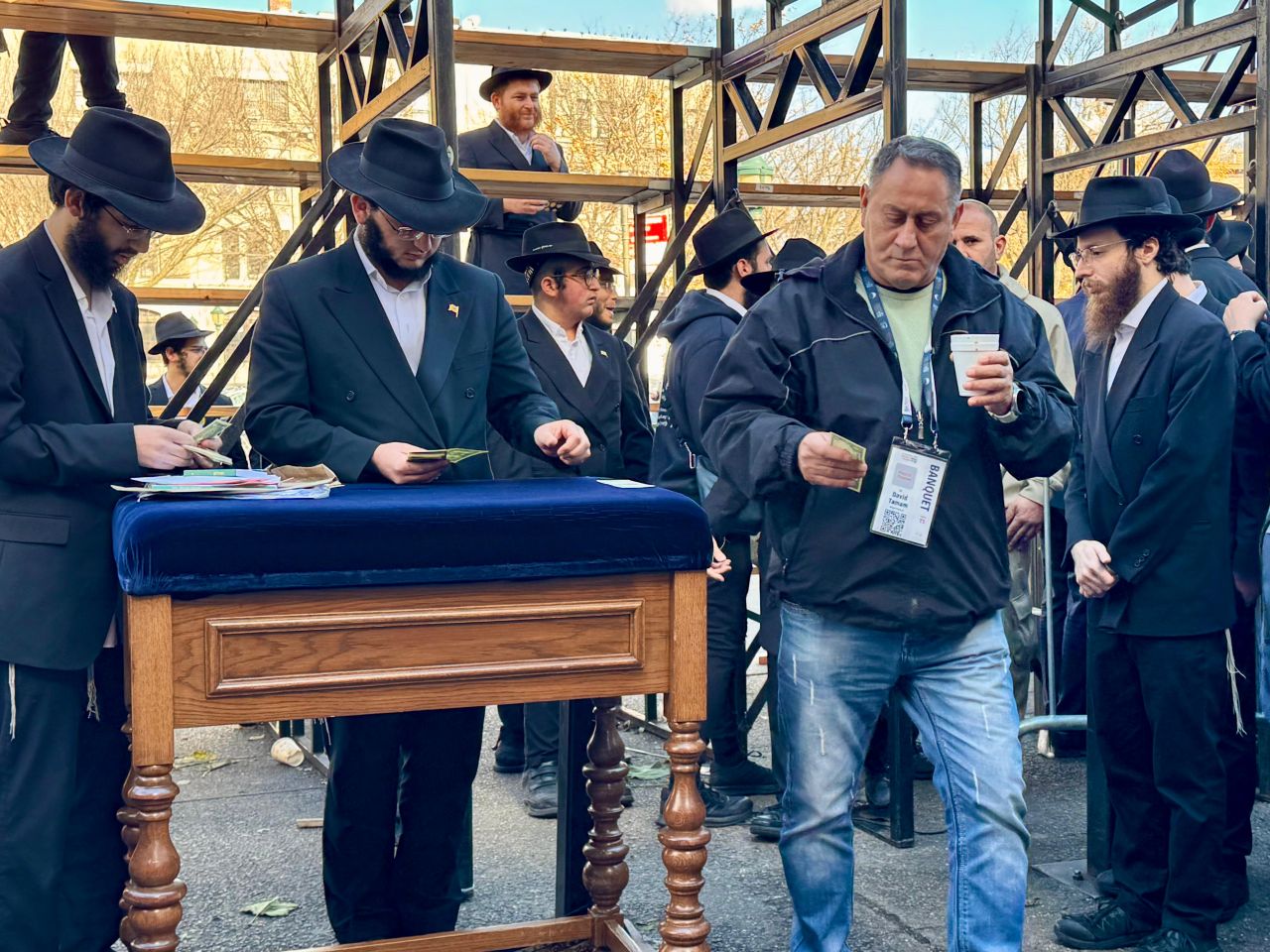 הצלם הת׳ פתחיה אדעליסט תיעד את החלוקה הבוקר בפתחו של 770.