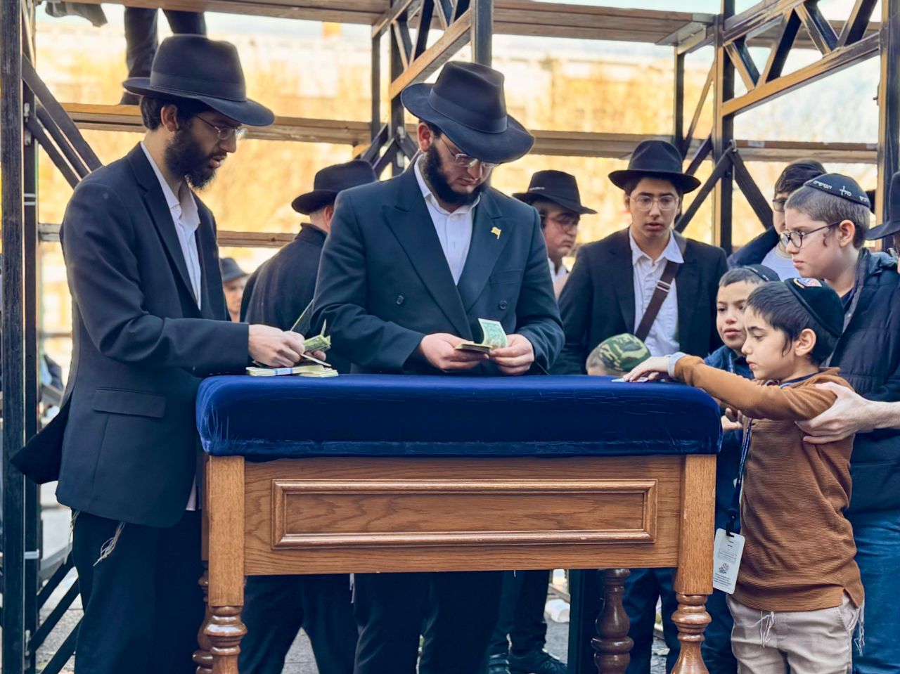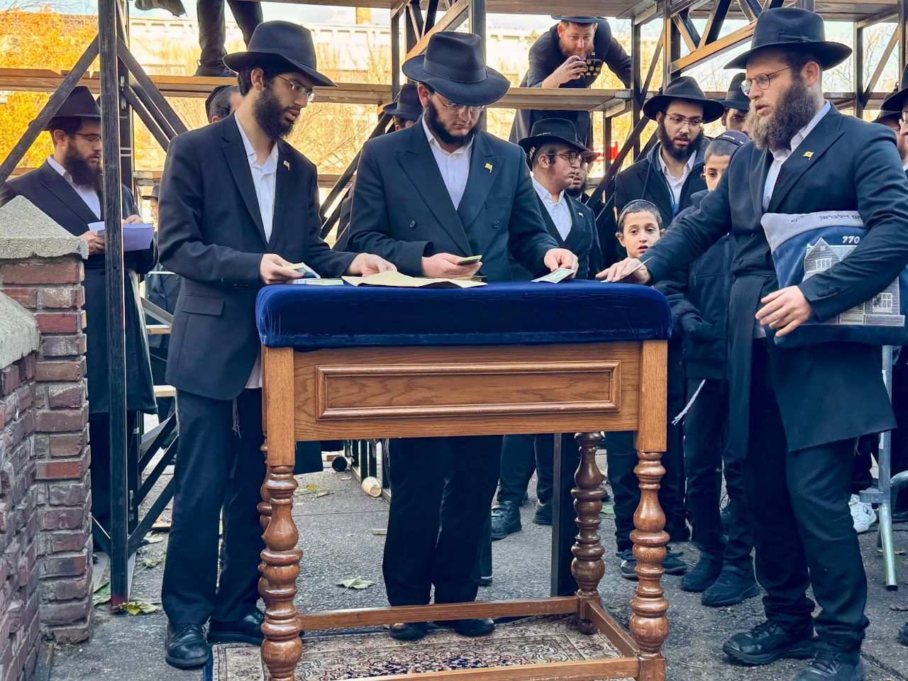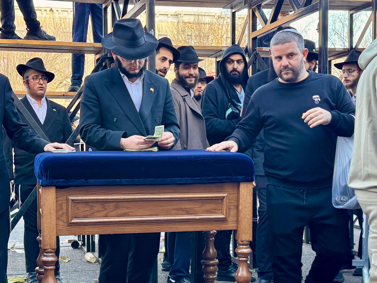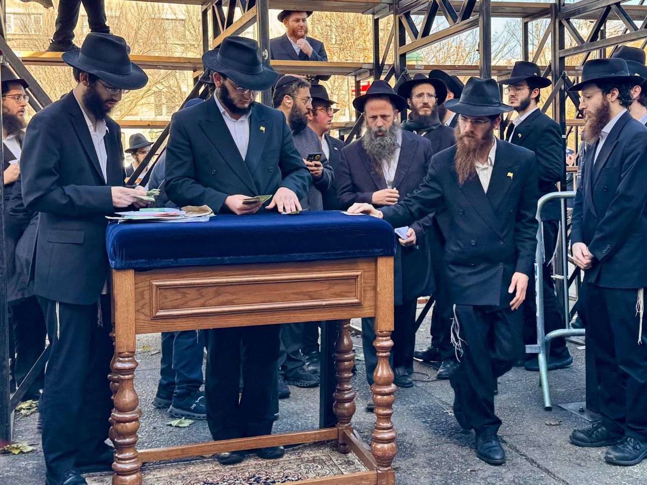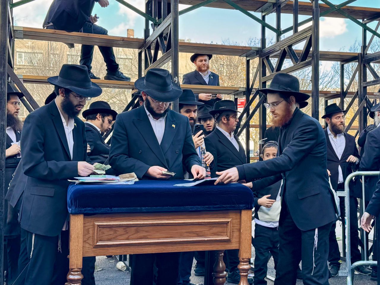 הצלם הת׳ פתחיה אדעליסט תיעד את החלוקה הבוקר בפתחו של 770.