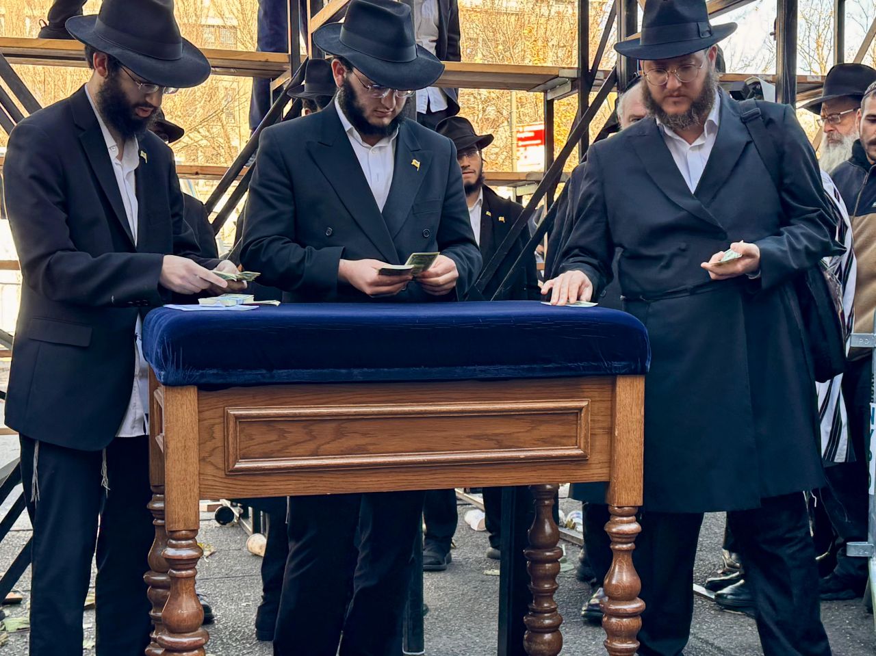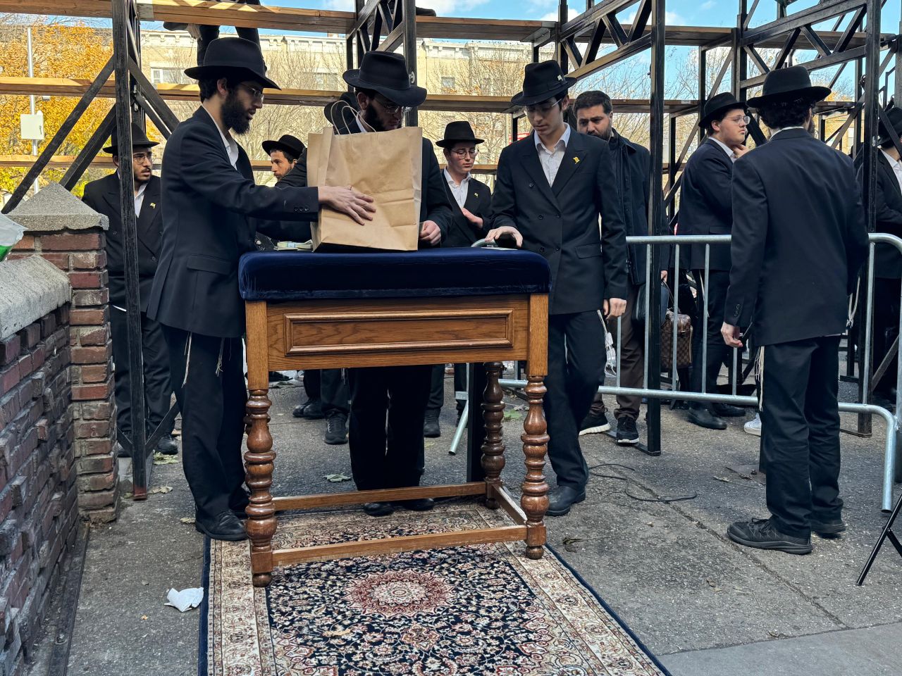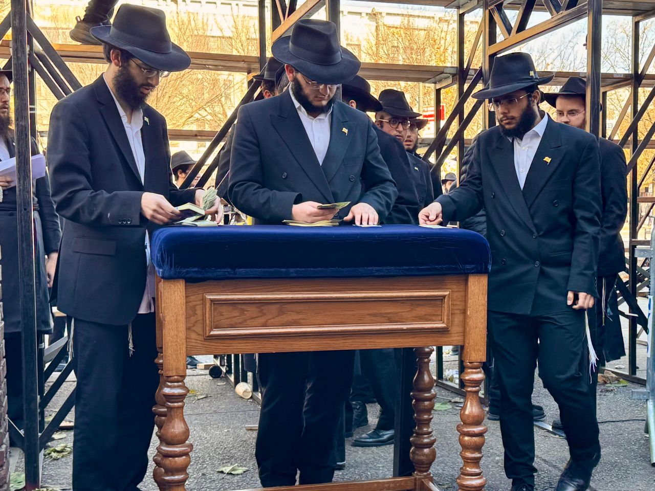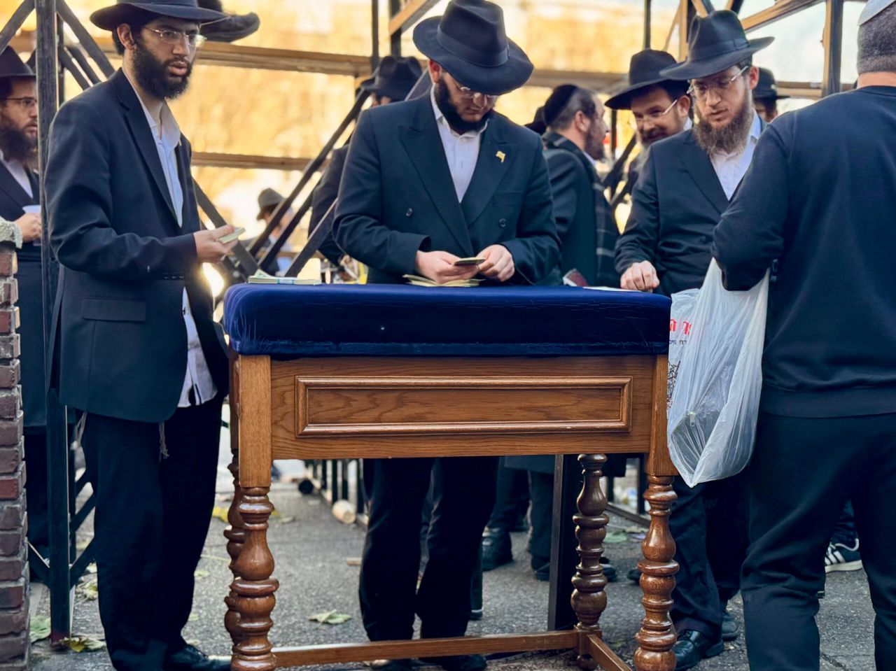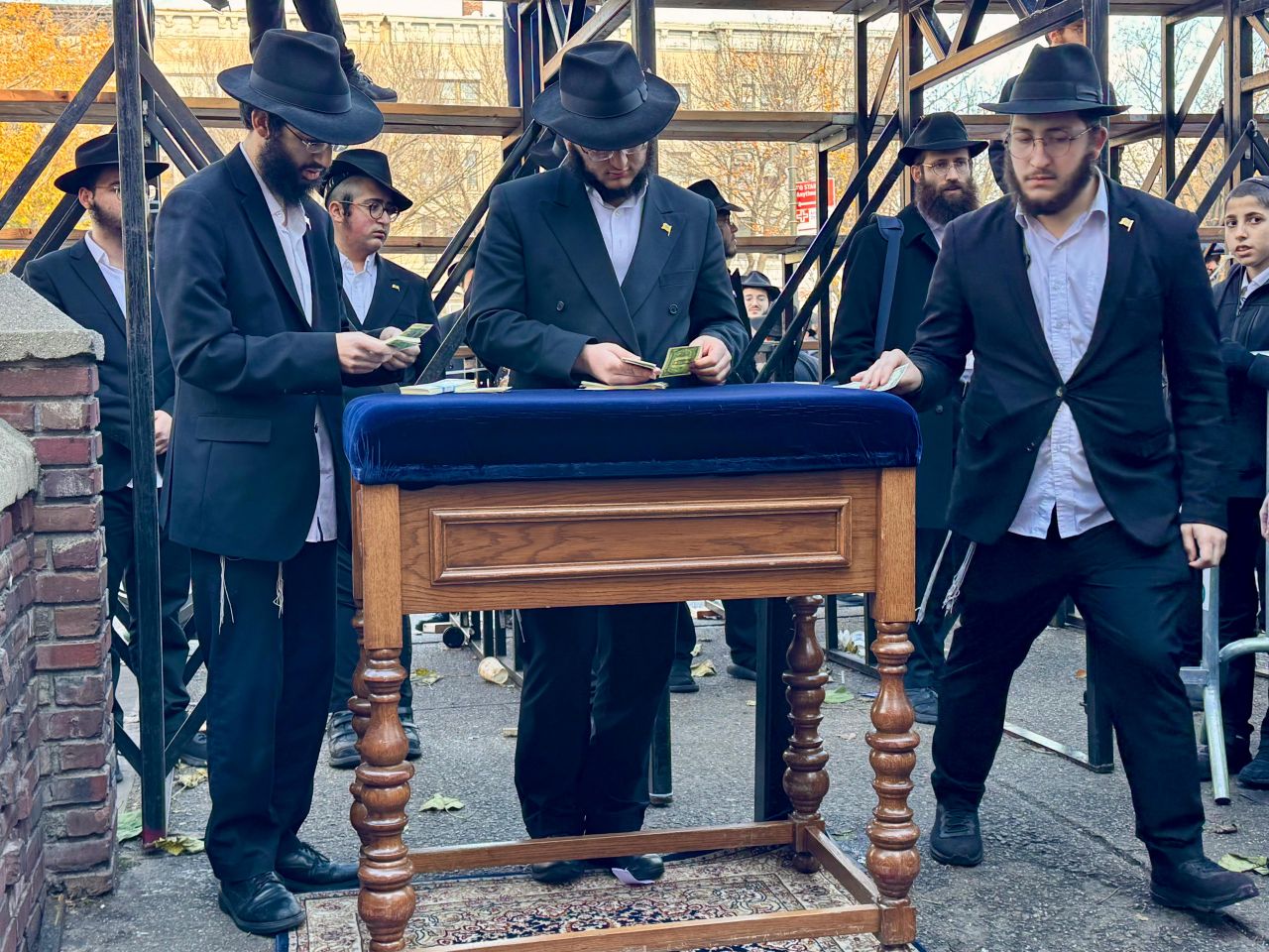 הצלם הת׳ פתחיה אדעליסט תיעד את החלוקה הבוקר בפתחו של 770.