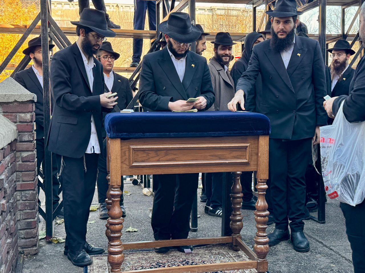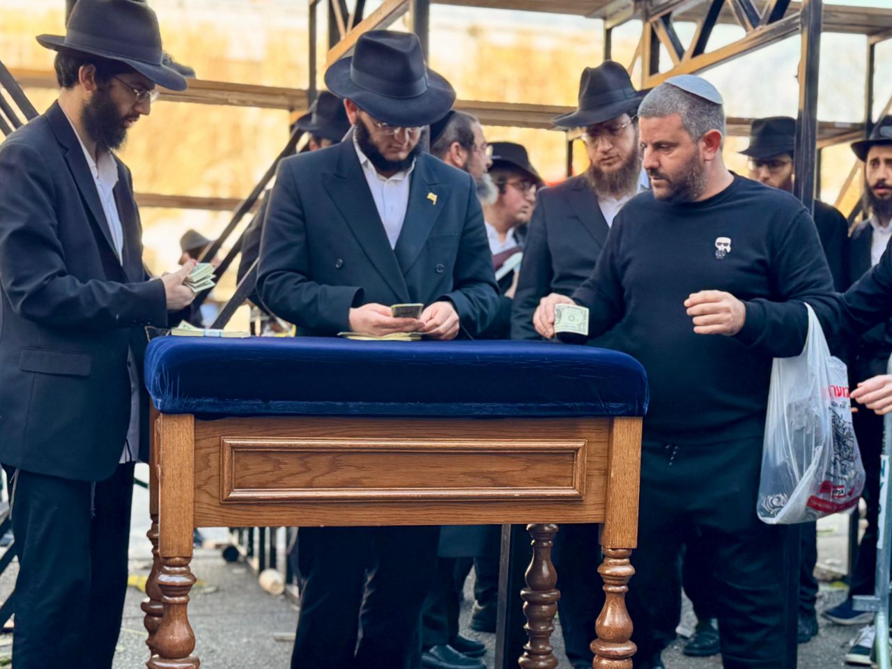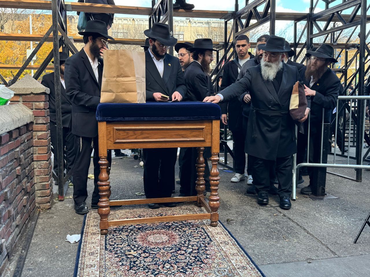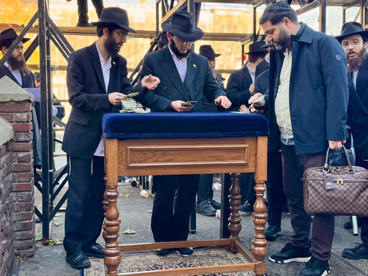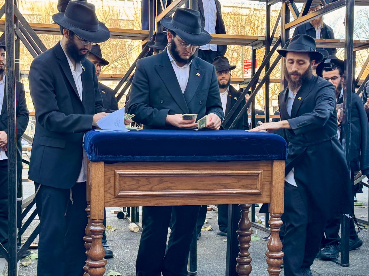 הצלם הת׳ פתחיה אדעליסט תיעד את החלוקה הבוקר בפתחו של 770.