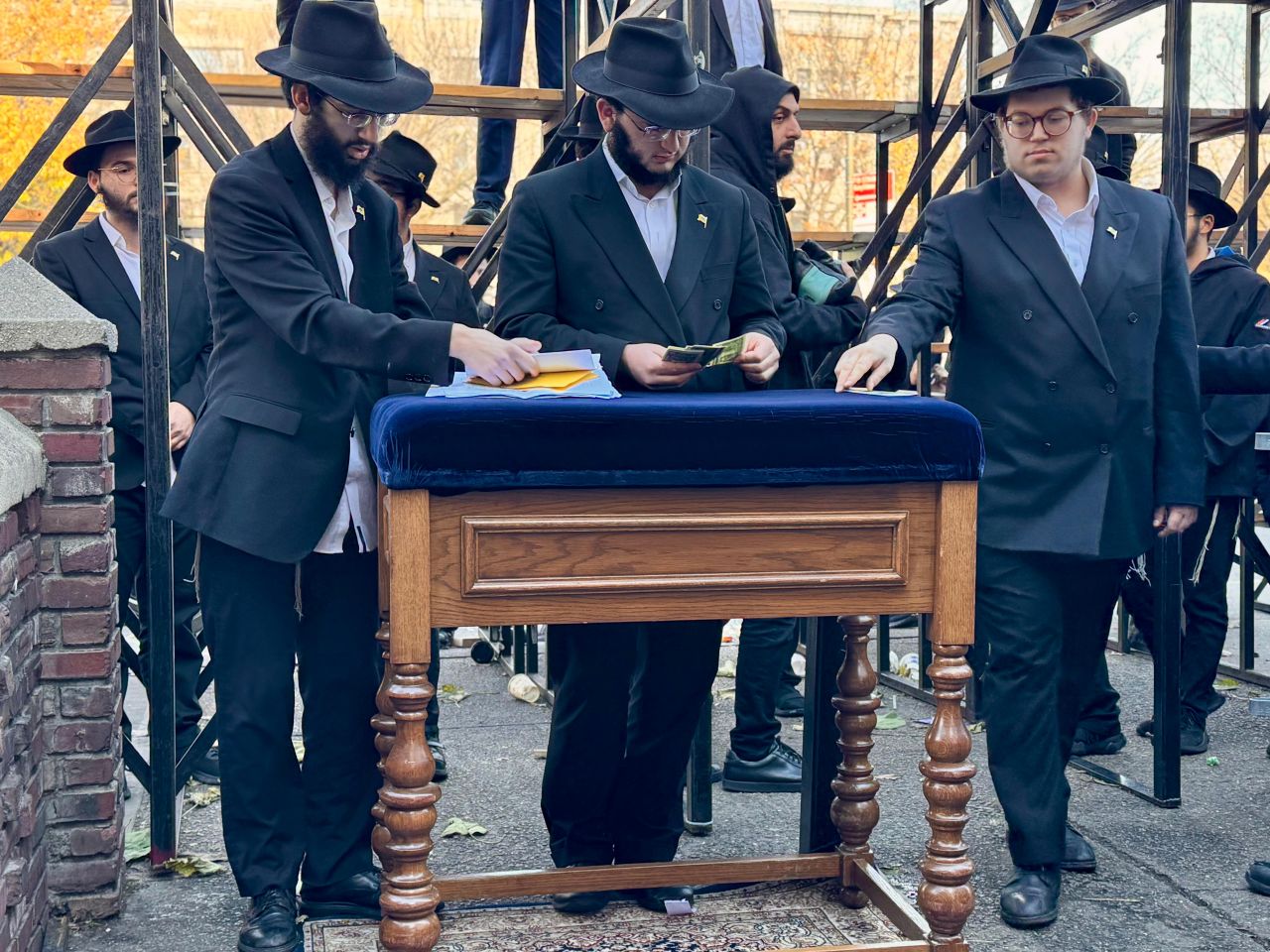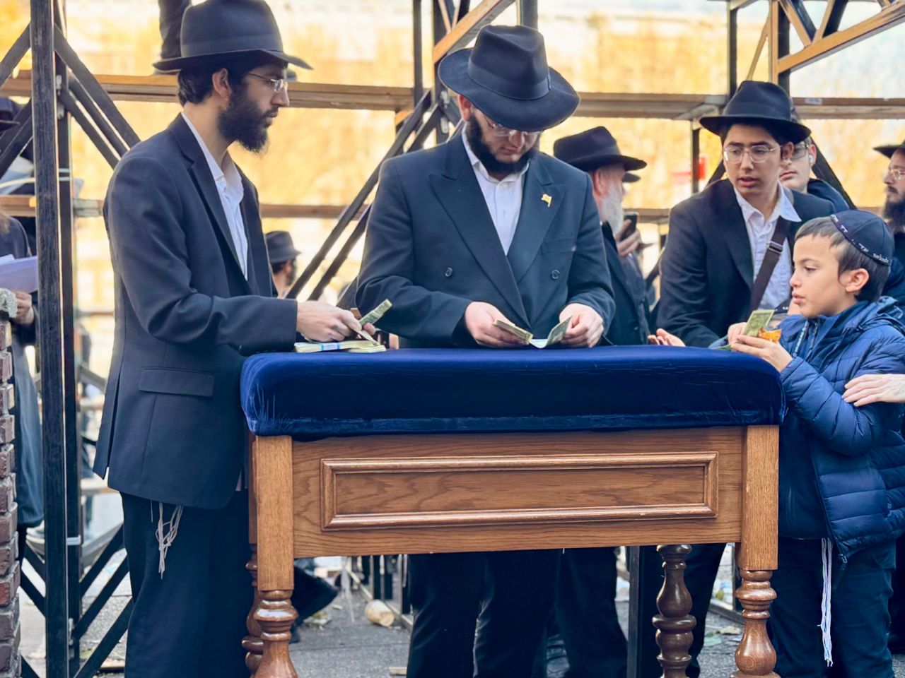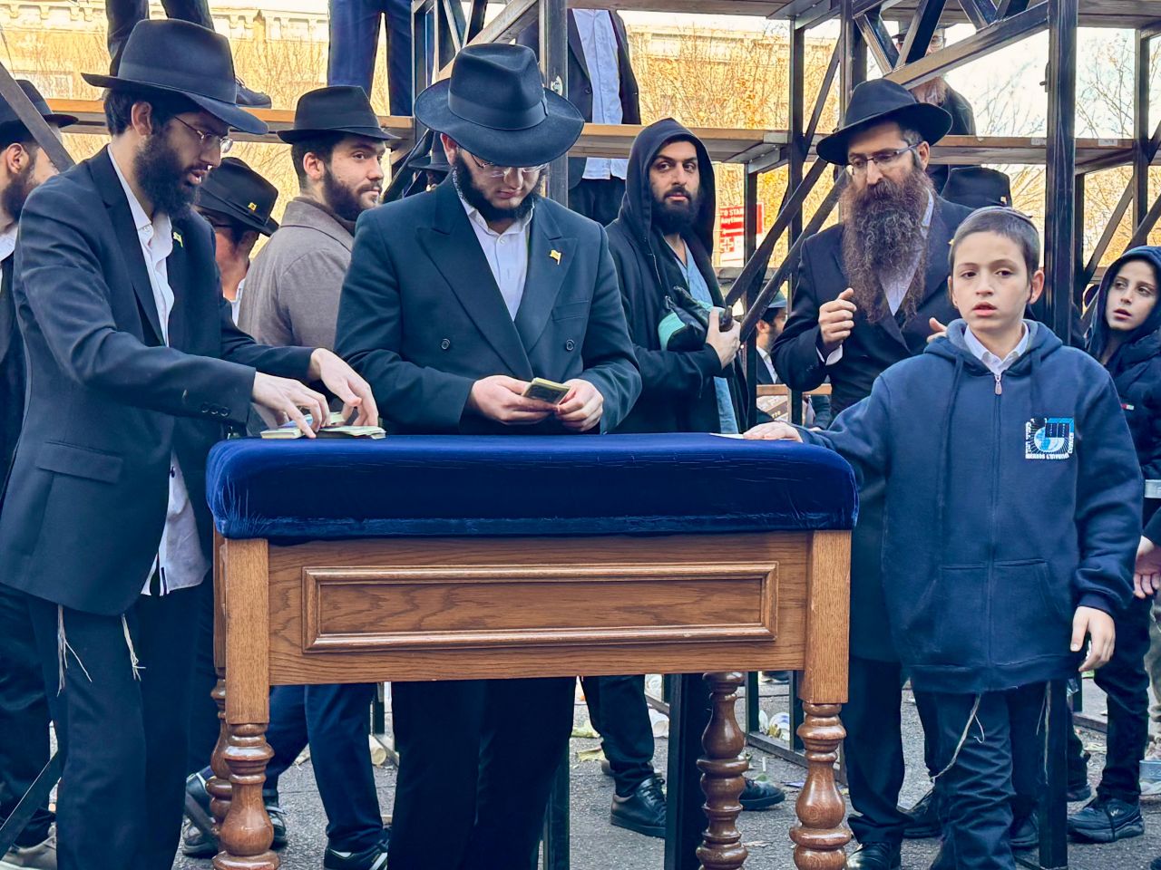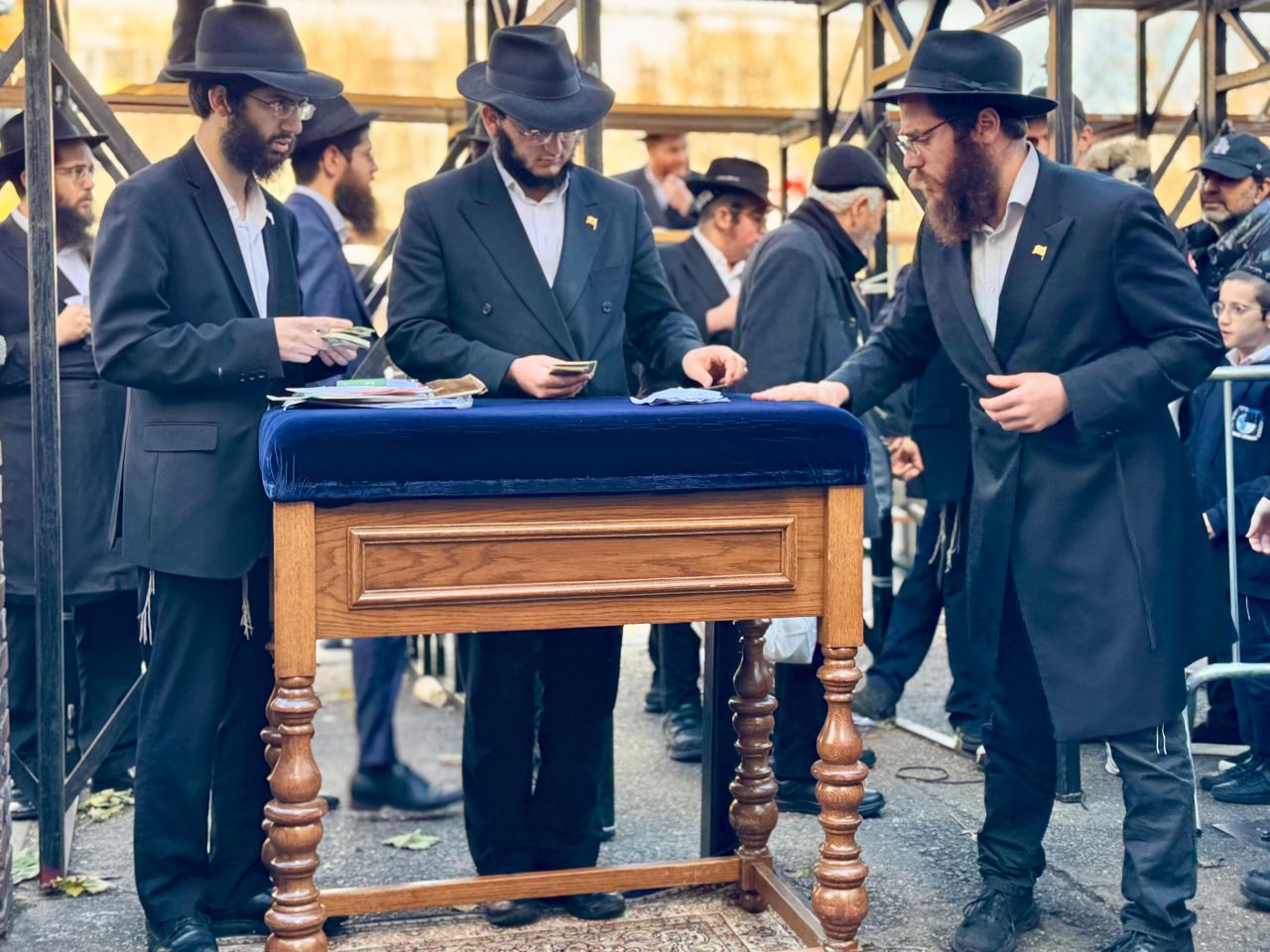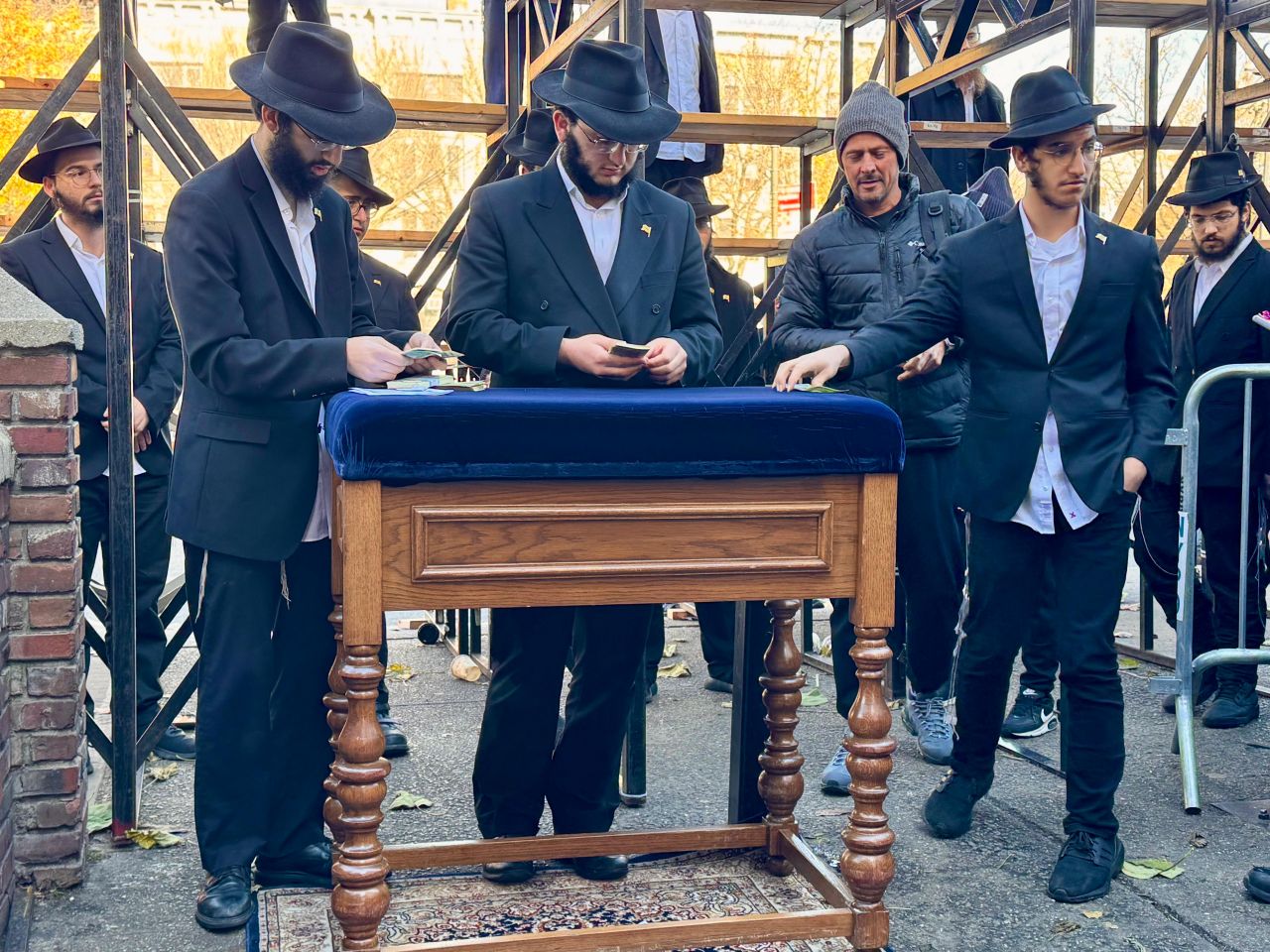 הצלם הת׳ פתחיה אדעליסט תיעד את החלוקה הבוקר בפתחו של 770.