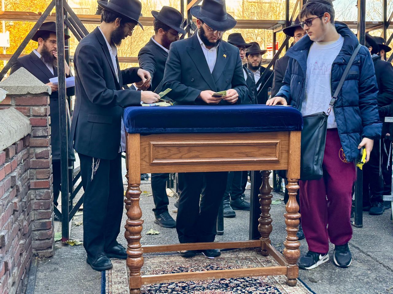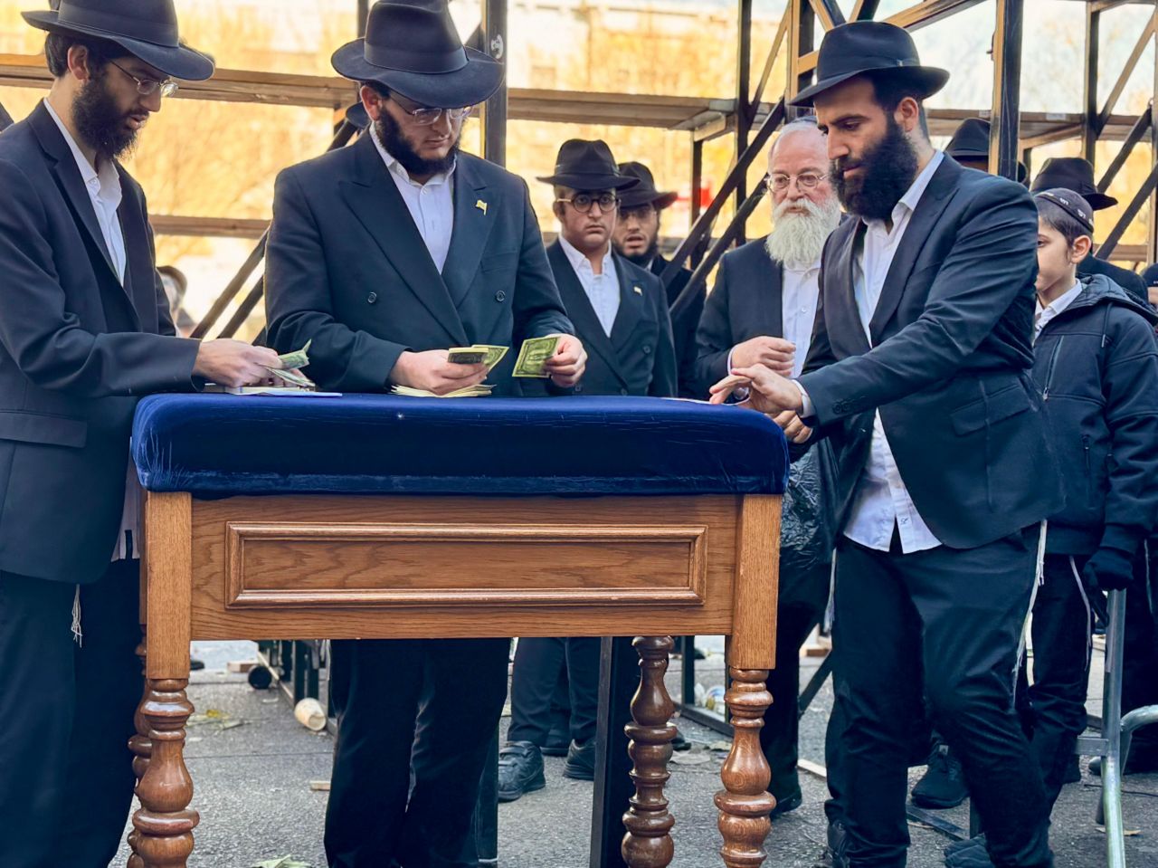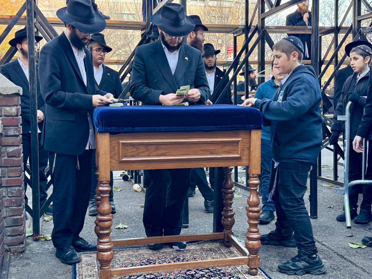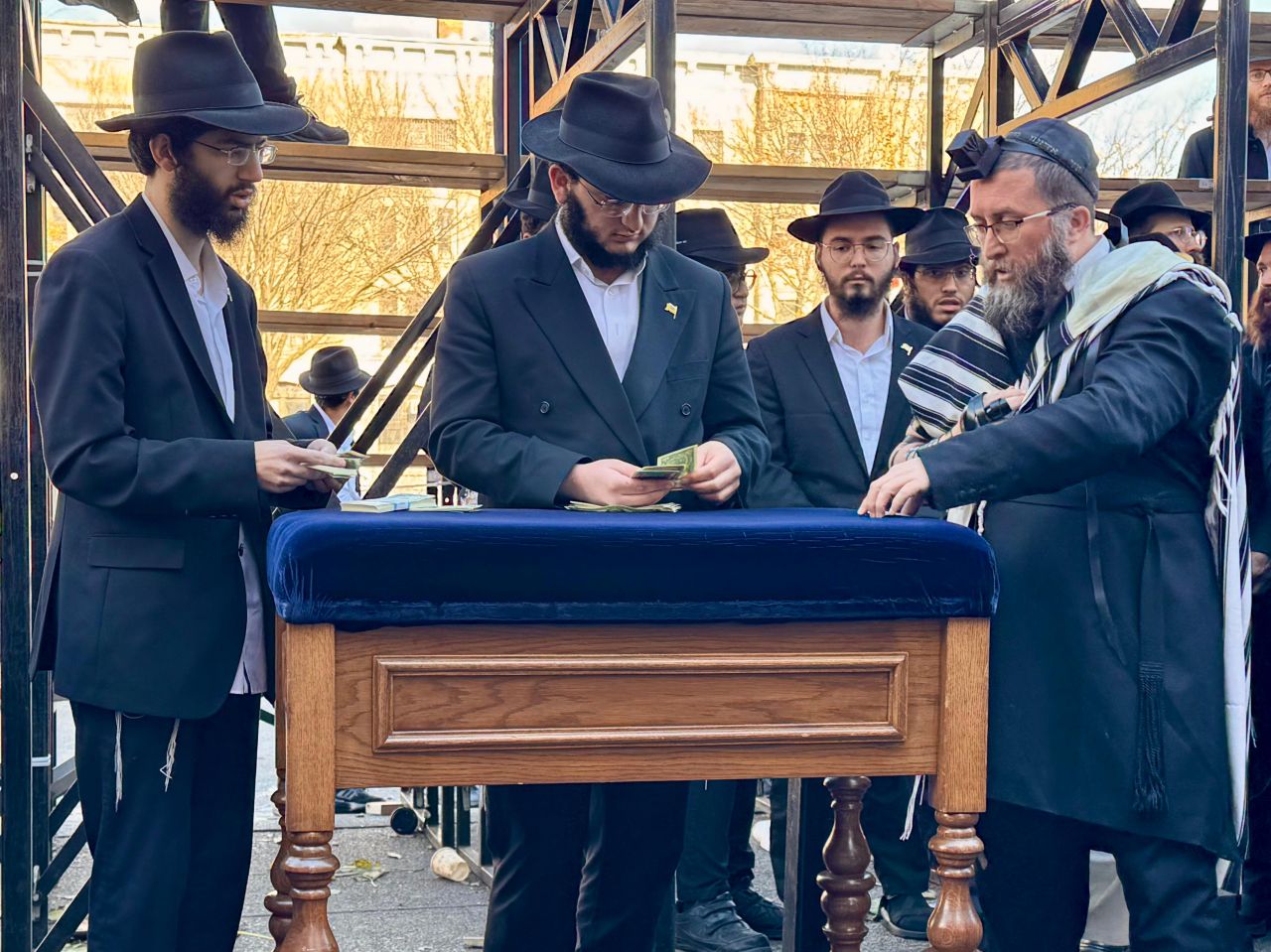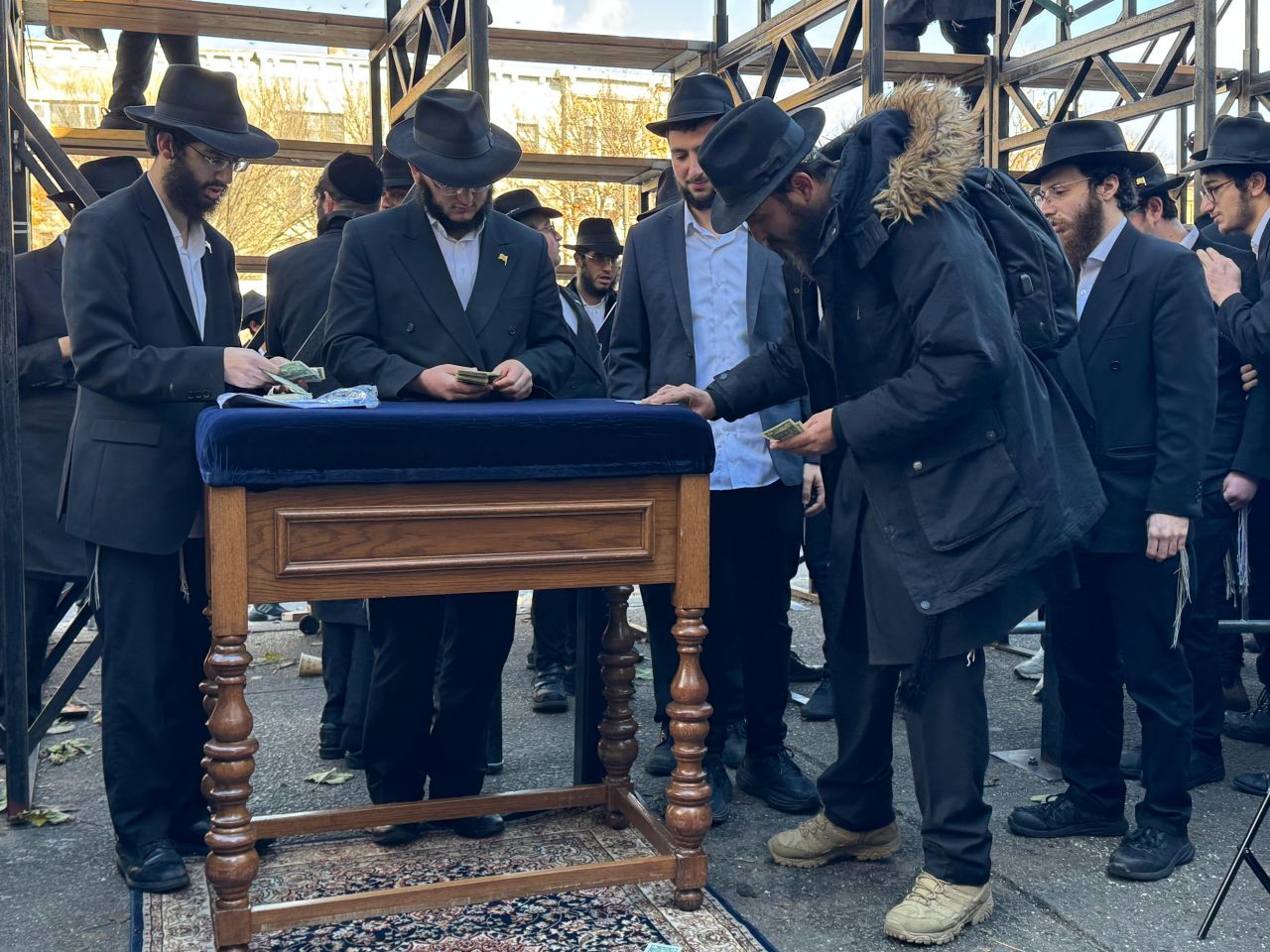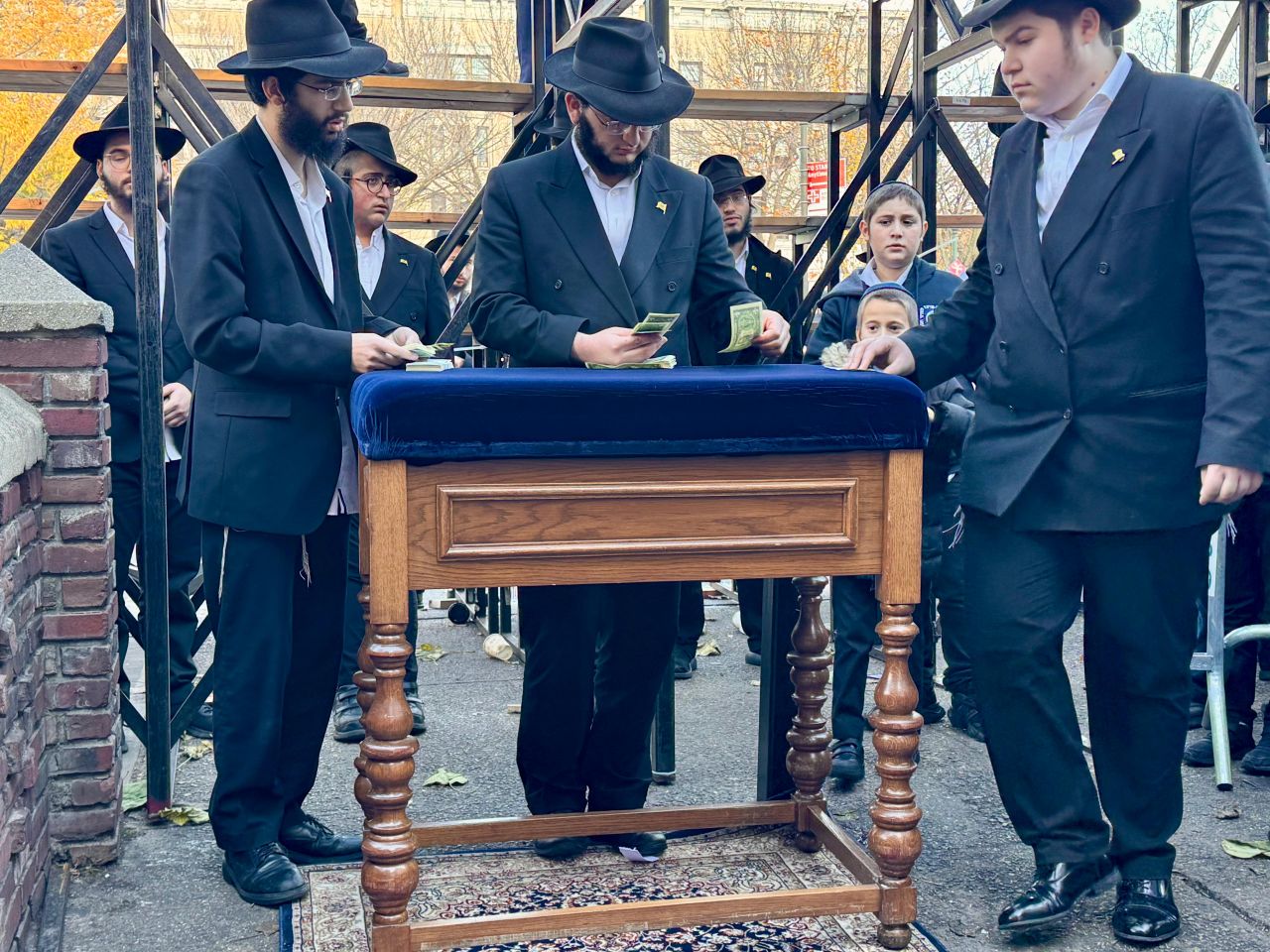 הצלם הת׳ פתחיה אדעליסט תיעד את החלוקה הבוקר בפתחו של 770.