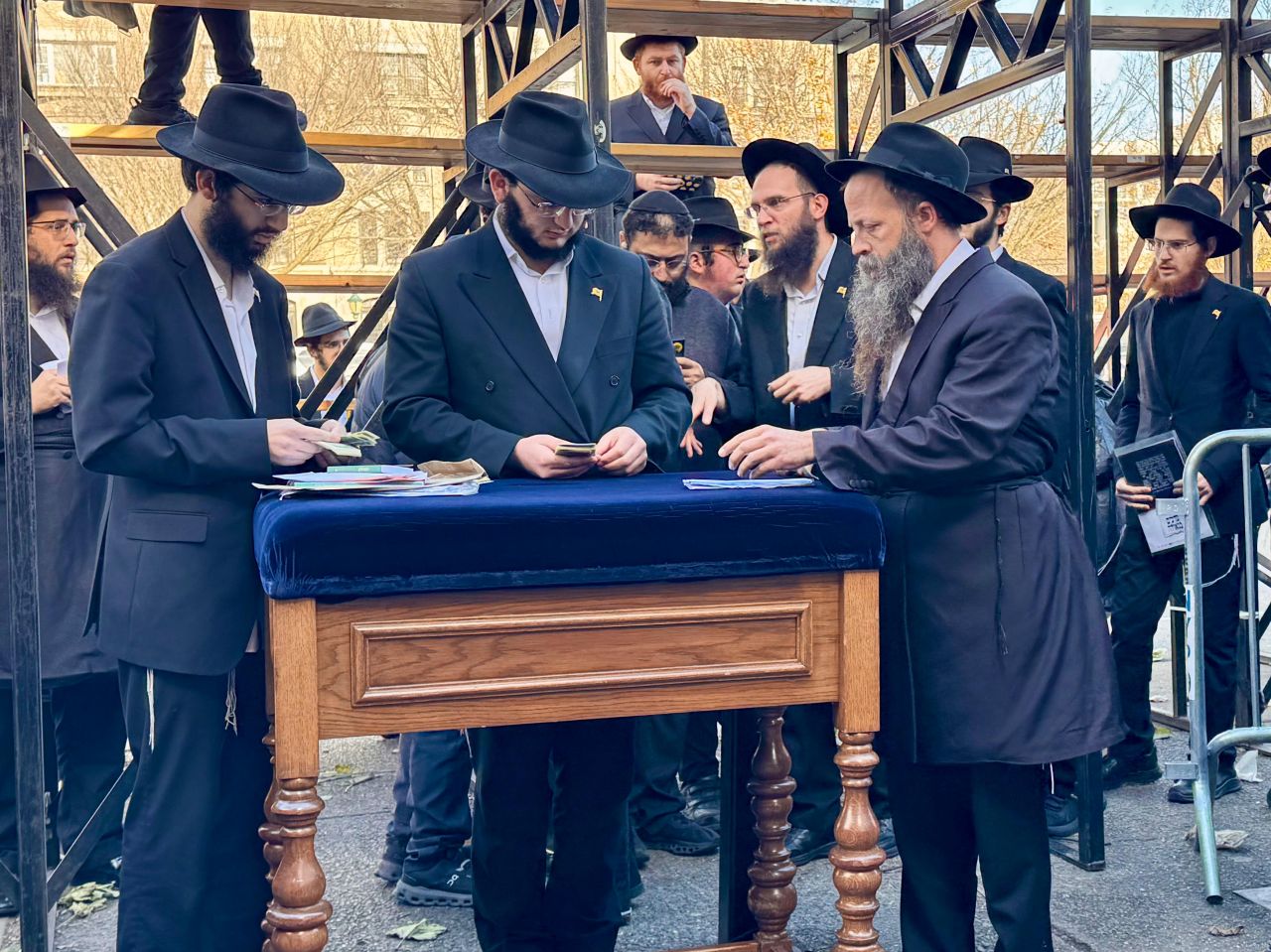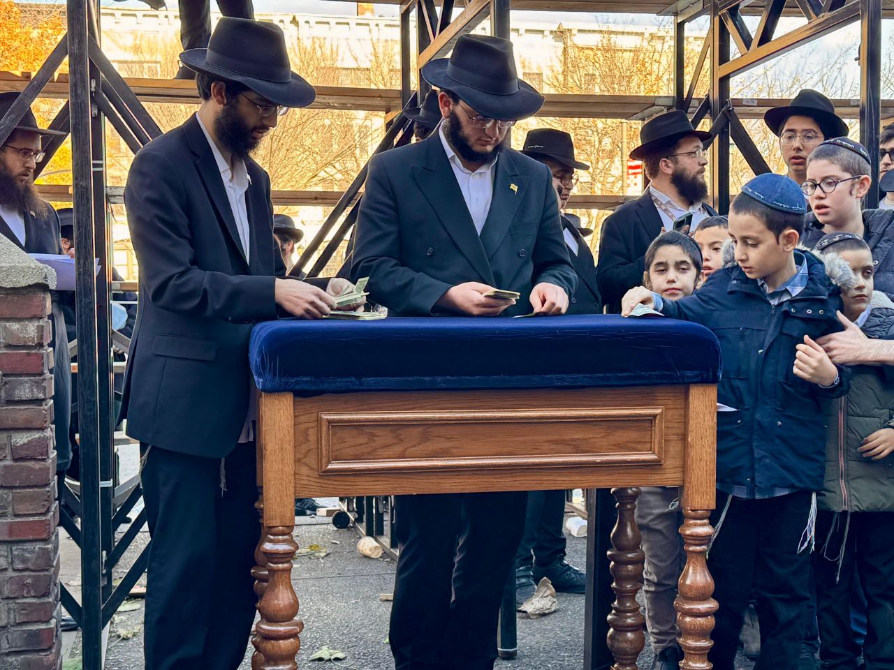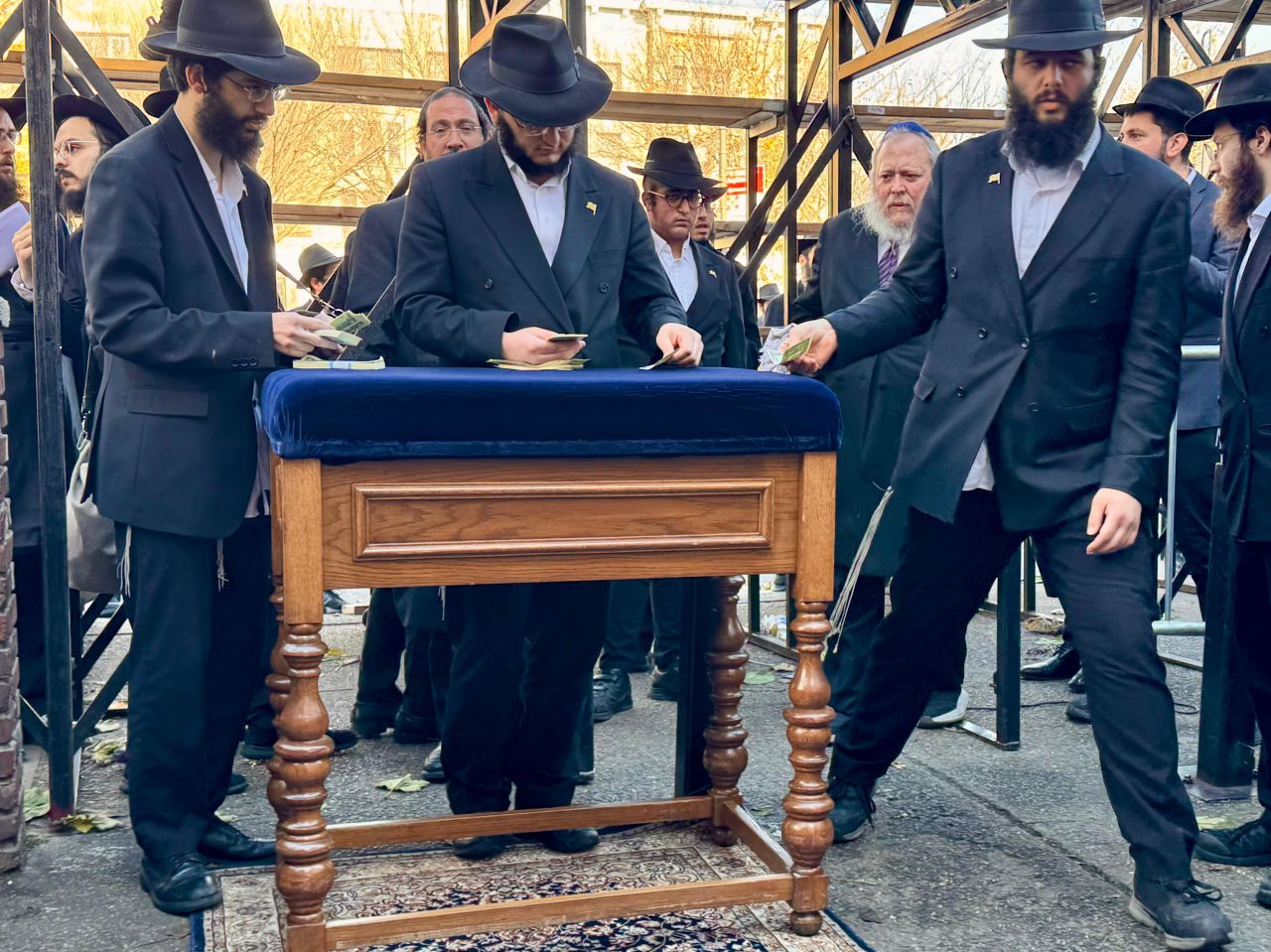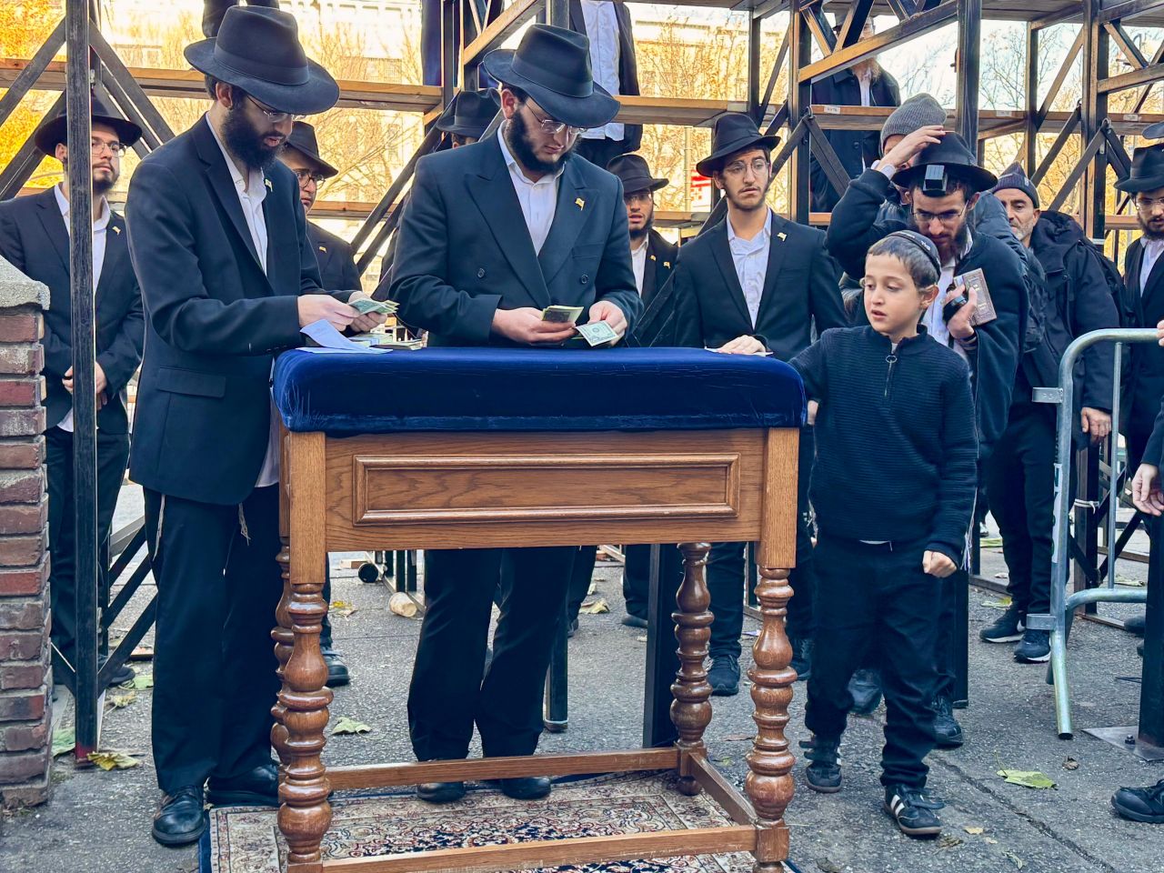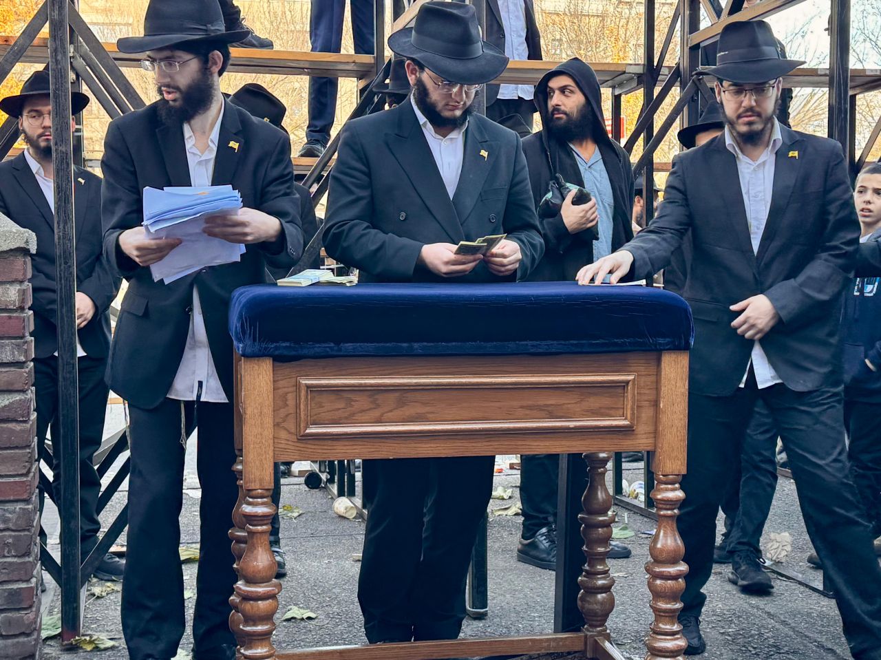 הצלם הת׳ פתחיה אדעליסט תיעד את החלוקה הבוקר בפתחו של 770.