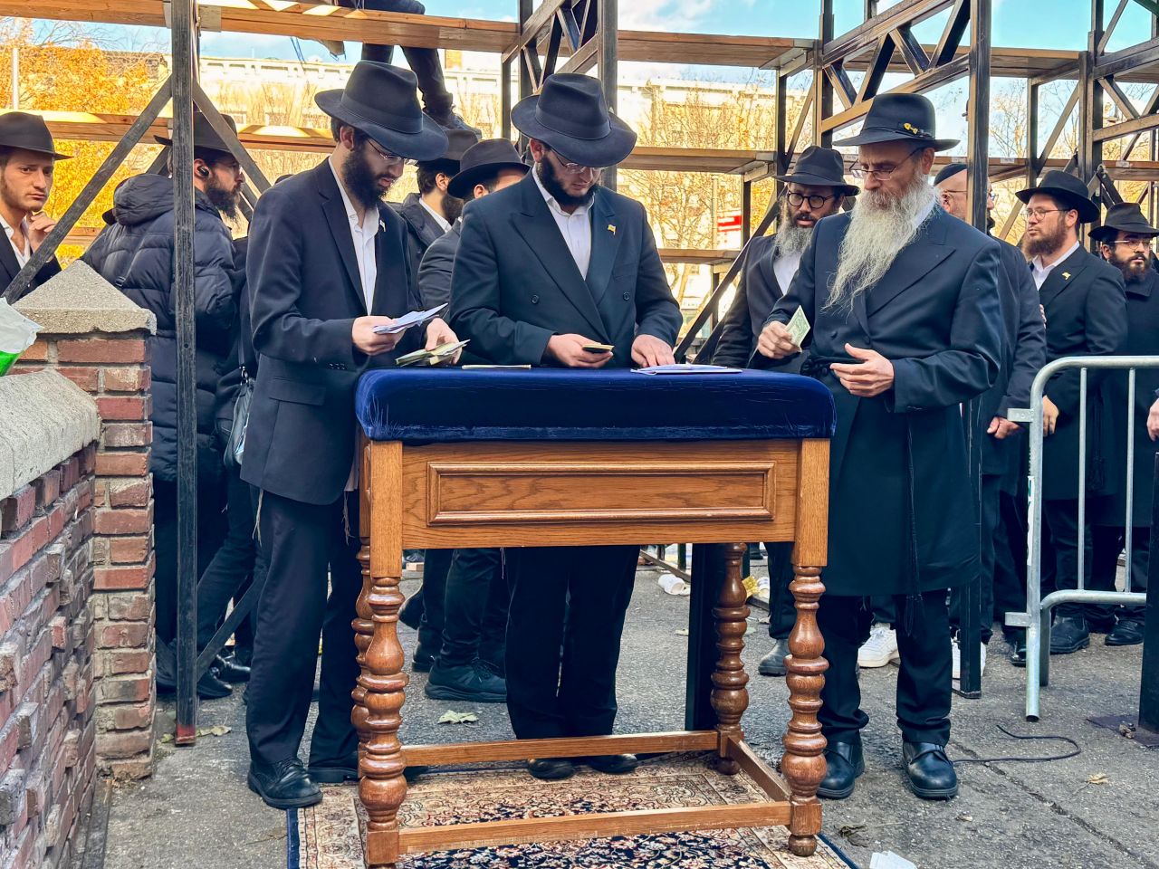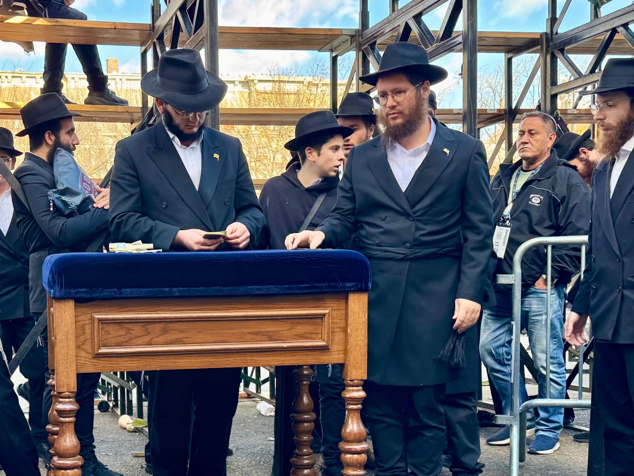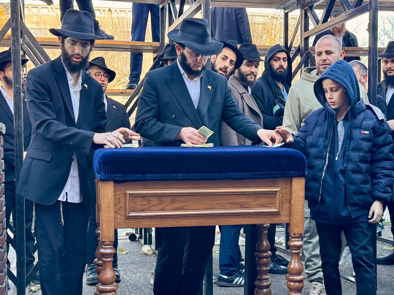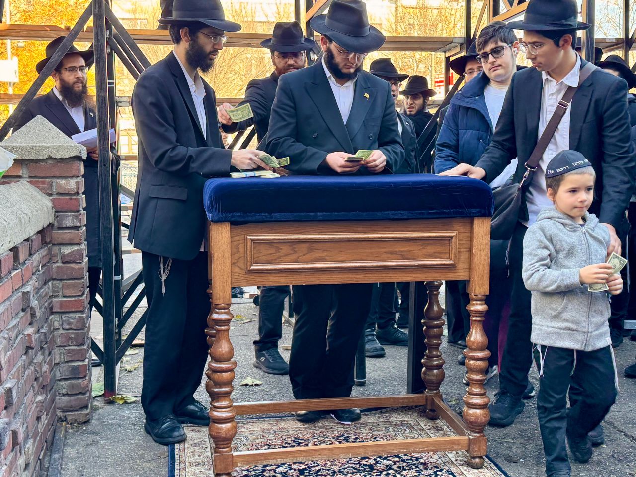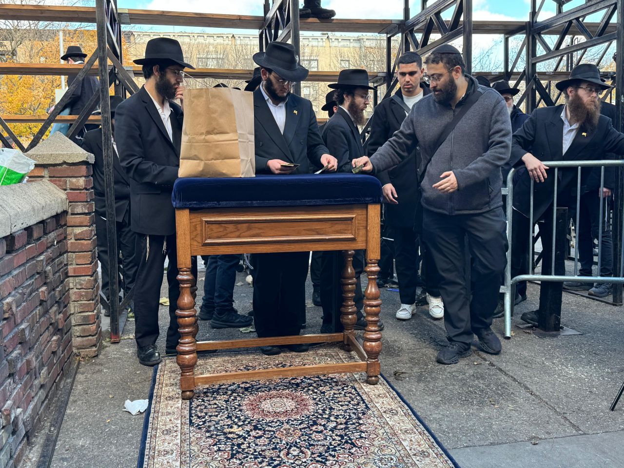 הצלם הת׳ פתחיה אדעליסט תיעד את החלוקה הבוקר בפתחו של 770.