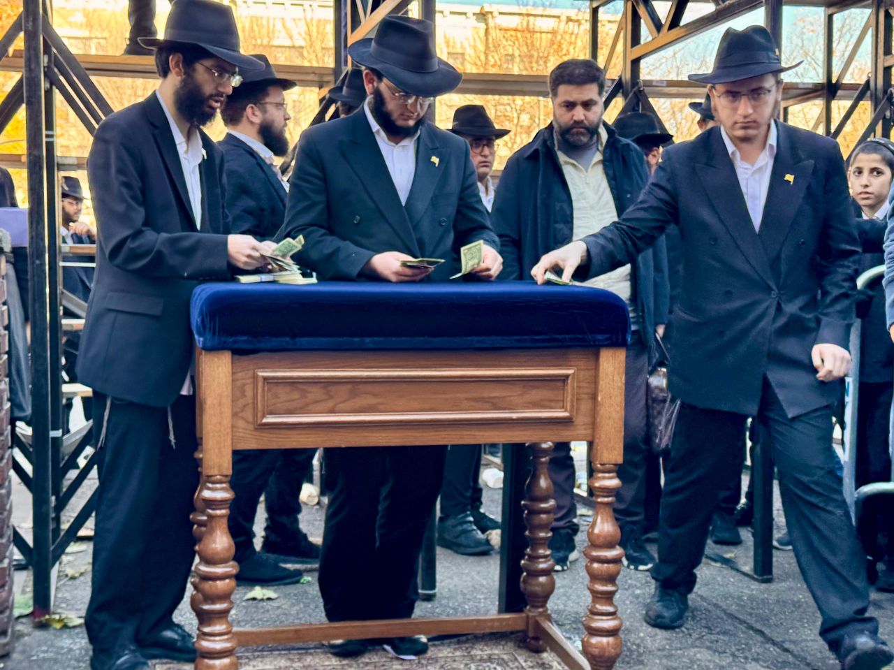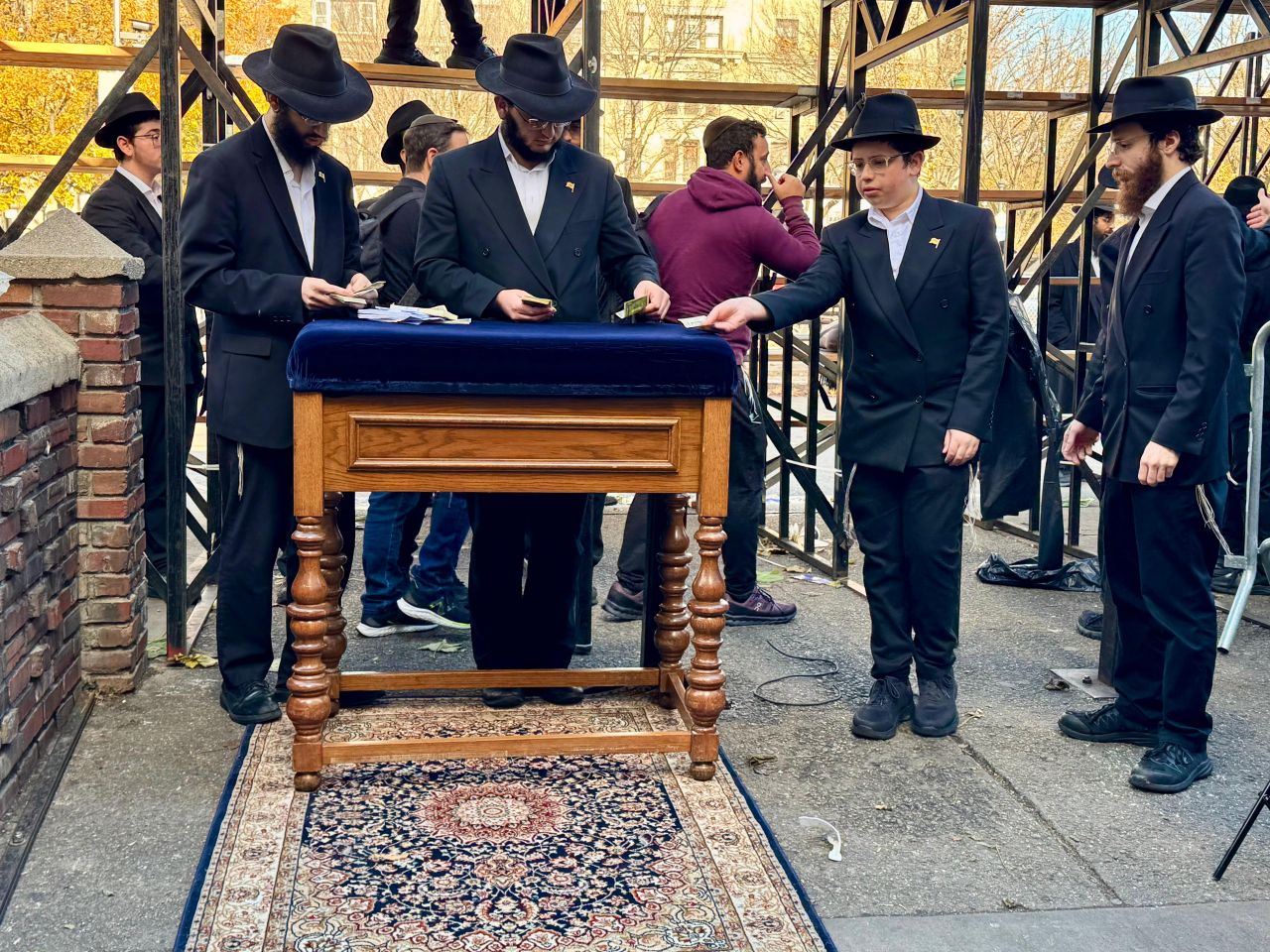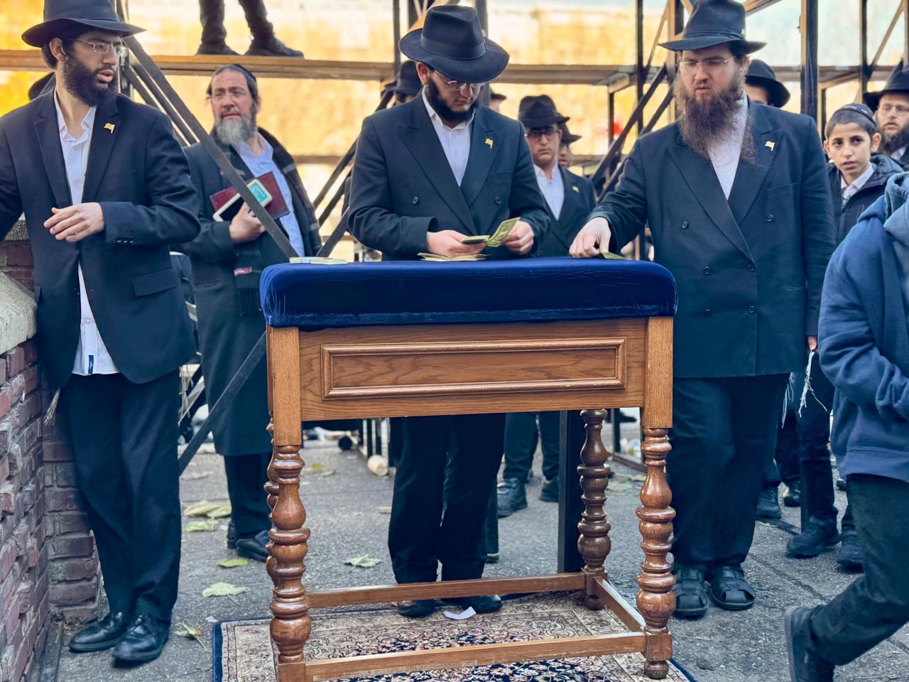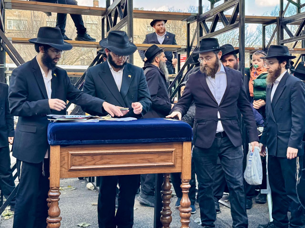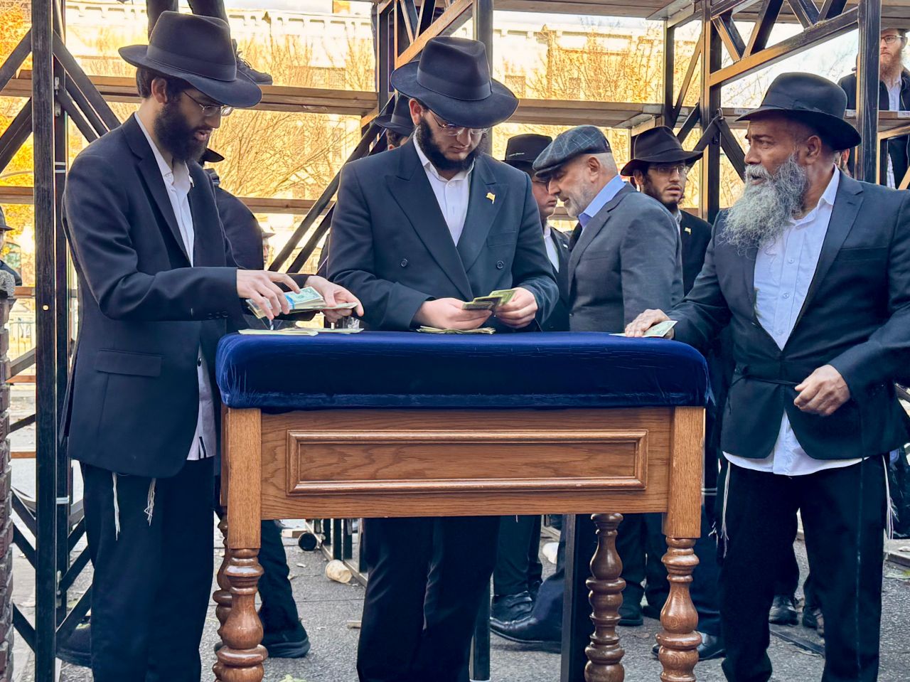 הצלם הת׳ פתחיה אדעליסט תיעד את החלוקה הבוקר בפתחו של 770.