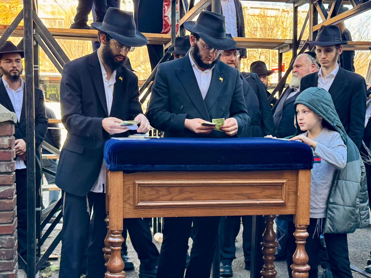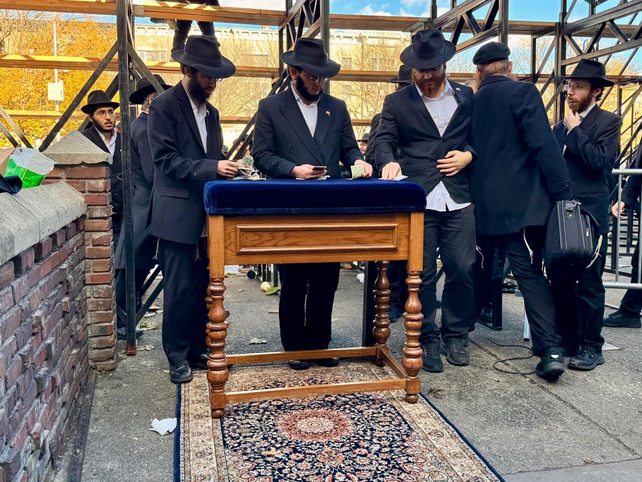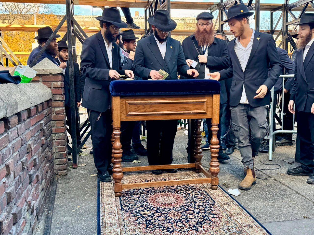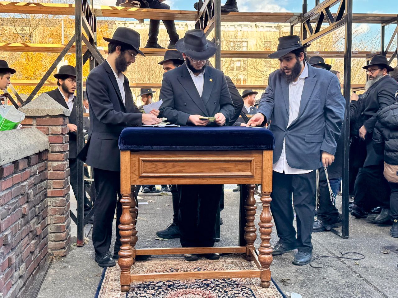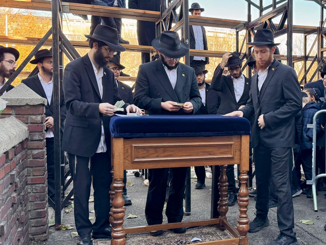 הצלם הת׳ פתחיה אדעליסט תיעד את החלוקה הבוקר בפתחו של 770.