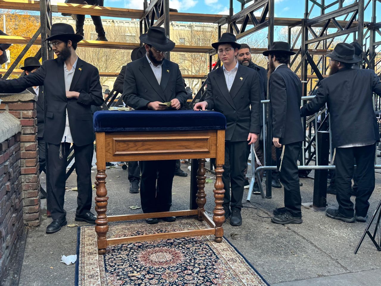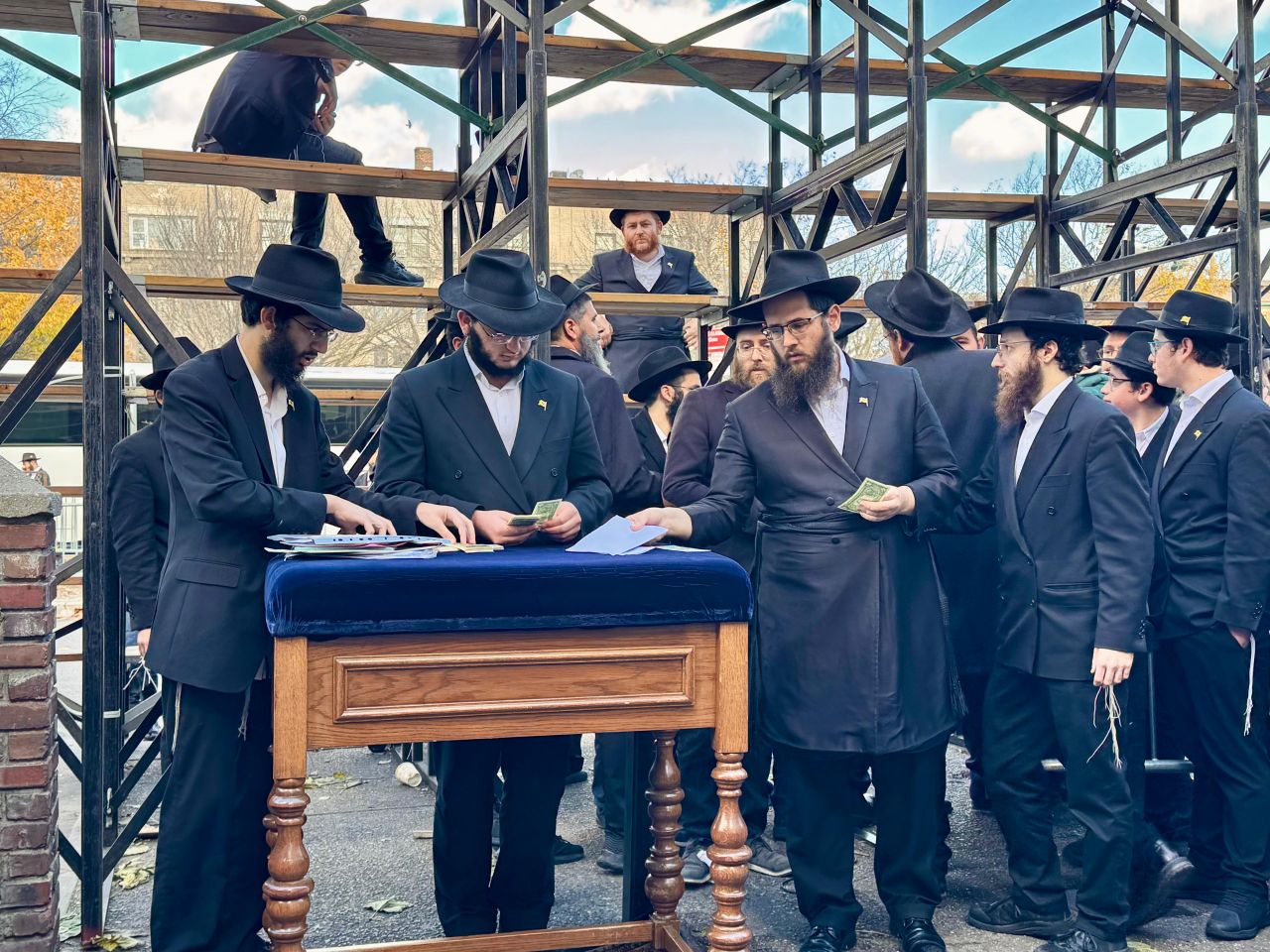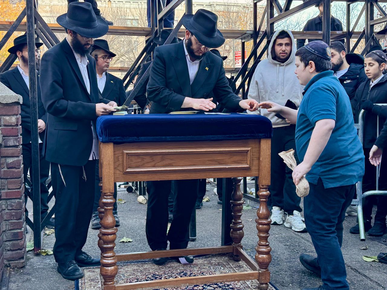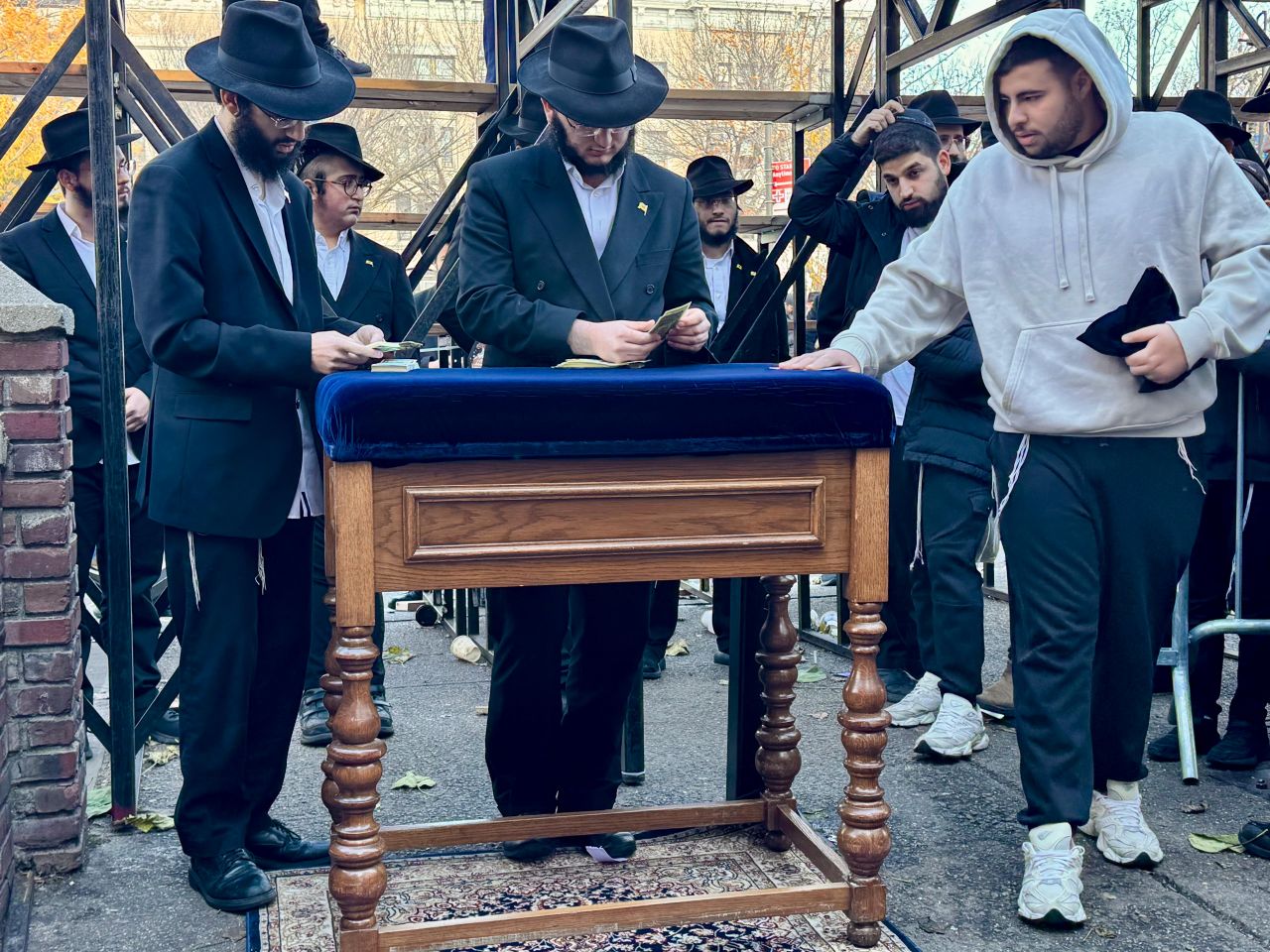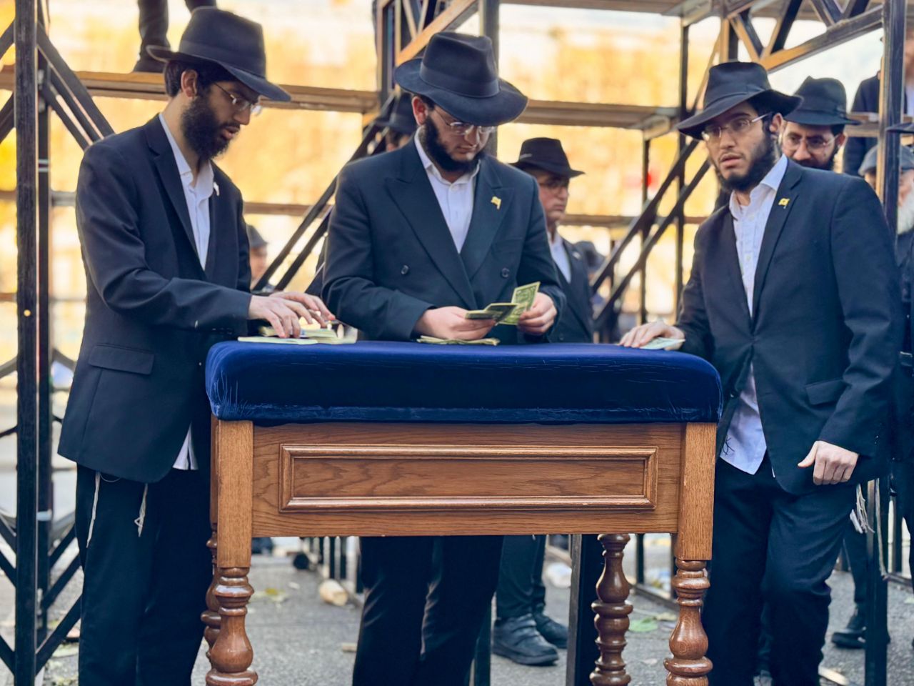 הצלם הת׳ פתחיה אדעליסט תיעד את החלוקה הבוקר בפתחו של 770.