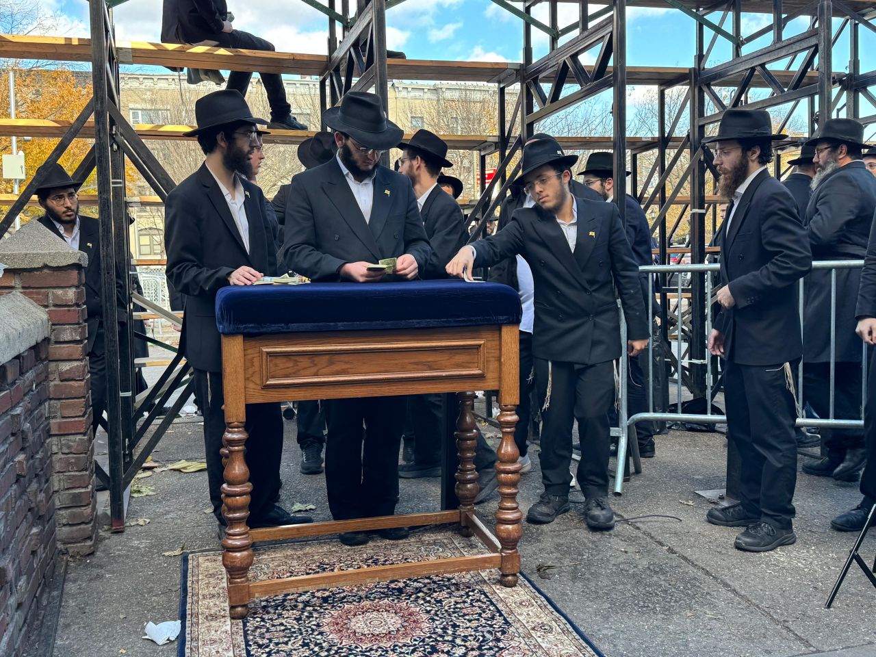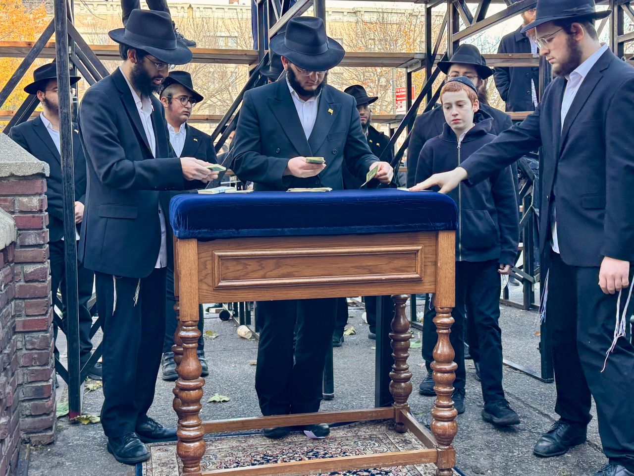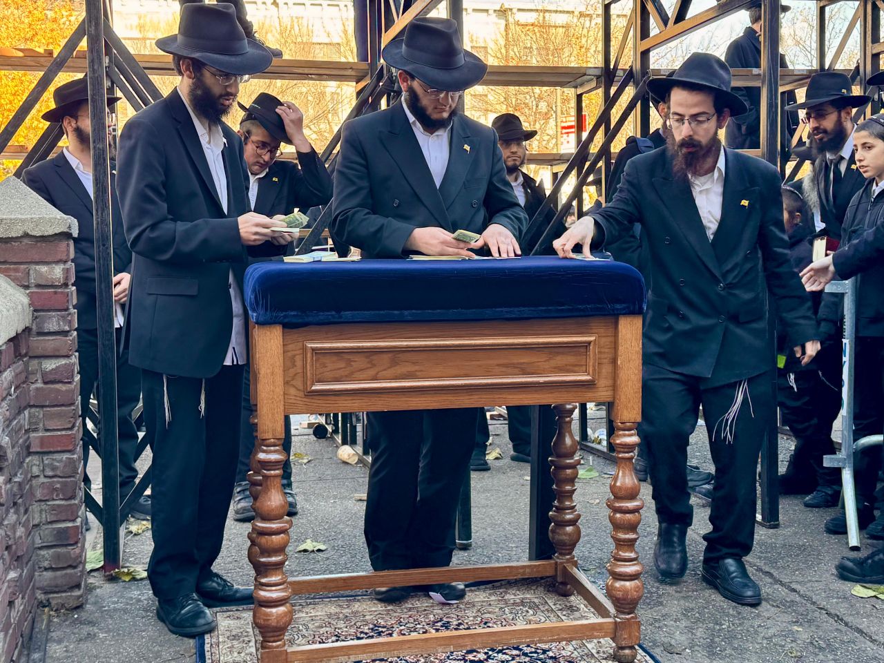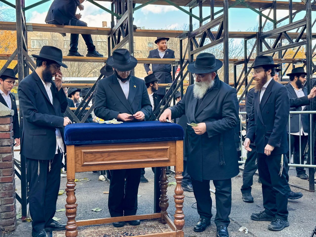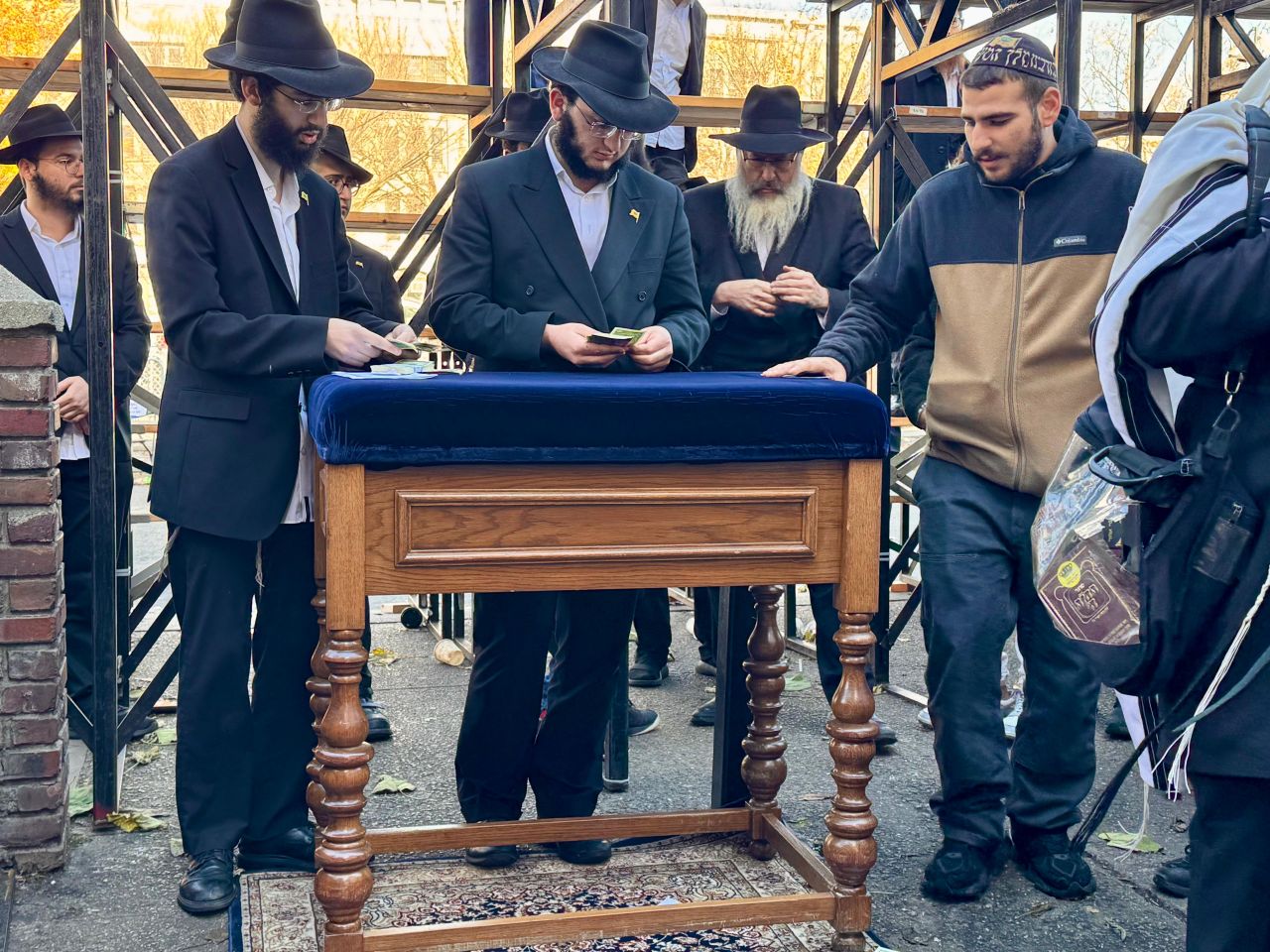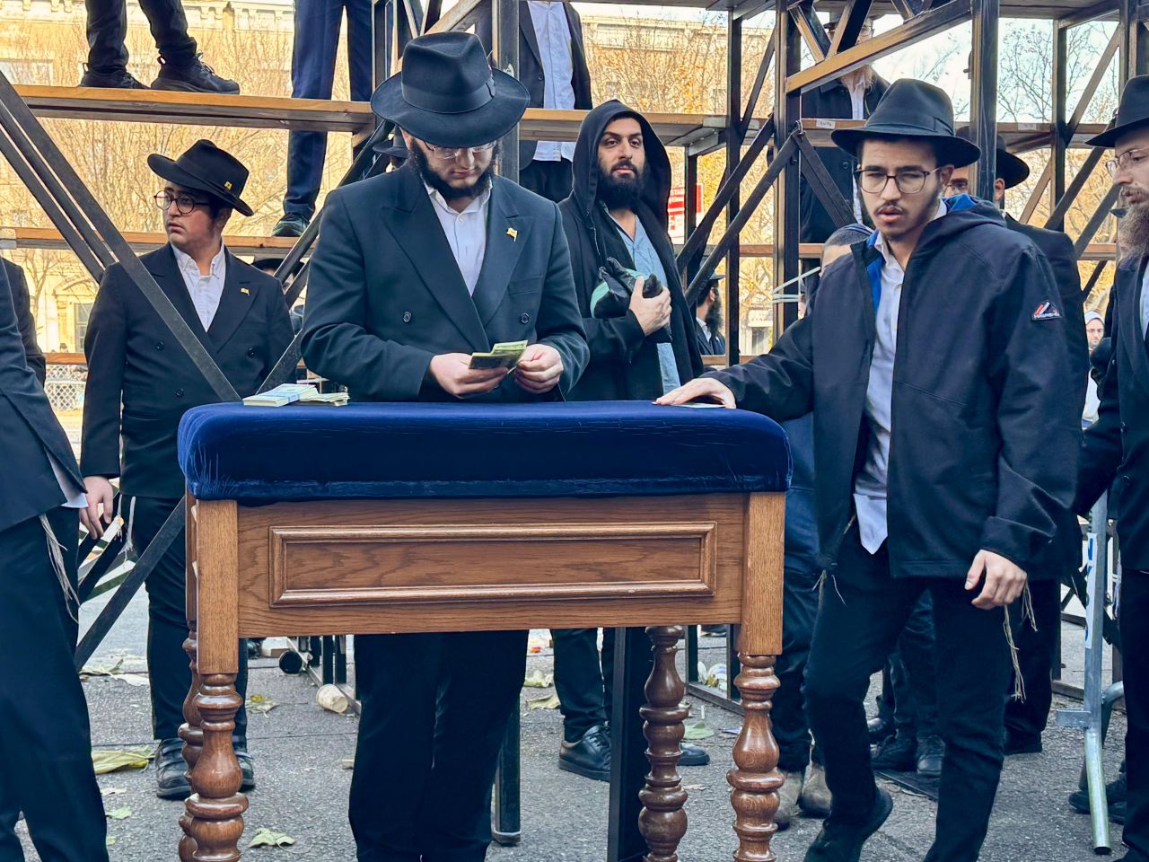הצלם הת׳ פתחיה אדעליסט תיעד את החלוקה הבוקר בפתחו של 770.