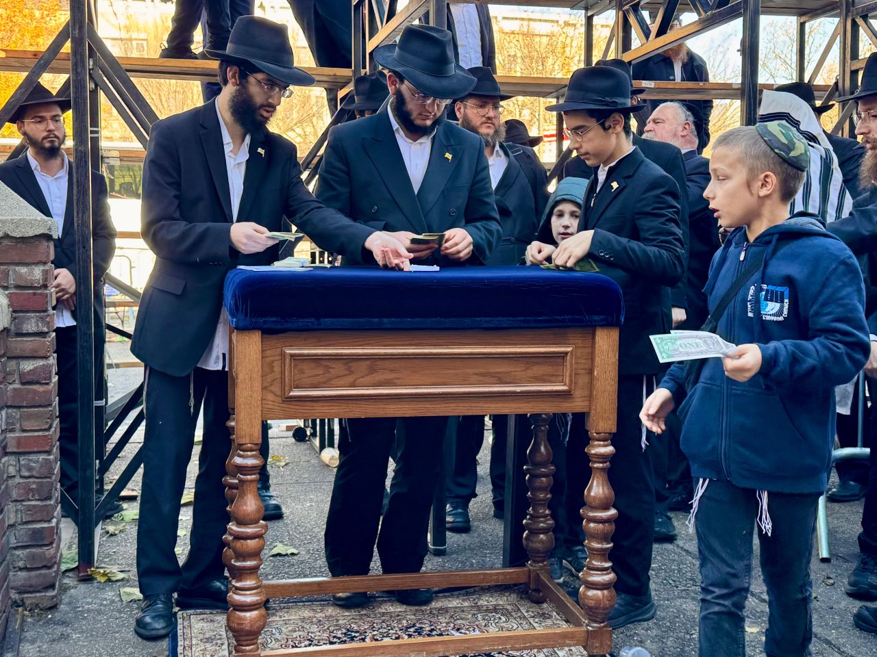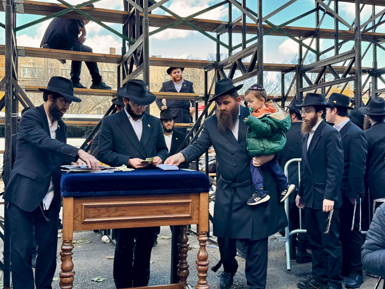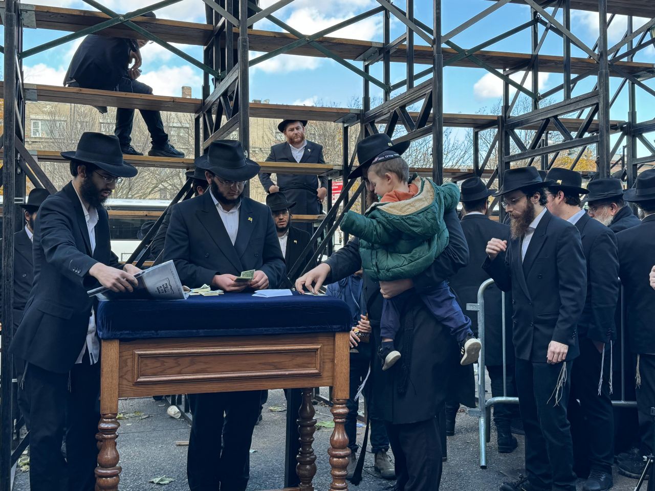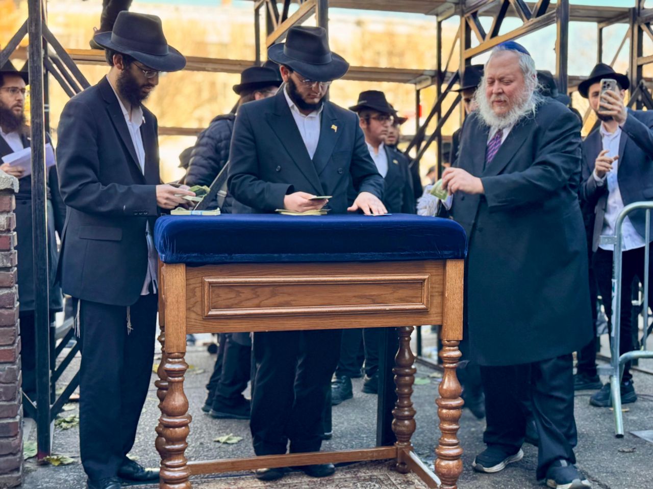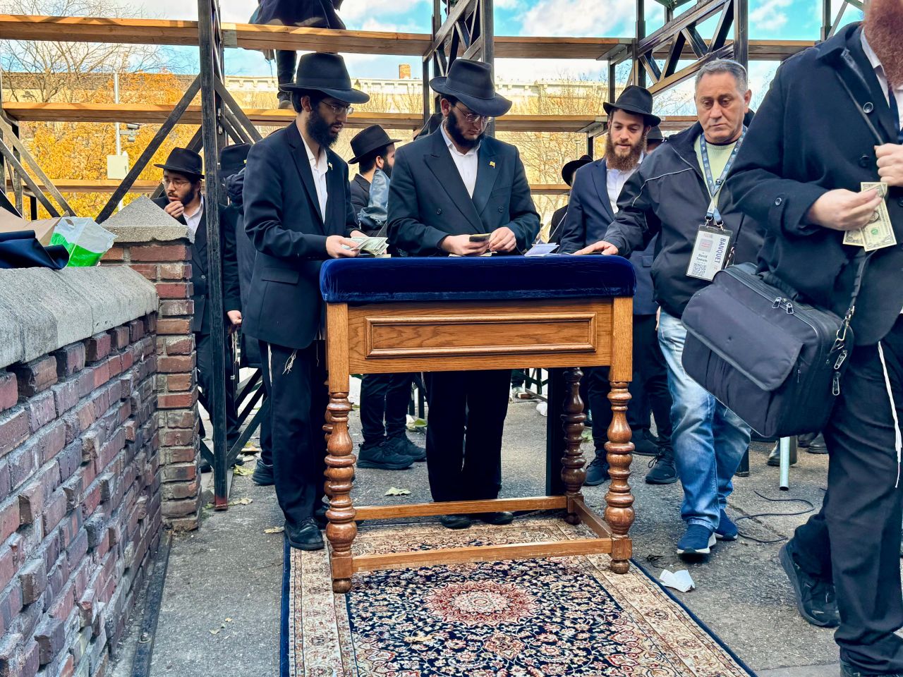 הצלם הת׳ פתחיה אדעליסט תיעד את החלוקה הבוקר בפתחו של 770.