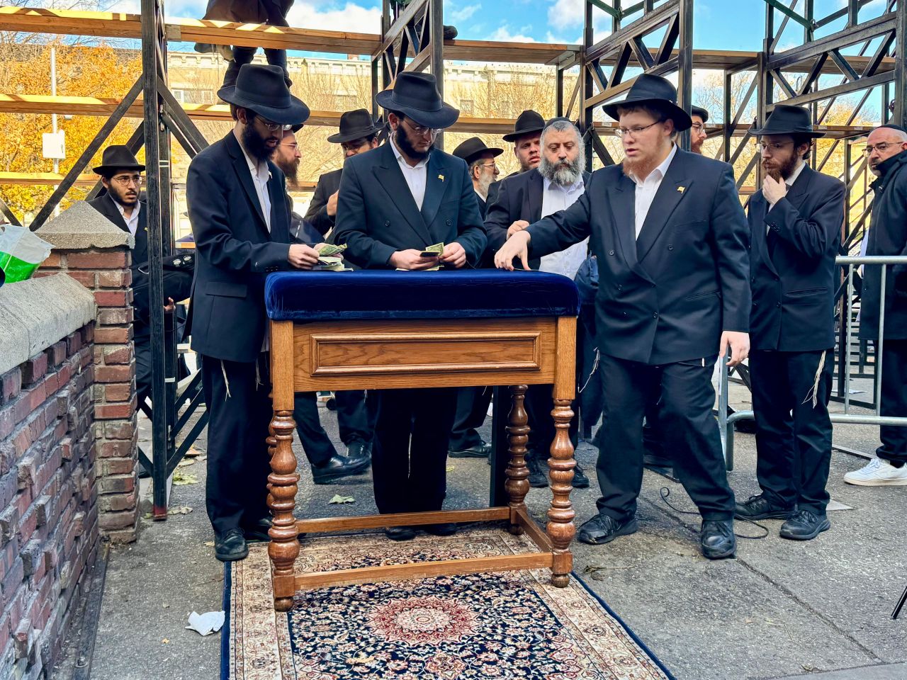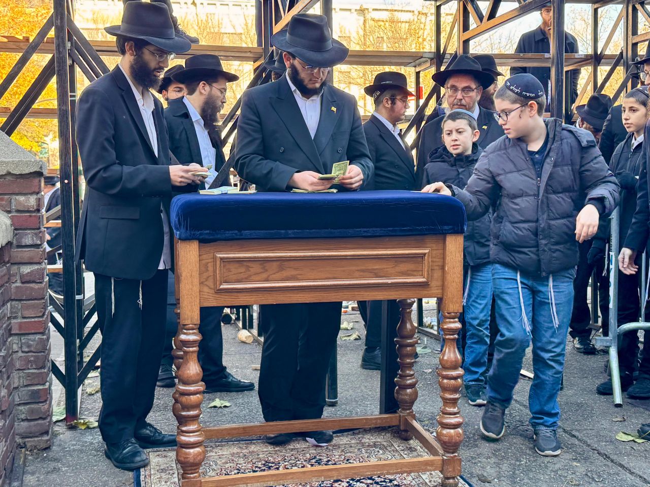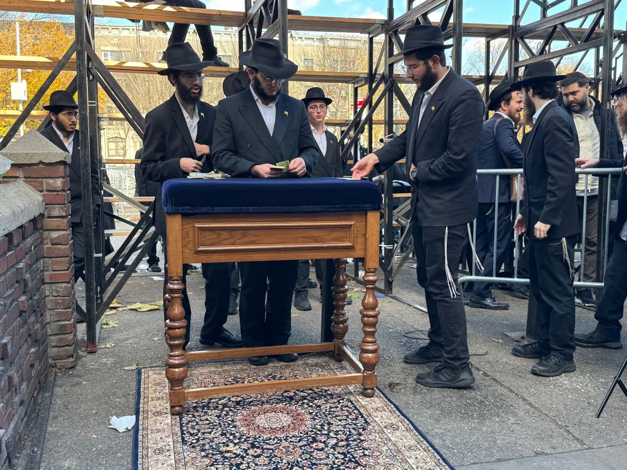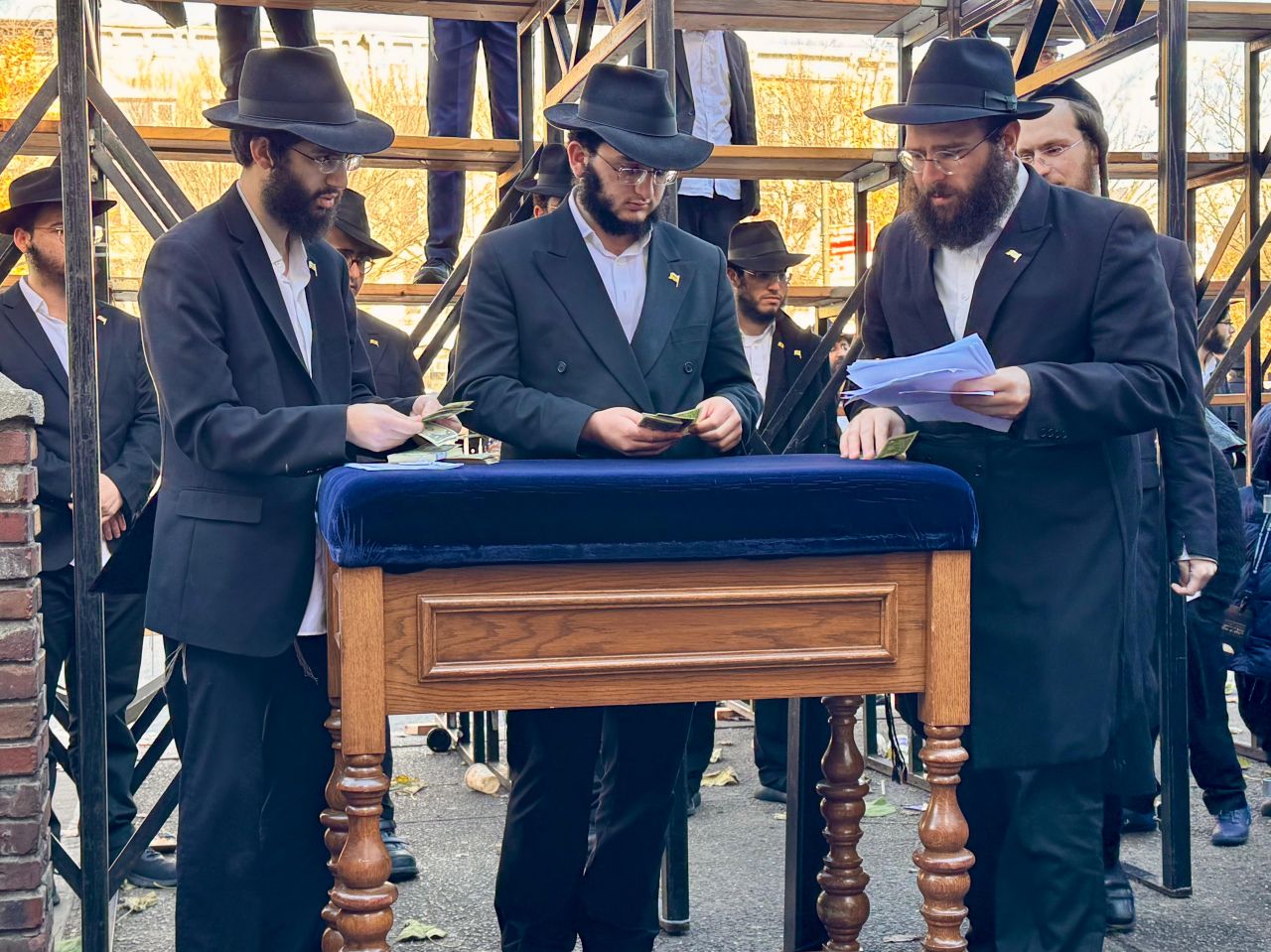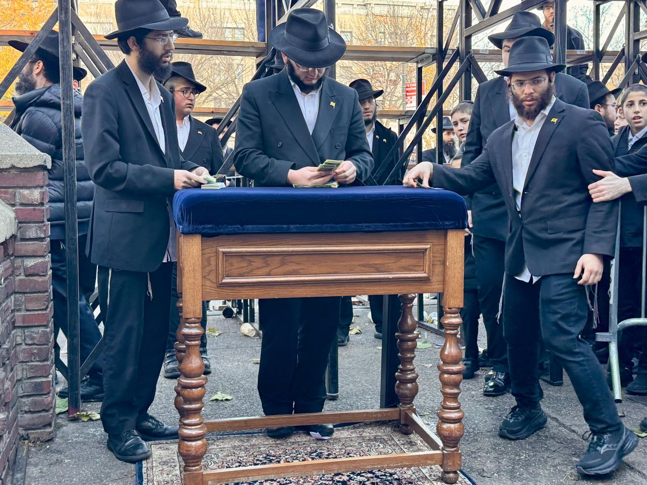 הצלם הת׳ פתחיה אדעליסט תיעד את החלוקה הבוקר בפתחו של 770.