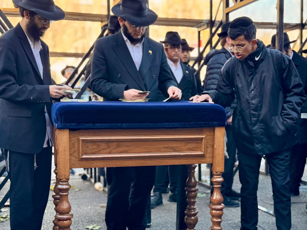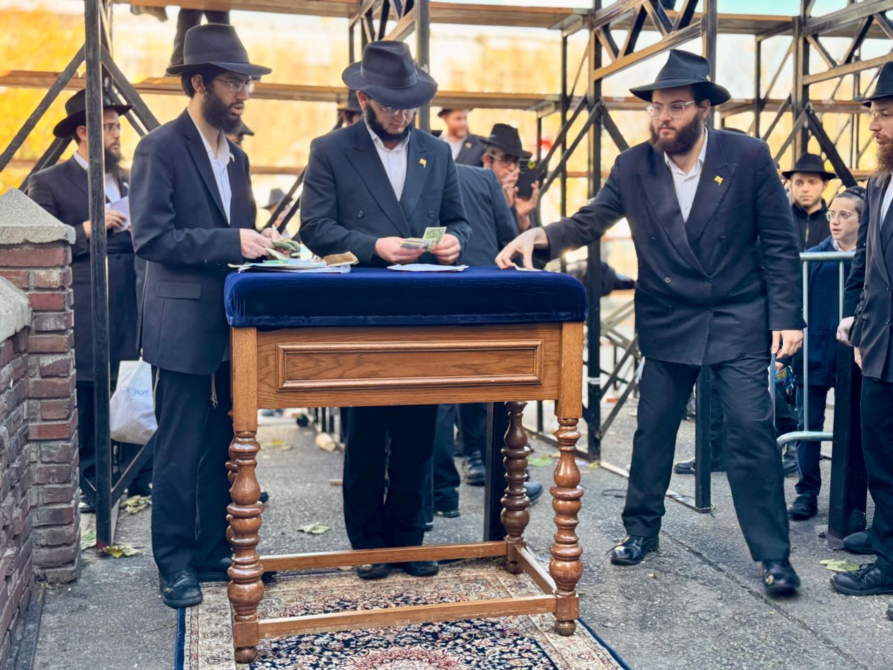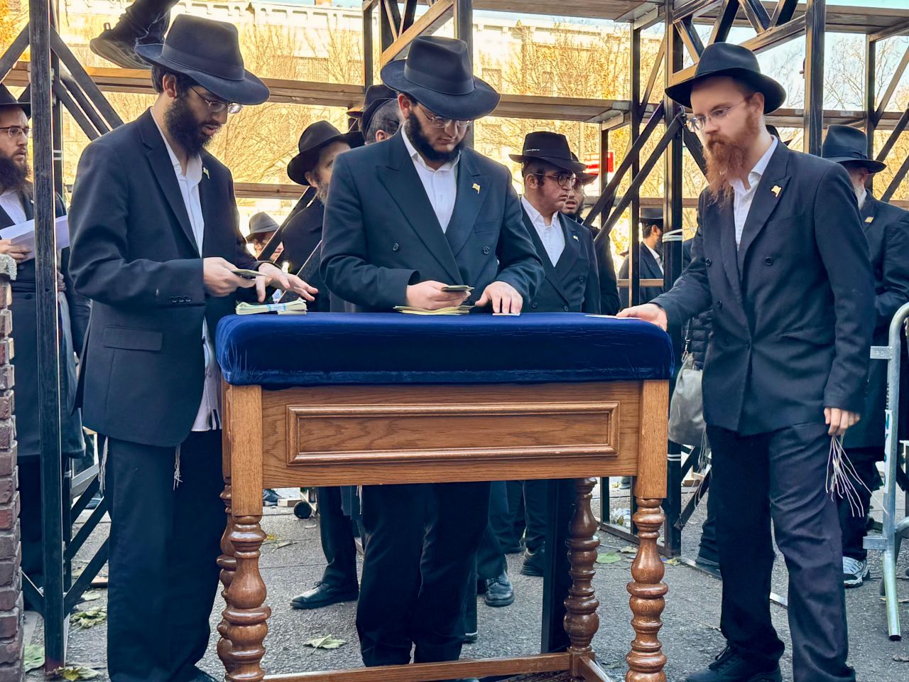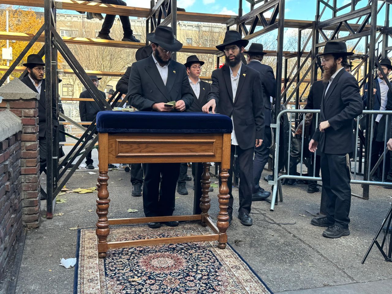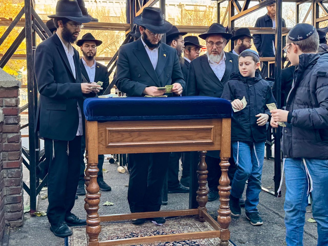 הצלם הת׳ פתחיה אדעליסט תיעד את החלוקה הבוקר בפתחו של 770.