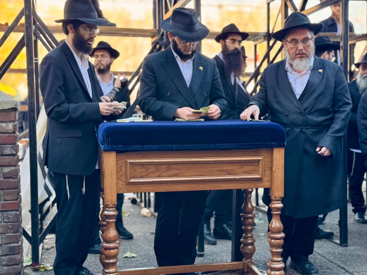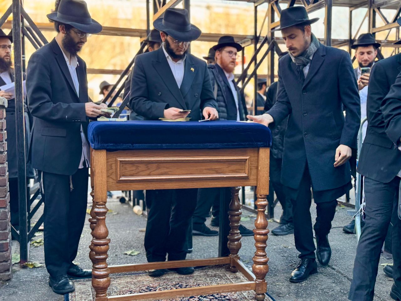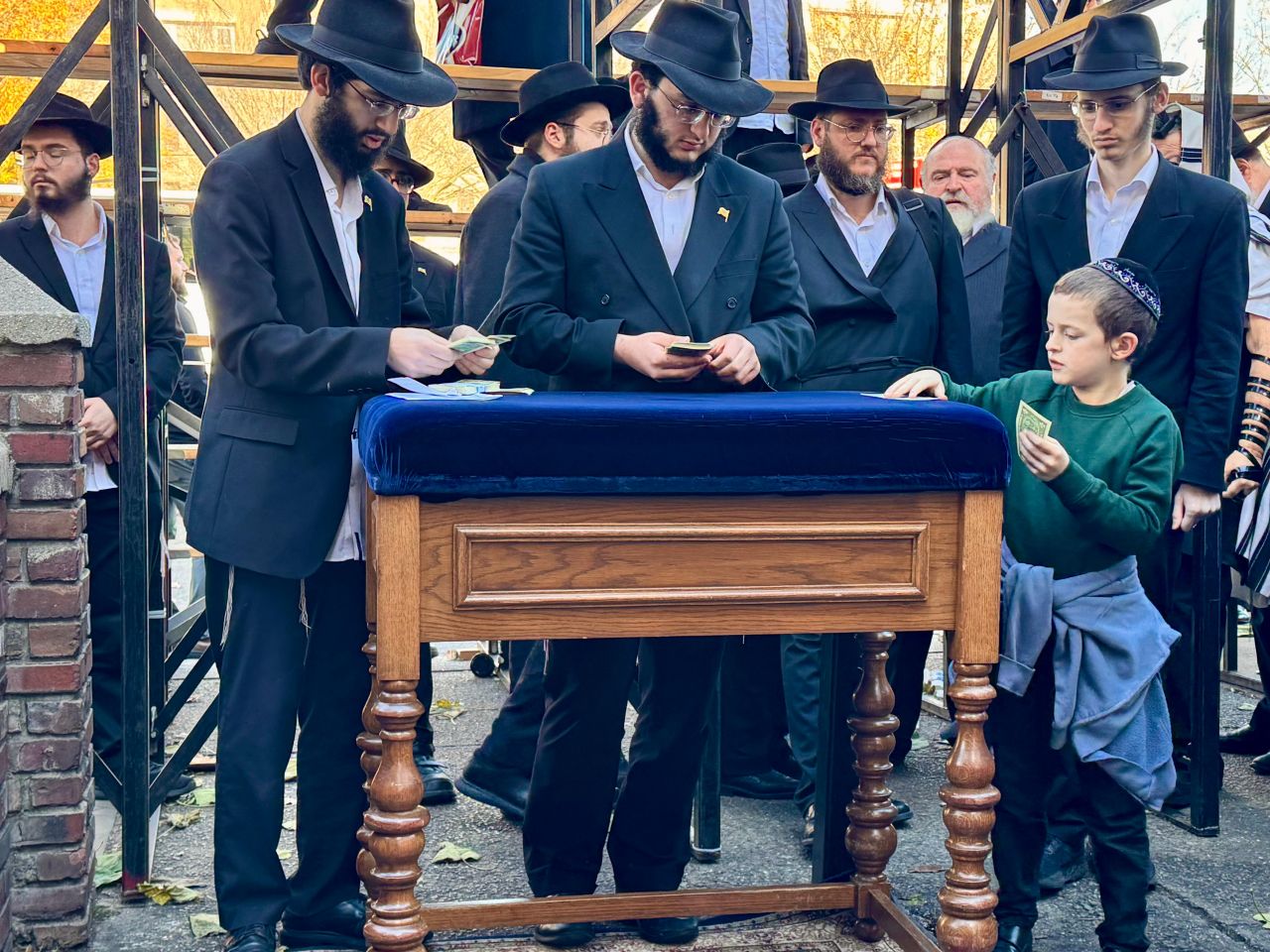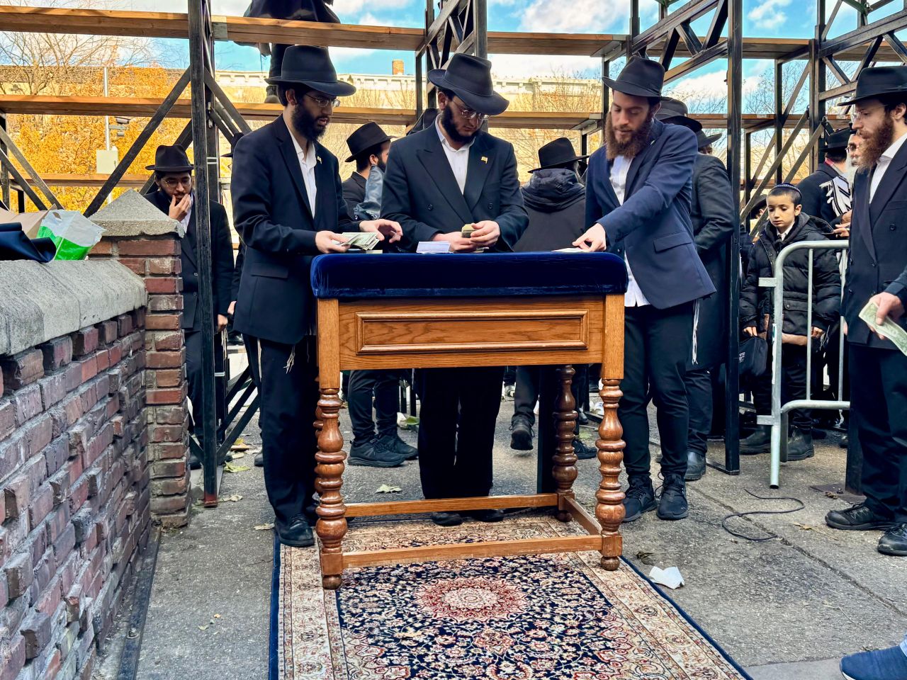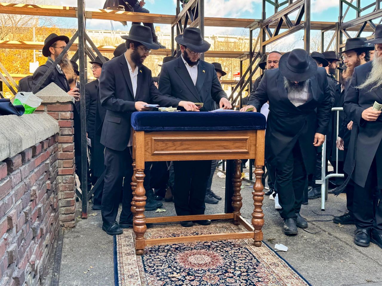 הצלם הת׳ פתחיה אדעליסט תיעד את החלוקה הבוקר בפתחו של 770.