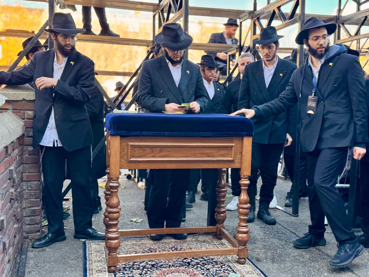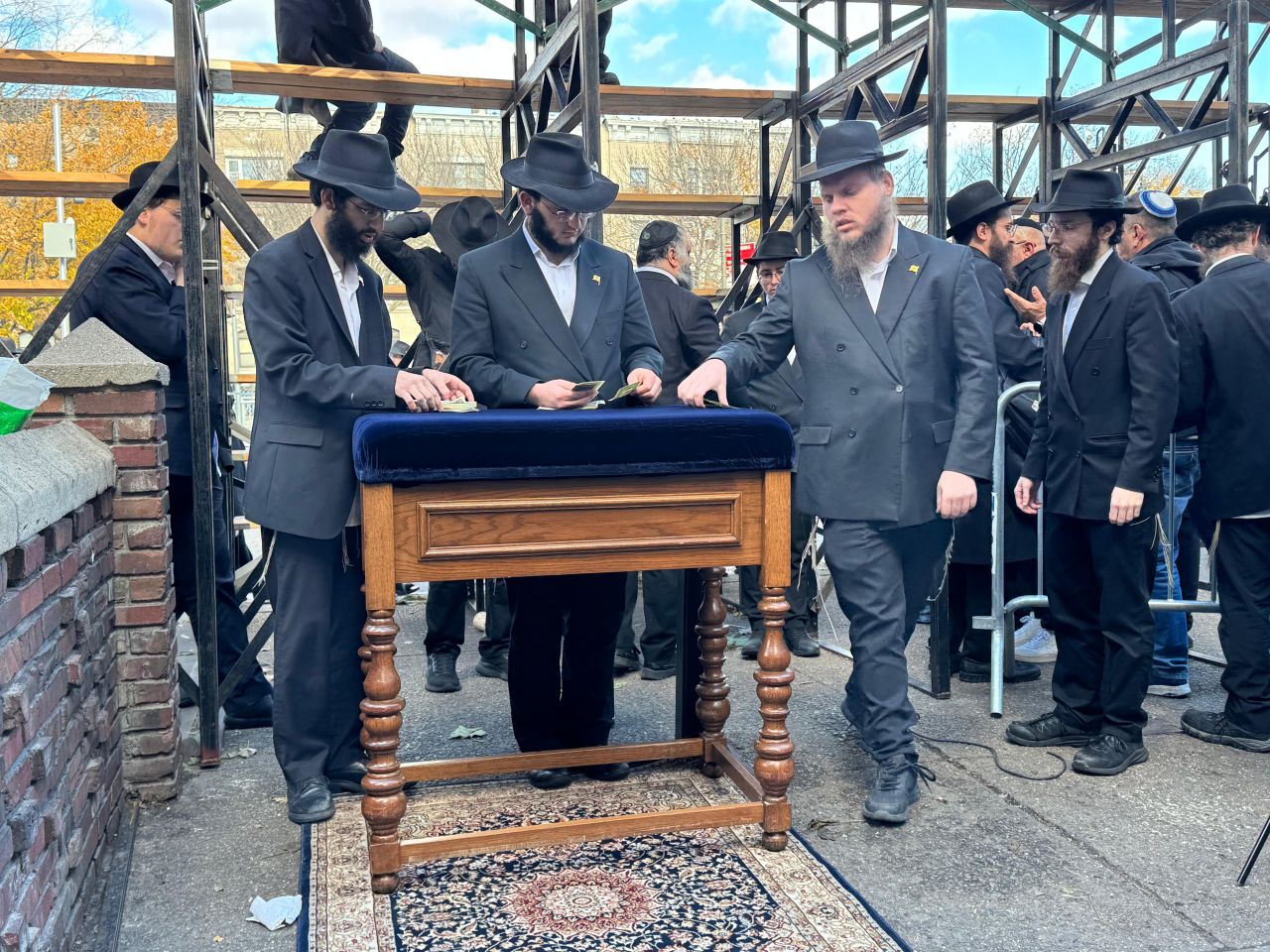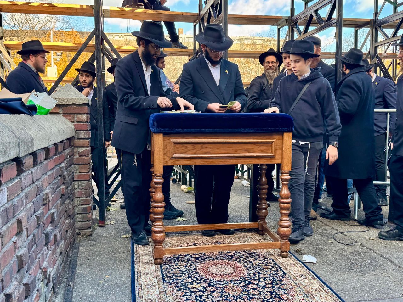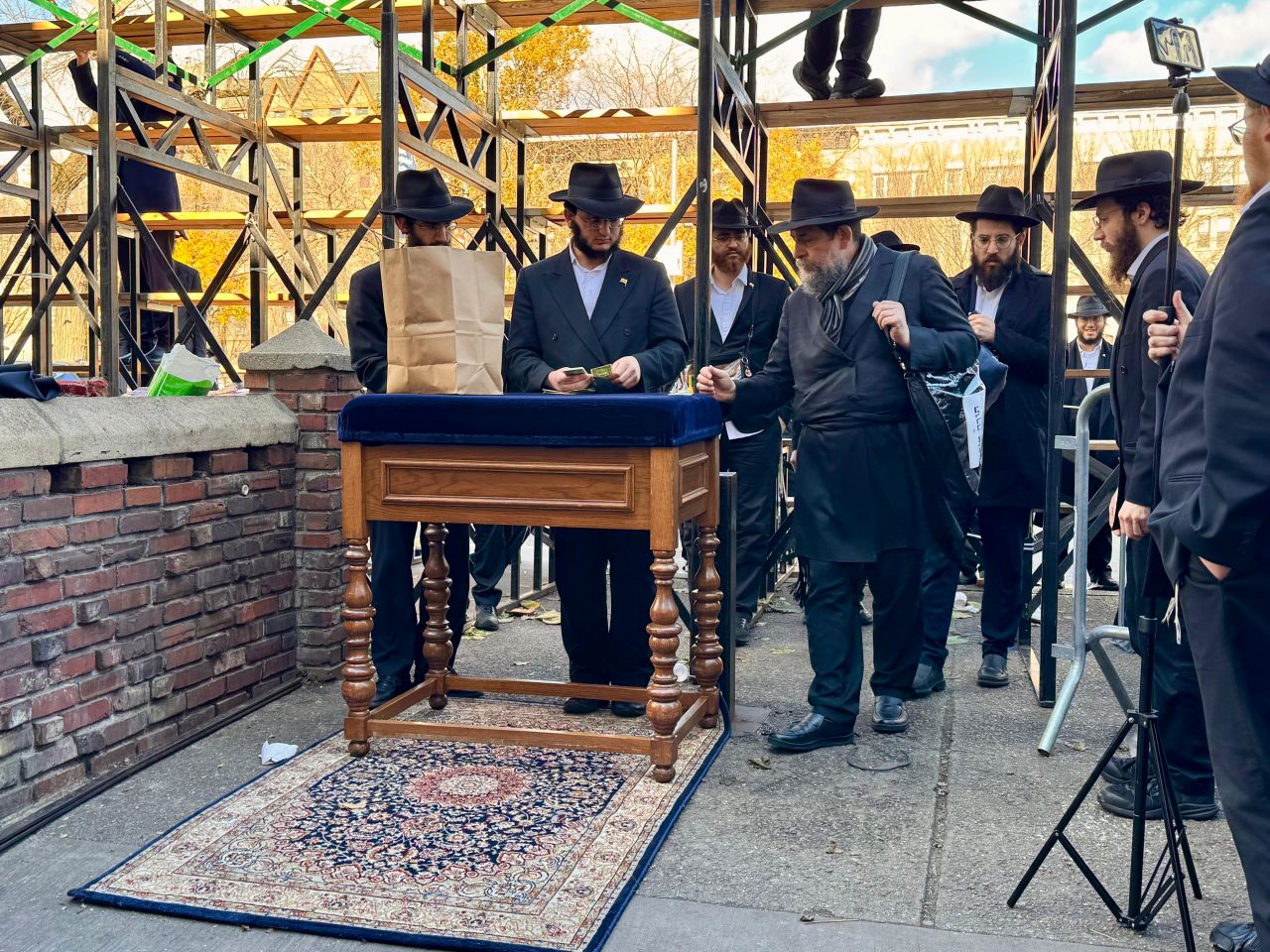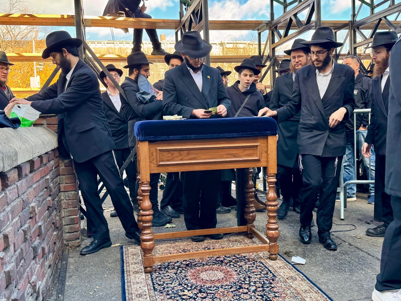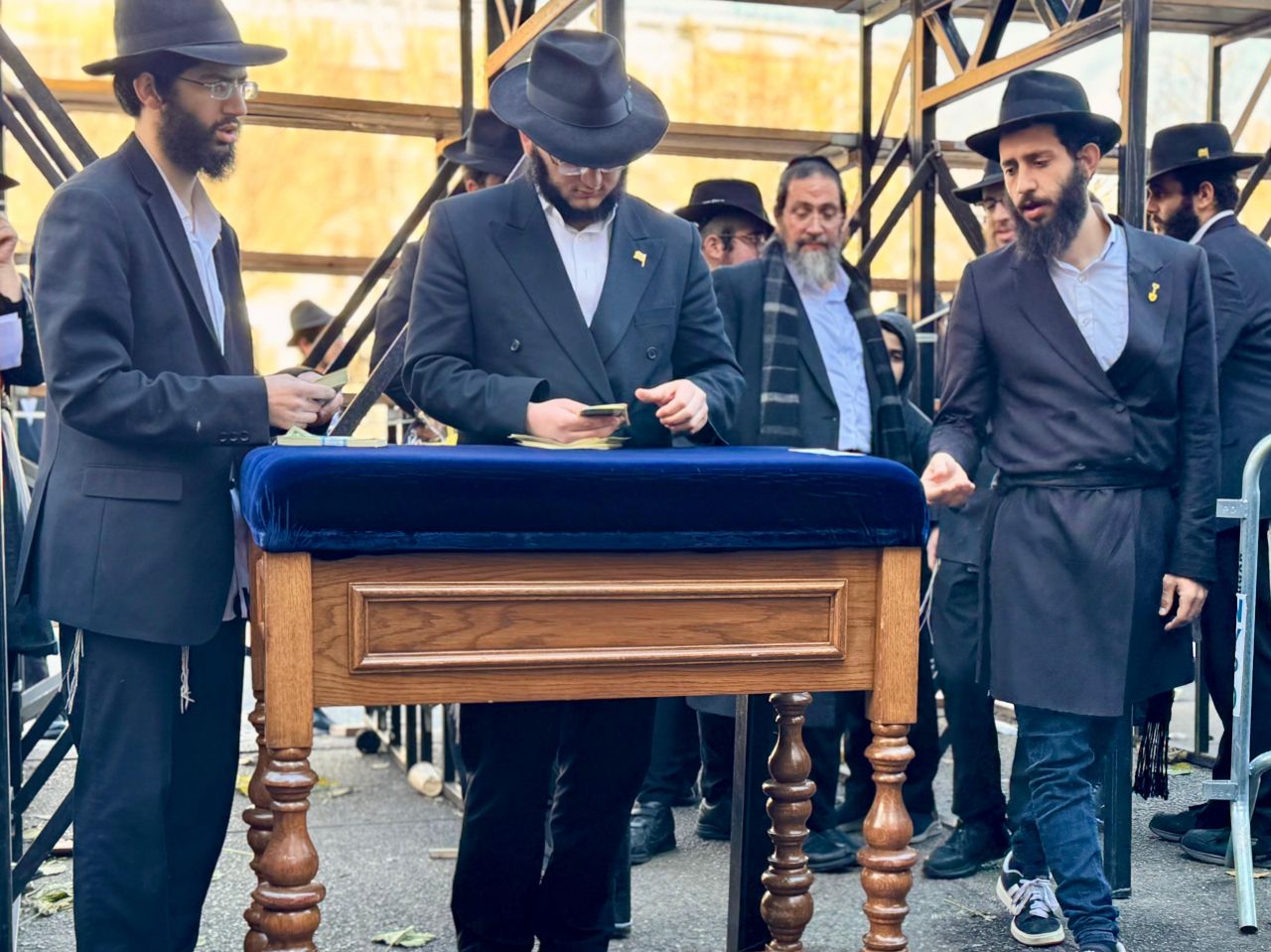 הצלם הת׳ פתחיה אדעליסט תיעד את החלוקה הבוקר בפתחו של 770.