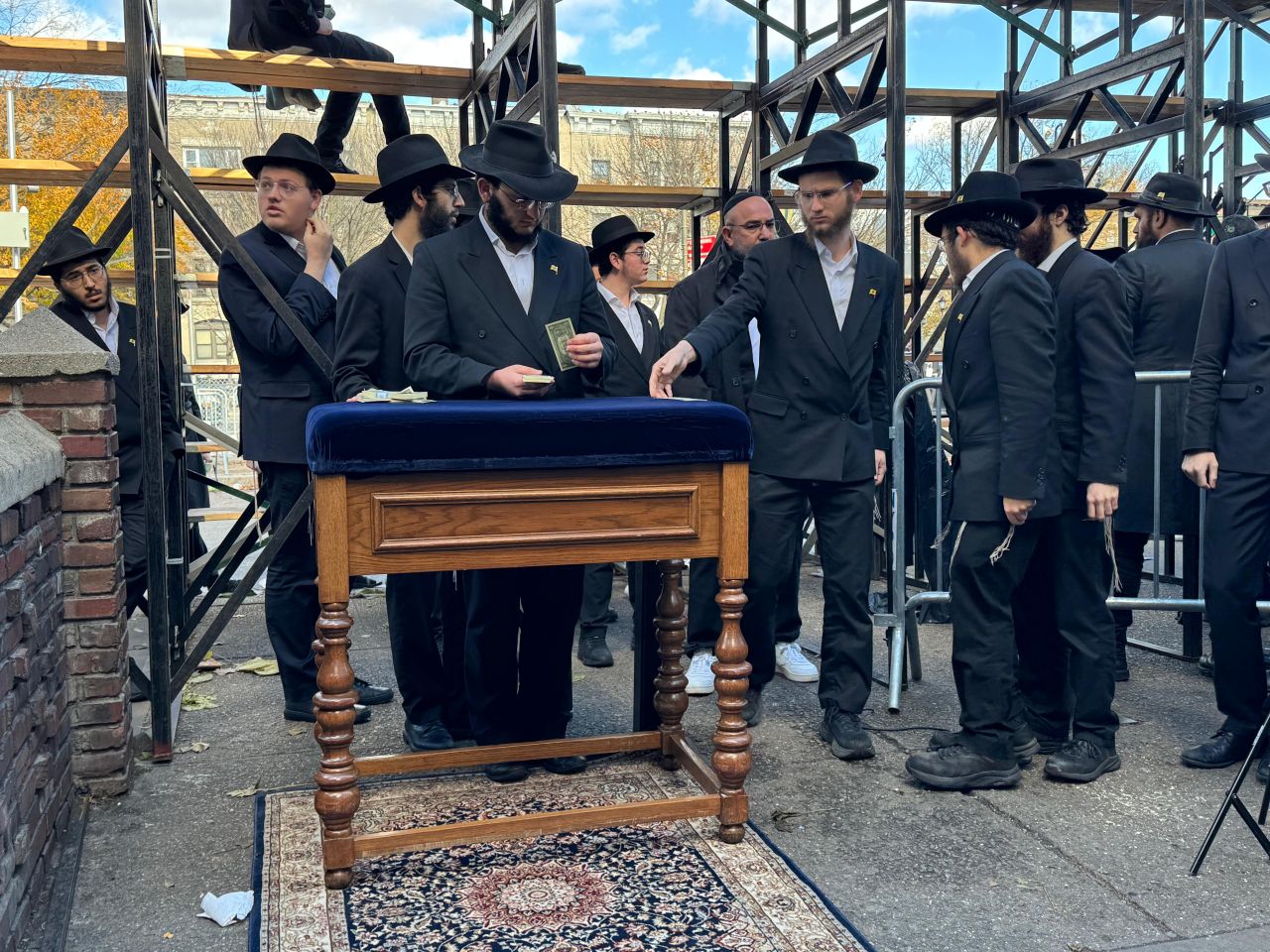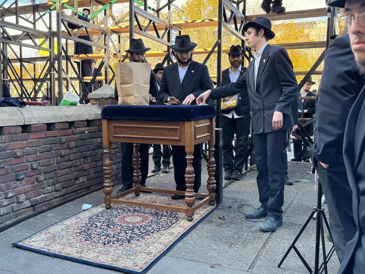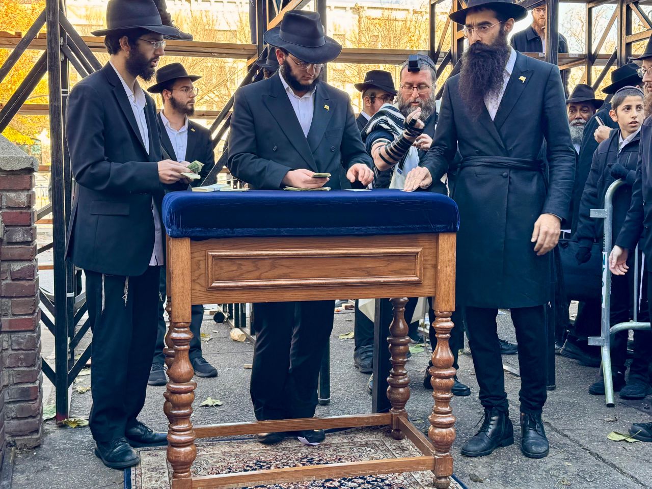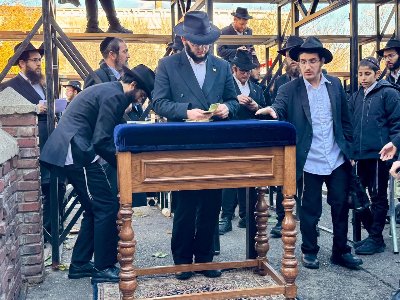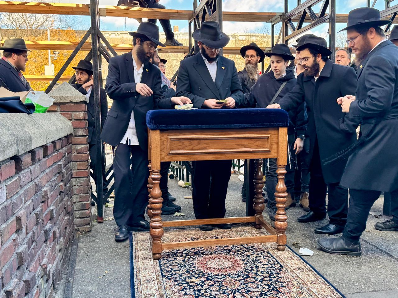 הצלם הת׳ פתחיה אדעליסט תיעד את החלוקה הבוקר בפתחו של 770.
