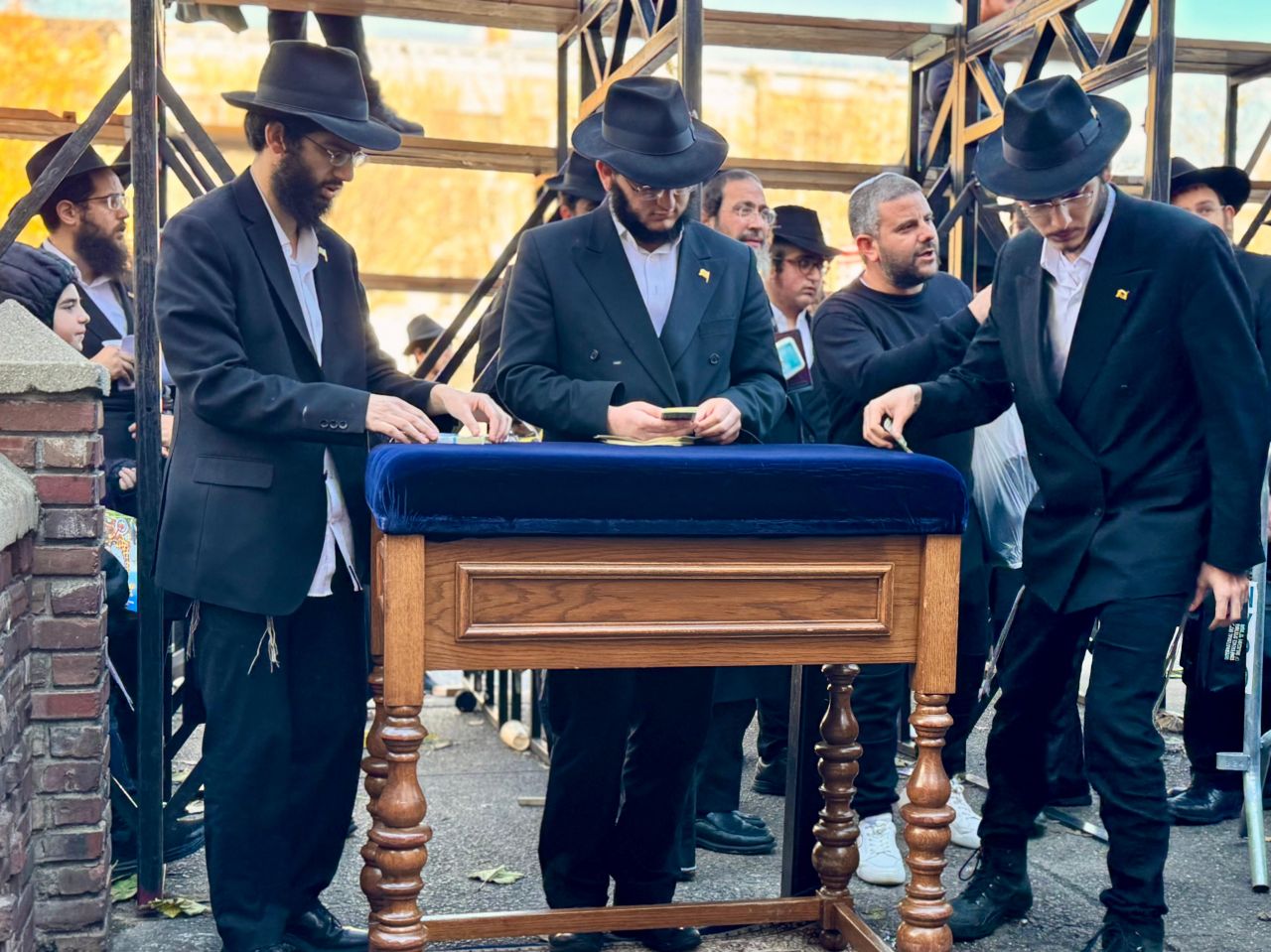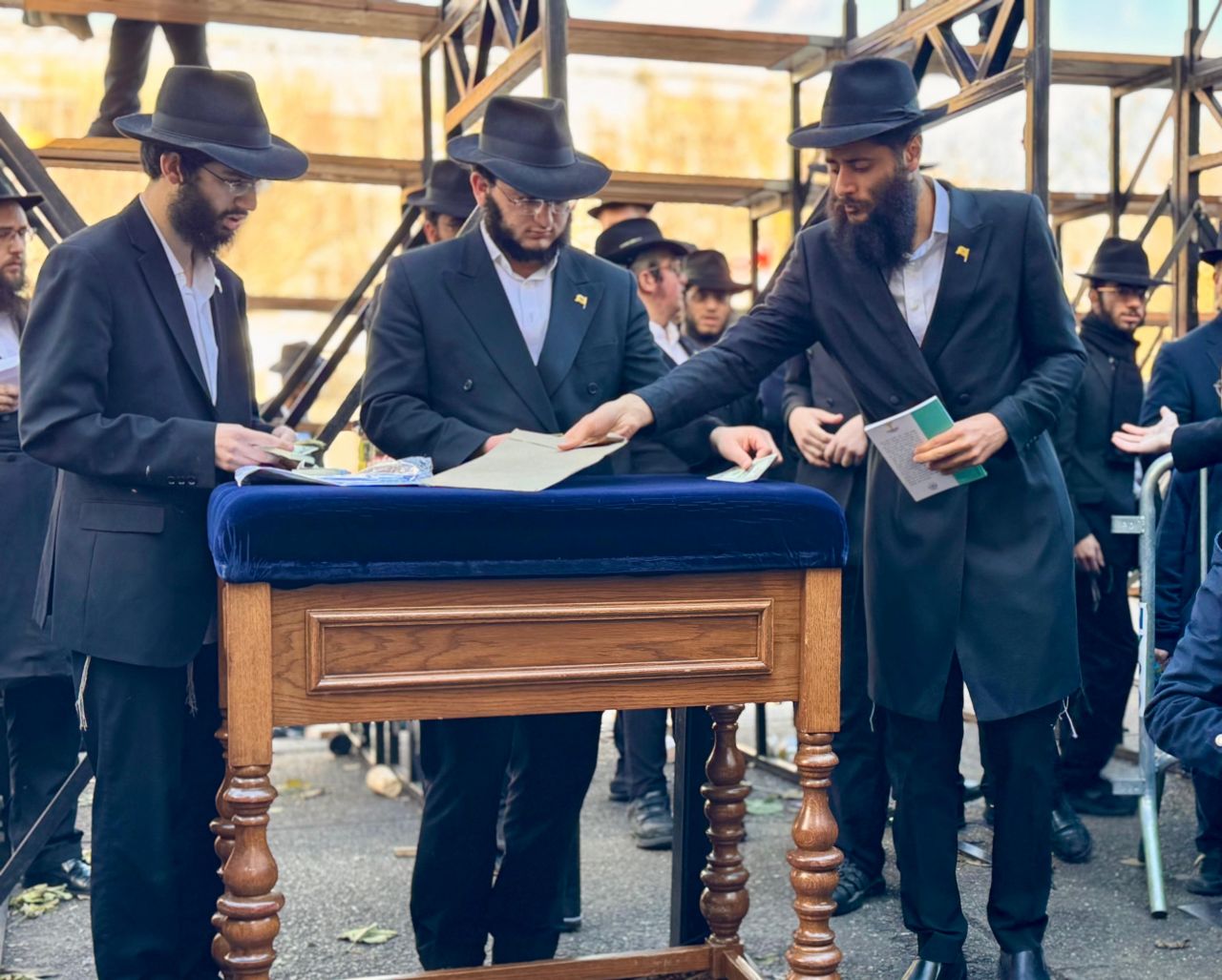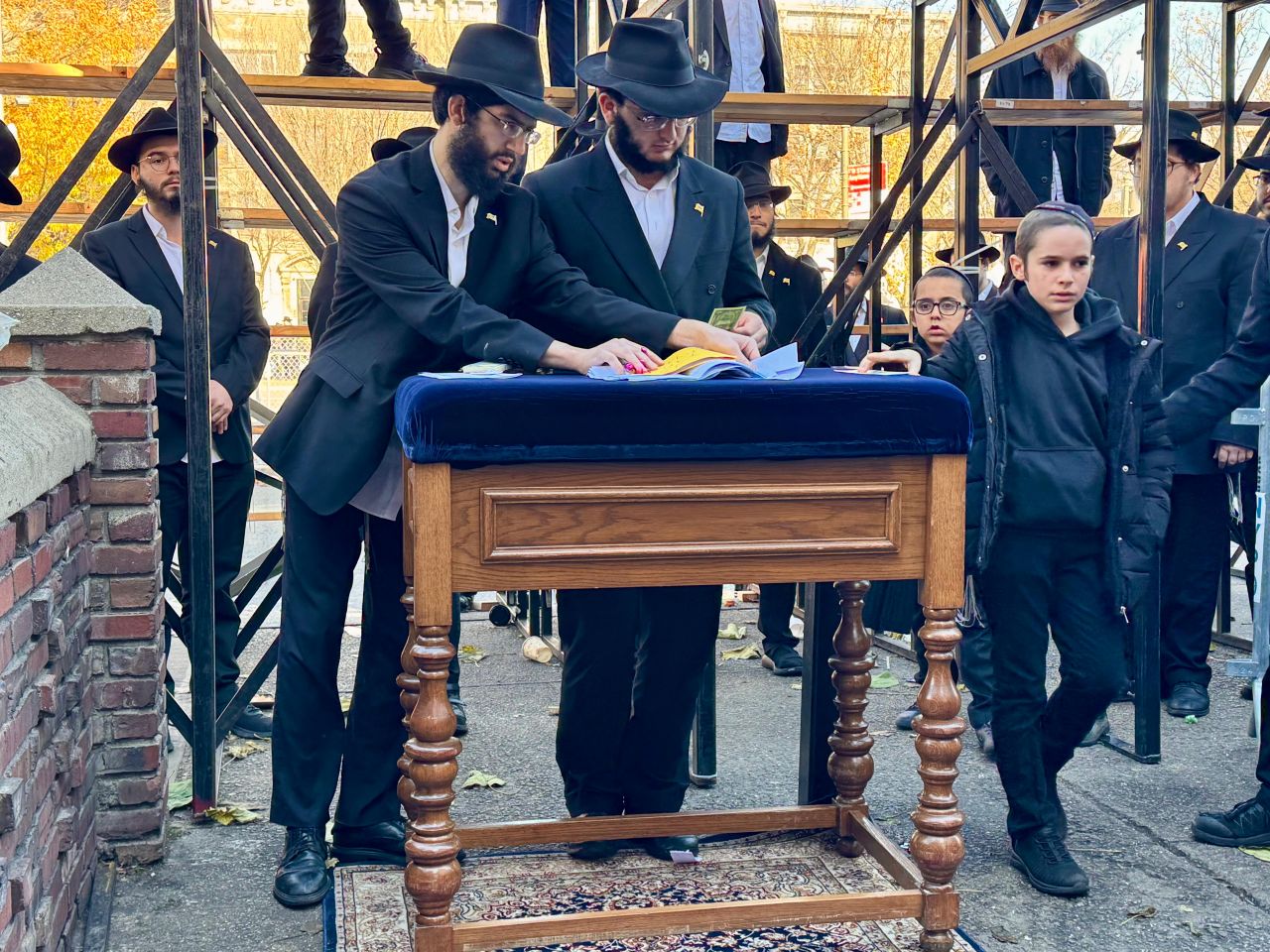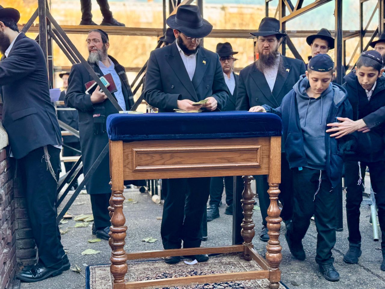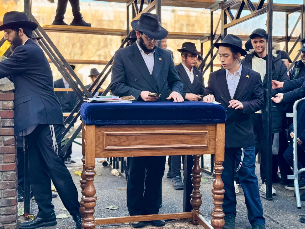 הצלם הת׳ פתחיה אדעליסט תיעד את החלוקה הבוקר בפתחו של 770.