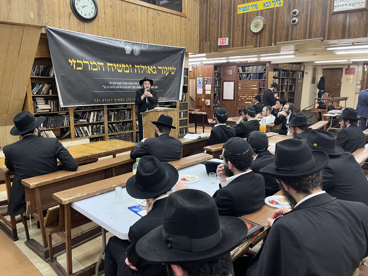 עשרות תמימים ואנ"ש התאספו לשיעור גאולה ומשיח השבועי בבית - משיח 770, שהוקדם עקב אירועי ל"ג בעומר.