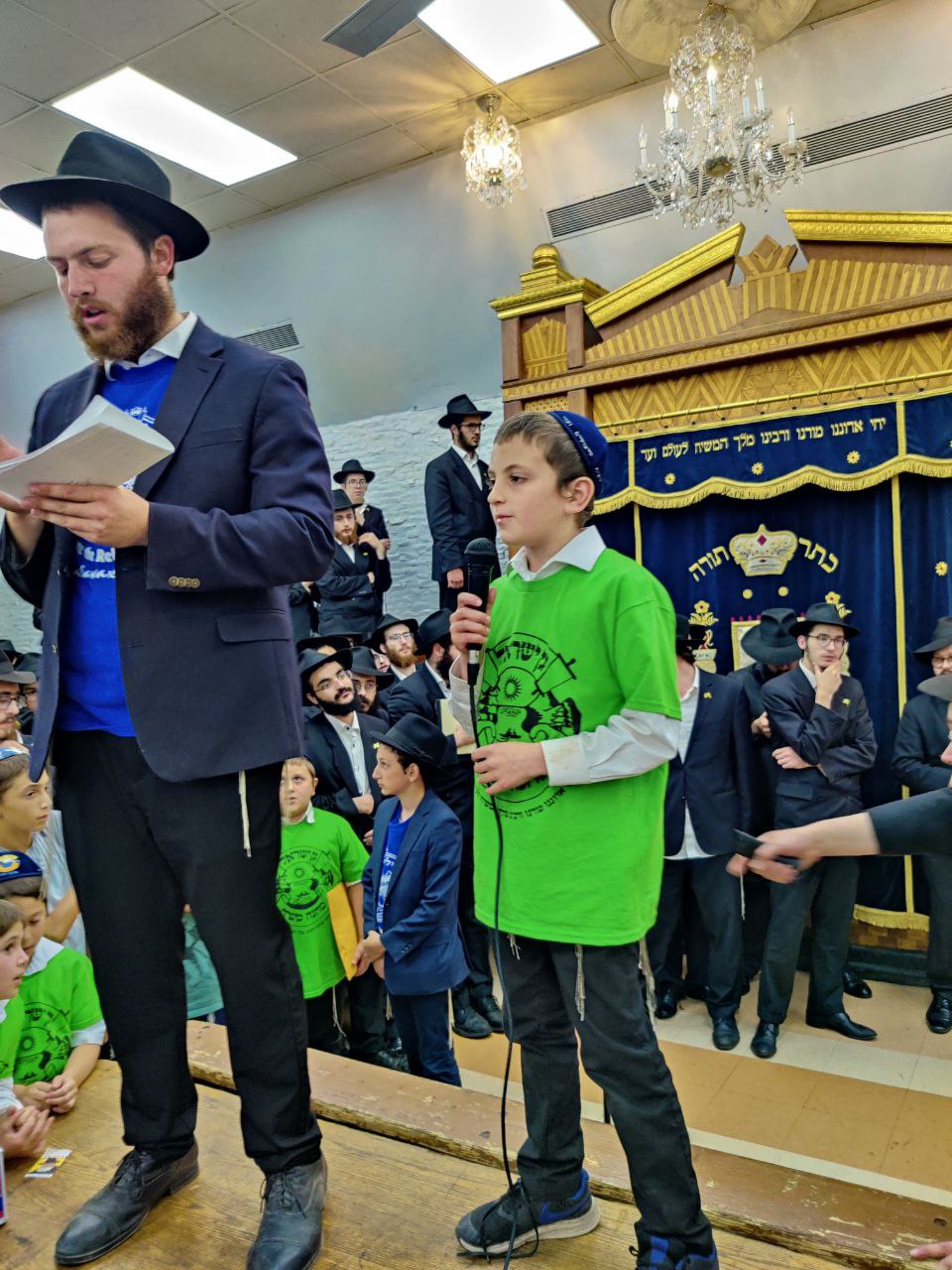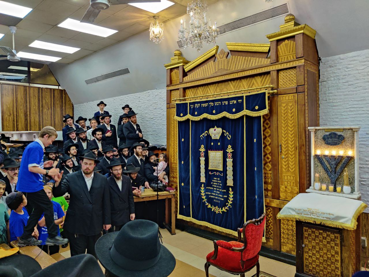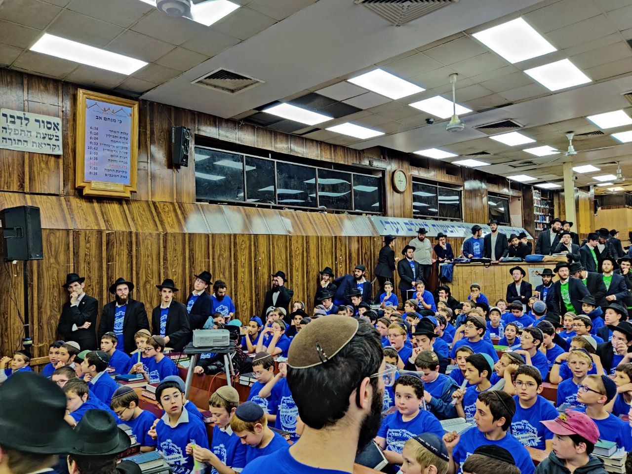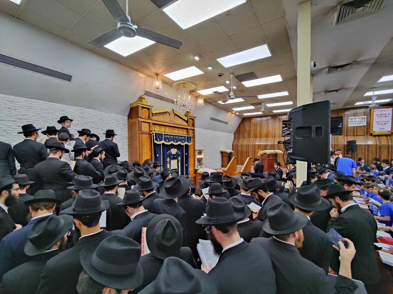 הילדים פצחו בשירים אותם למדו ב'קעמפ', וכעבור כמה דקות נעמדו כולם הכן לקראת כניסתו של הרבי שליט"א מלך המשיח לתפילת מנחה.