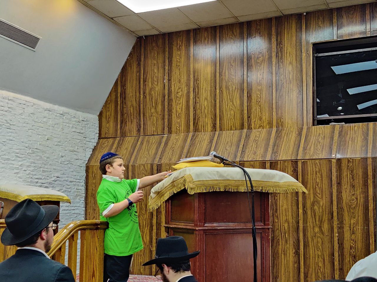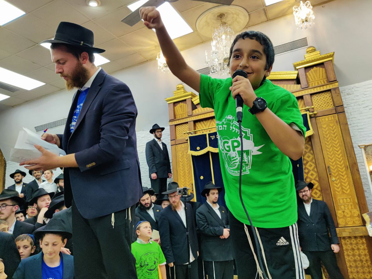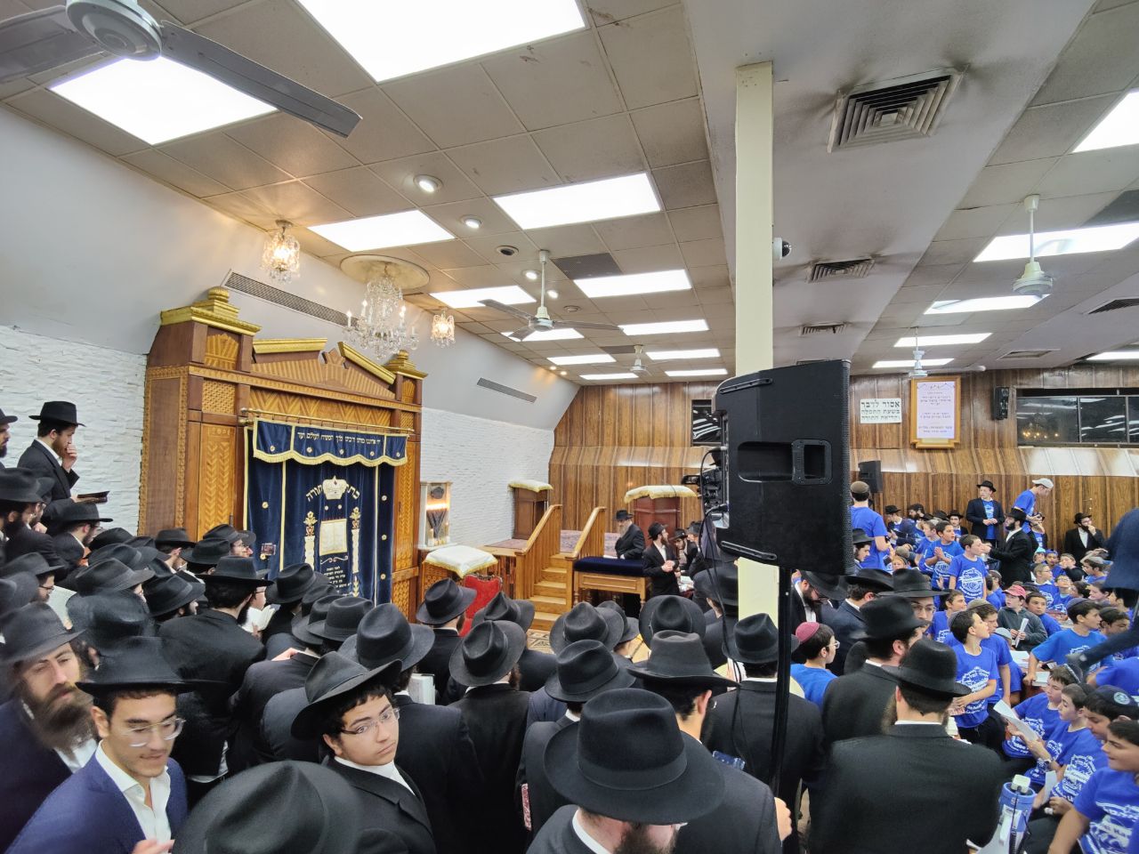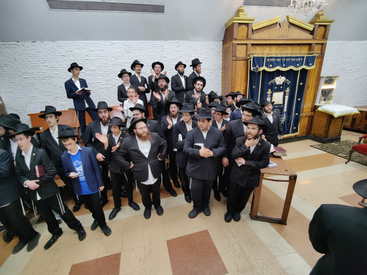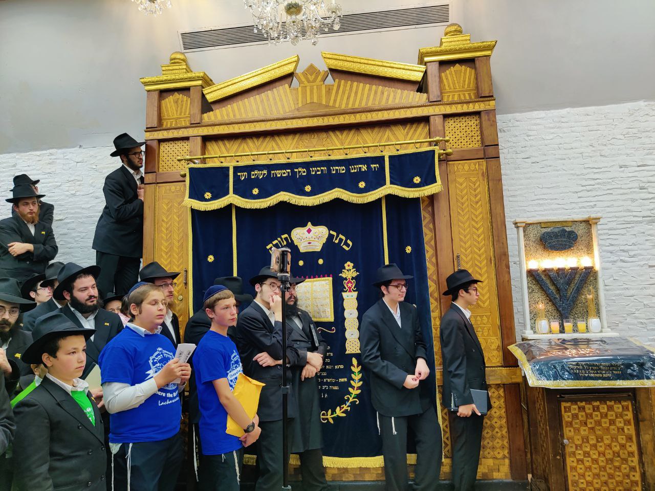 הילדים פצחו בשירים אותם למדו ב'קעמפ', וכעבור כמה דקות נעמדו כולם הכן לקראת כניסתו של הרבי שליט"א מלך המשיח לתפילת מנחה.