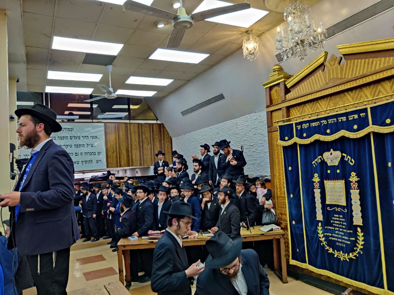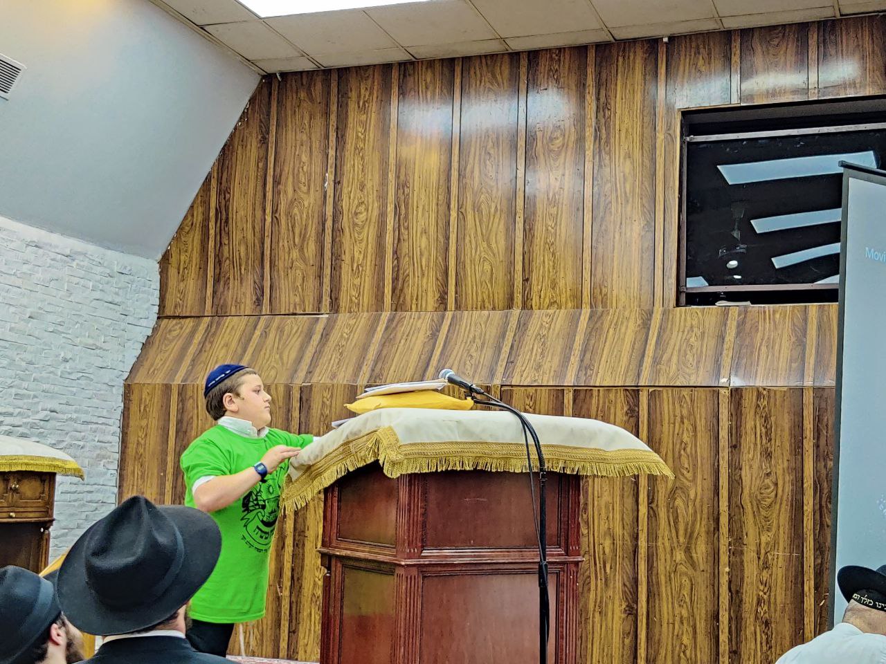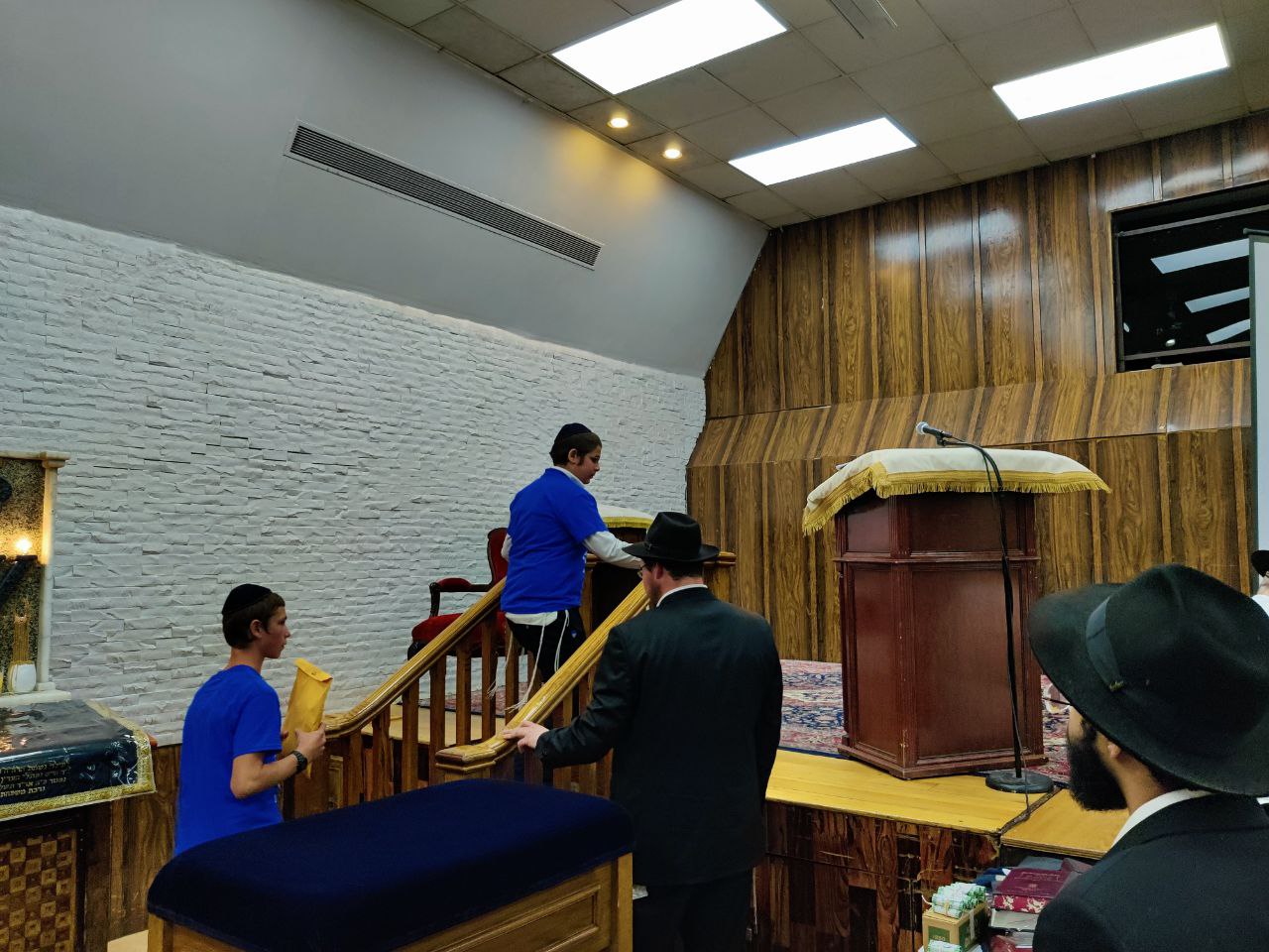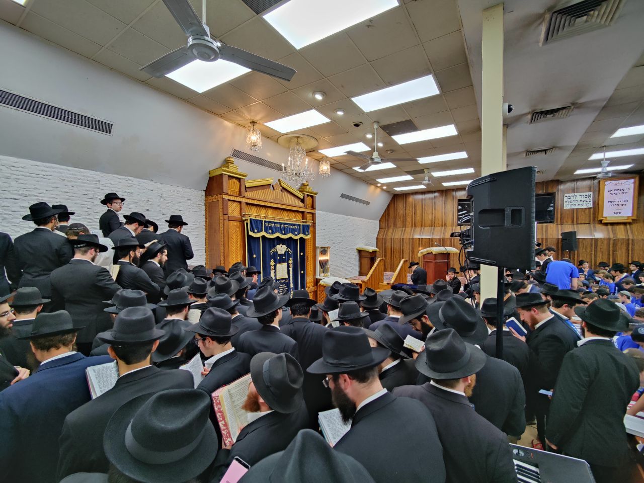 הילדים פצחו בשירים אותם למדו ב'קעמפ', וכעבור כמה דקות נעמדו כולם הכן לקראת כניסתו של הרבי שליט"א מלך המשיח לתפילת מנחה.