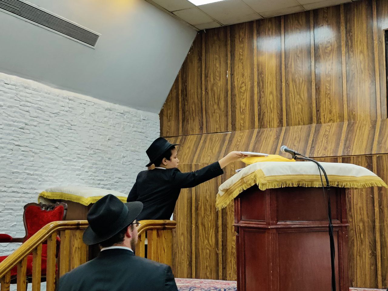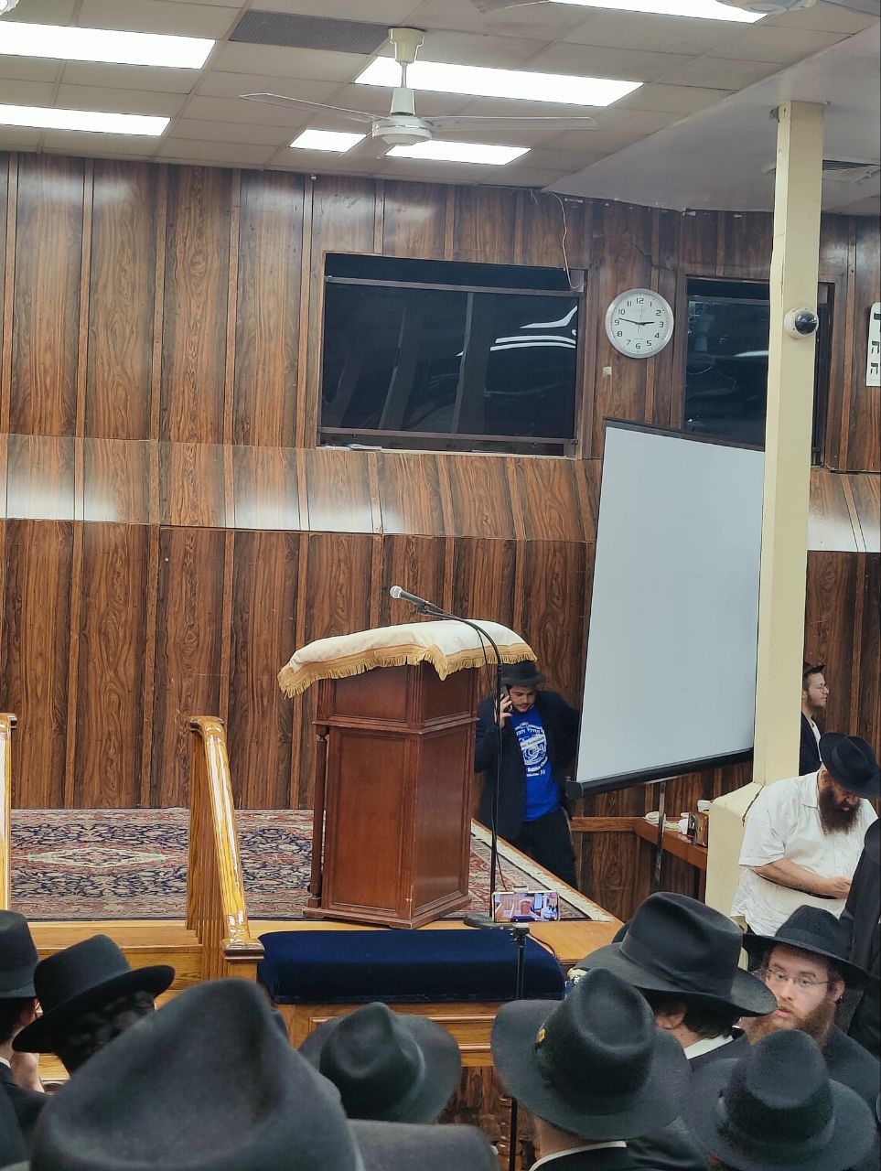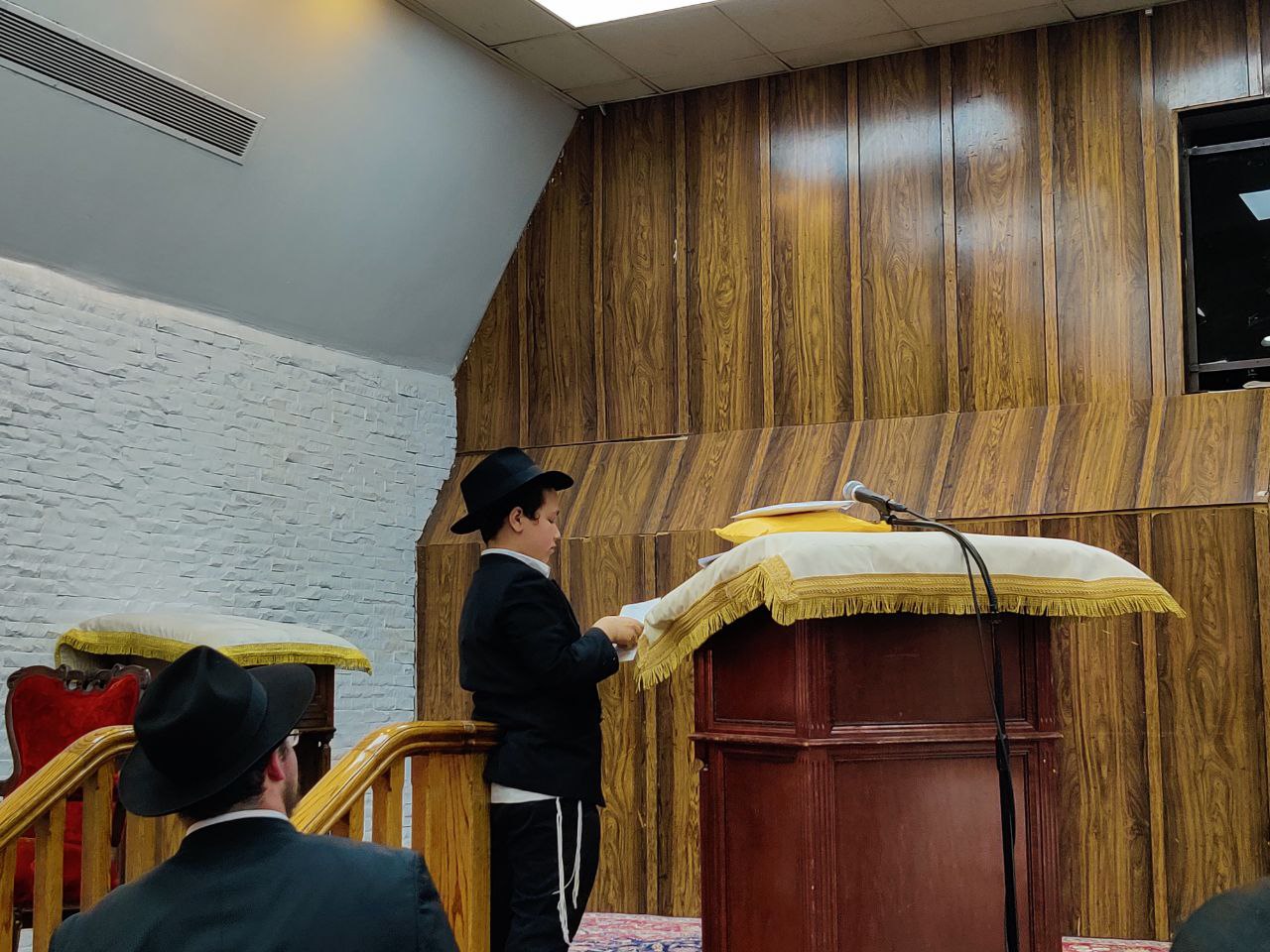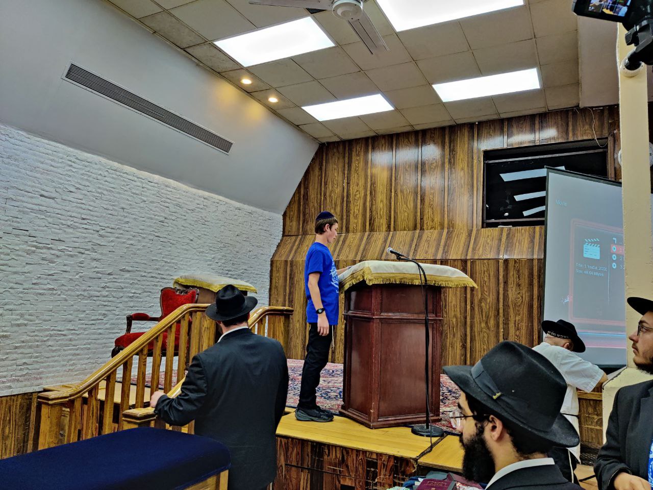 הילדים פצחו בשירים אותם למדו ב'קעמפ', וכעבור כמה דקות נעמדו כולם הכן לקראת כניסתו של הרבי שליט"א מלך המשיח לתפילת מנחה.