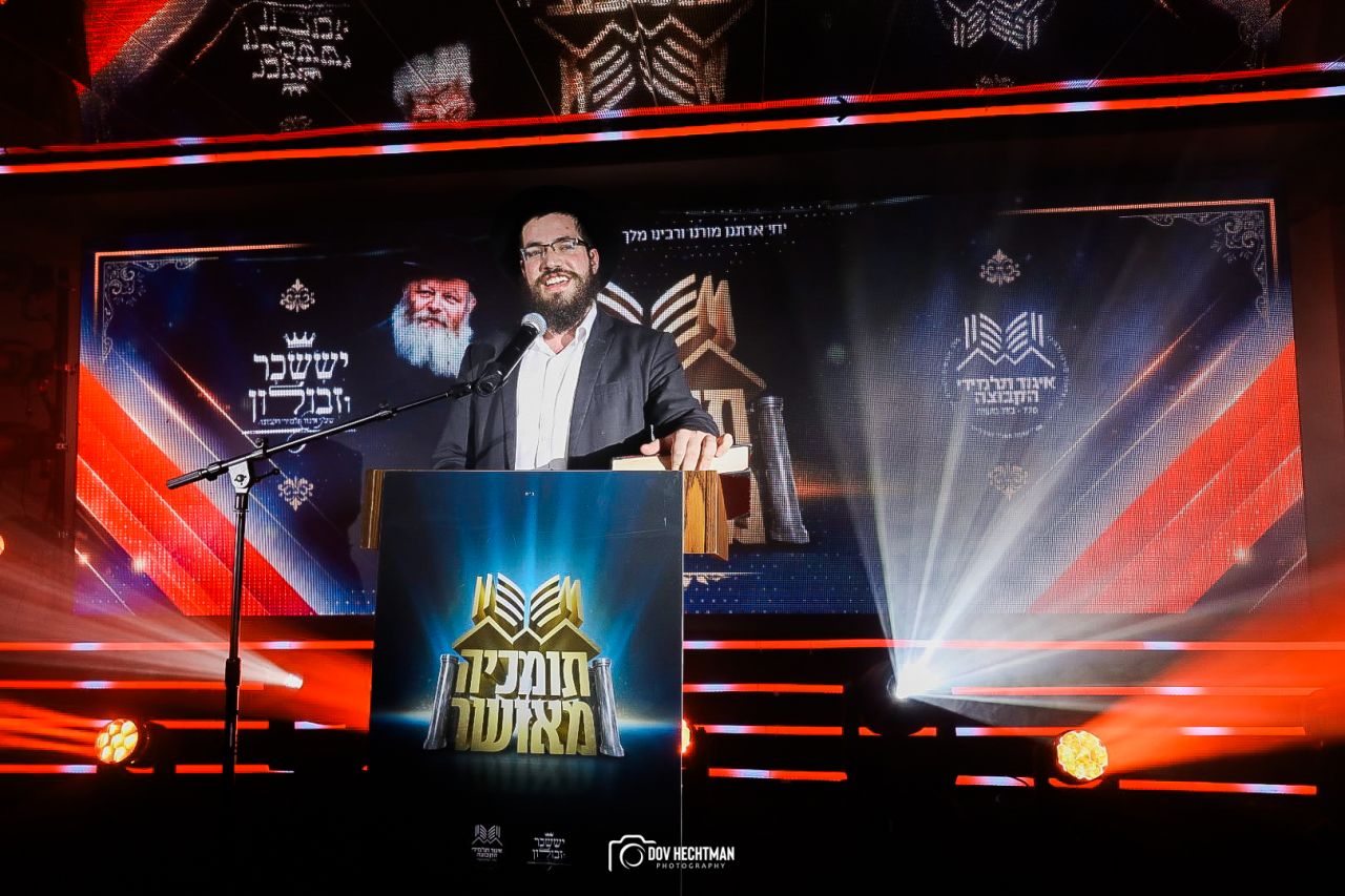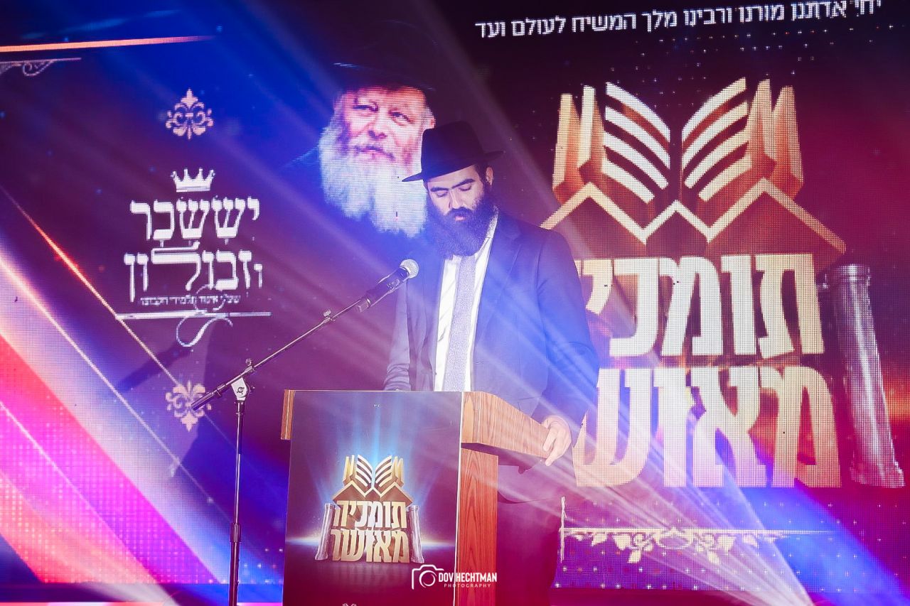 על המסך מופיעה שורה של תמימים – 'יששכר', המביעים את תודתם לקהל התומכים – 'זבולון'. יחד עם רבני האיגוד, מפרטים התמימים את שורת המתנות המרגשת אותה הם מקבלים בזכות ההשתתפות בפרוייקט. הרב ישראל קפלן האחראי על מסלול הלכה בפרויקט עולה לבמה, מזכיר אודות דבריו של הרבי הריי"צ על כך שבעבר כל ישובניק החזיק בבית בחור, לו הוא דאג ואותו הוא החזיק, הרבי הריי"צ מדבר על המצב שהיה בעבר וב"ה היום אנחנו זוכים שוב שישנם אנשים שדואגים להחזיק בחור, חודש חודש, כדי שיוכל לשבת וללמוד בשלווה, הרב קפלן מודה לשותפים הרבים הגודשים את האולם, ומאחל שהמשך השותפות עם תלמידי התמימים ימשיך להניב שפע גשמי ורוחני לכל התומכים.