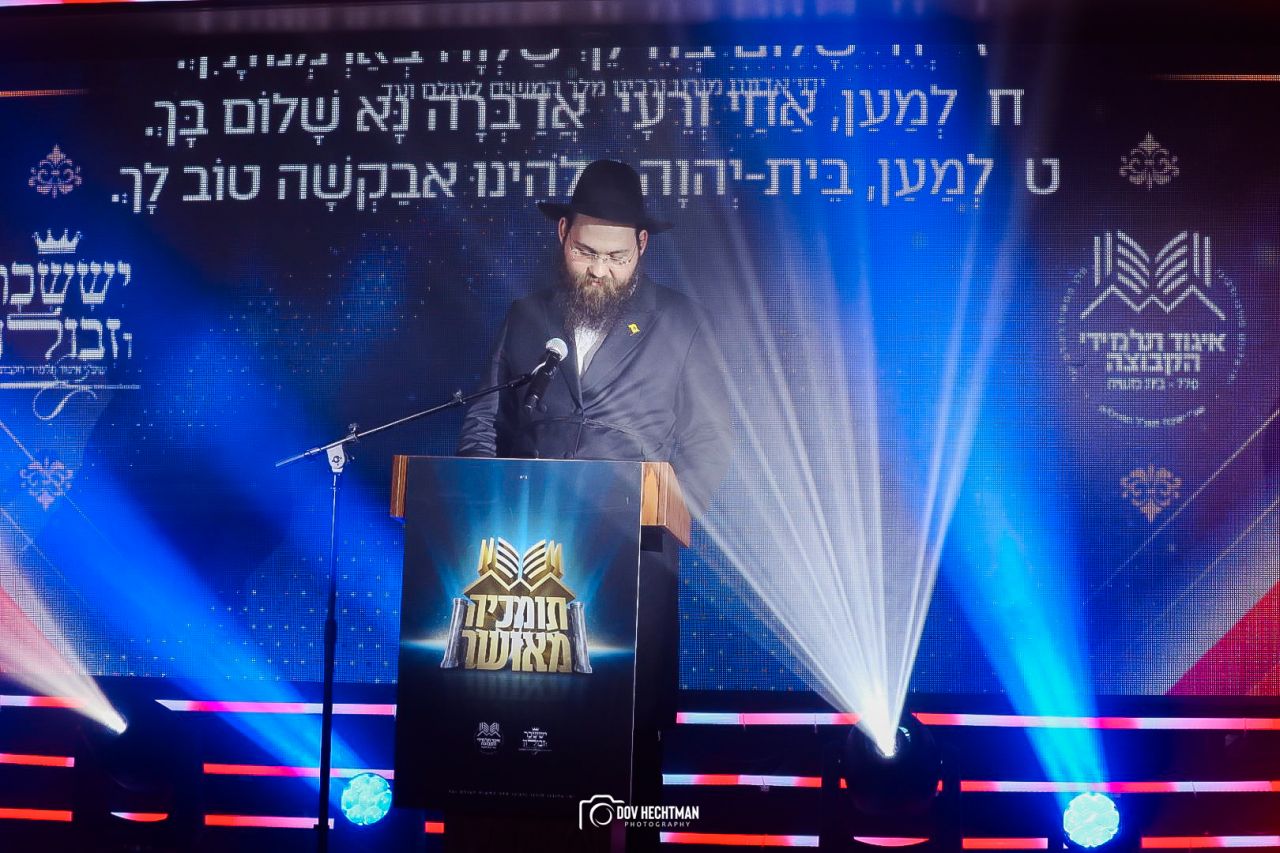 מיד אחריו מוזמן הרב חיים מאיר זלמנוב, מהנהלת 'איגוד תלמידי הקבוצה', לקרוא את פרקו של הרבי מלך המשיח שליט"א. על המסכים נראים מראות קודש, המשקפים לקהל המשתתפים את גודל החשיבות בלימוד התורה בשקידה והתמדה של תלמידי הישיבה.