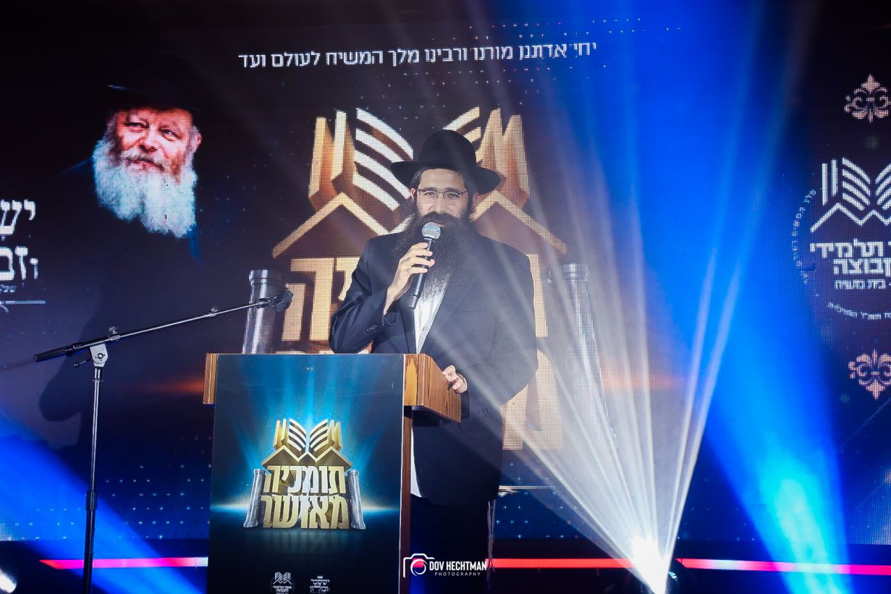 המנחה הרב הלל רסקין האחראי על מסלול גירסא בפרויקט, פותח את האירוע המרגש במילות ברכה ומזמין את ראש ישיבת תות"ל המרכזית הרב שניאור זלמן לבקובסקי, הרב לבקובסקי פותח בנתינת יישר כח לתומכים שמסייעים לתלמידים שיוכלו ללמוד בשקידה והתמדה ומספר את הסיפור הנפלא על ביקור הבעש"ט בעיירה בה כל הילדים נקראו בשמות ברוך משה וברכה לאה על שם זוג חשוכי ילדים שהיו שנים קודם לכן בעיירה שתמכו והחזיקו את לימוד התורה ועל שמם נקראו כל הילדים, הרב לבקובסקי מסיים שוב בשם הנהלת הישיבה בנתינת תודה עמוקה לכל התומכים ומאחל כתיבה וחתימה טובה.