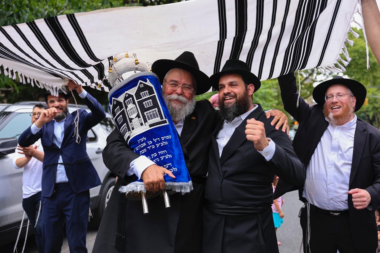 סיום כתיבת האותיות התקיים בבית משפחת חנן שיחיו, ולאחר מכן יצאו בתהלוכה שמחה ברחובות קראון הייטס לעבר בית משיח 770 שם התקיימה שמחת ההקפות והכנסת ספר התורה ברוב שירה וזמרה ושמחה גדולה ורבה