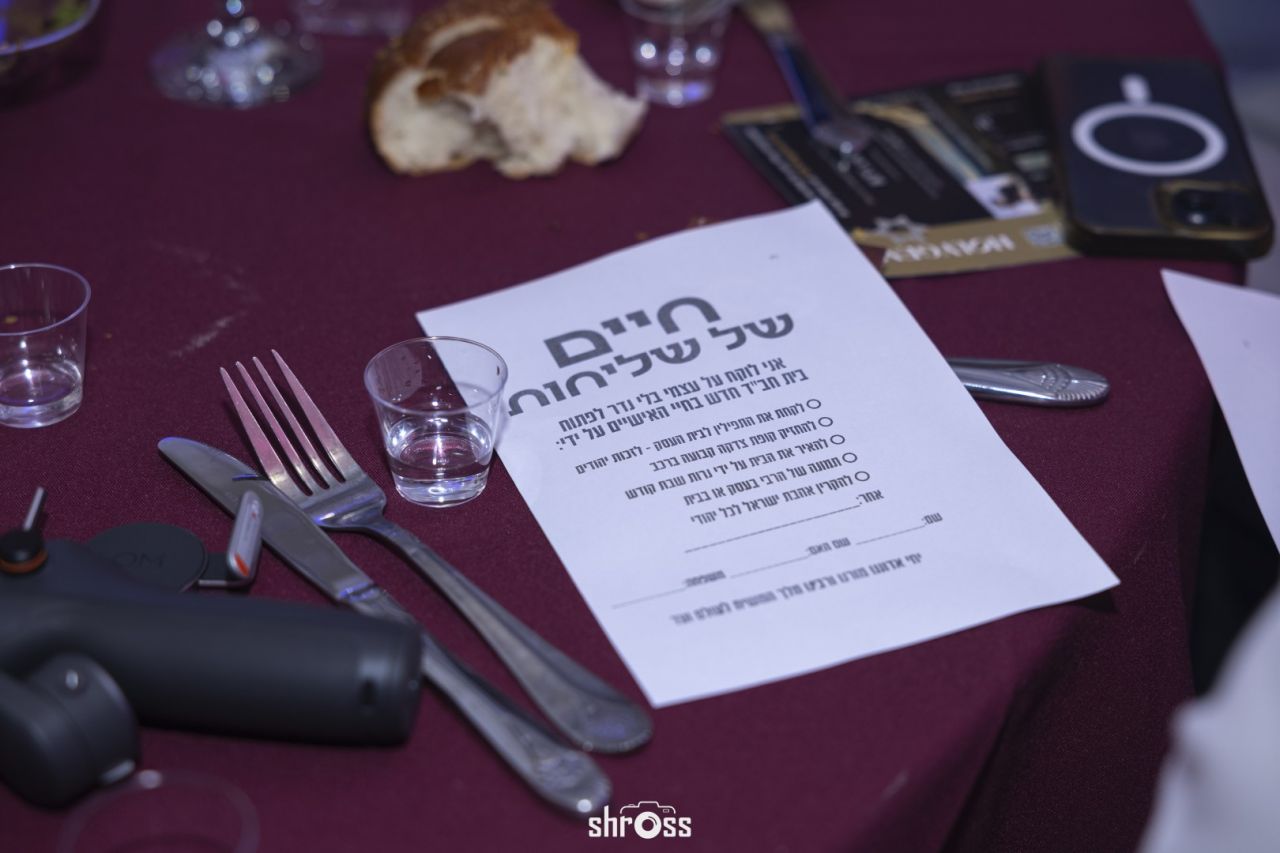 תוך כדי הסעודה החגיגית ואמירת 'לחיים' פותח הזמר המוכר בערל צוקר במחרוזת ניגוני חב"ד תוך נגינה של אומן הקלידים מענדי גדסי המקפיץ את הקהל בשמחה ובחיות מיוחדת.