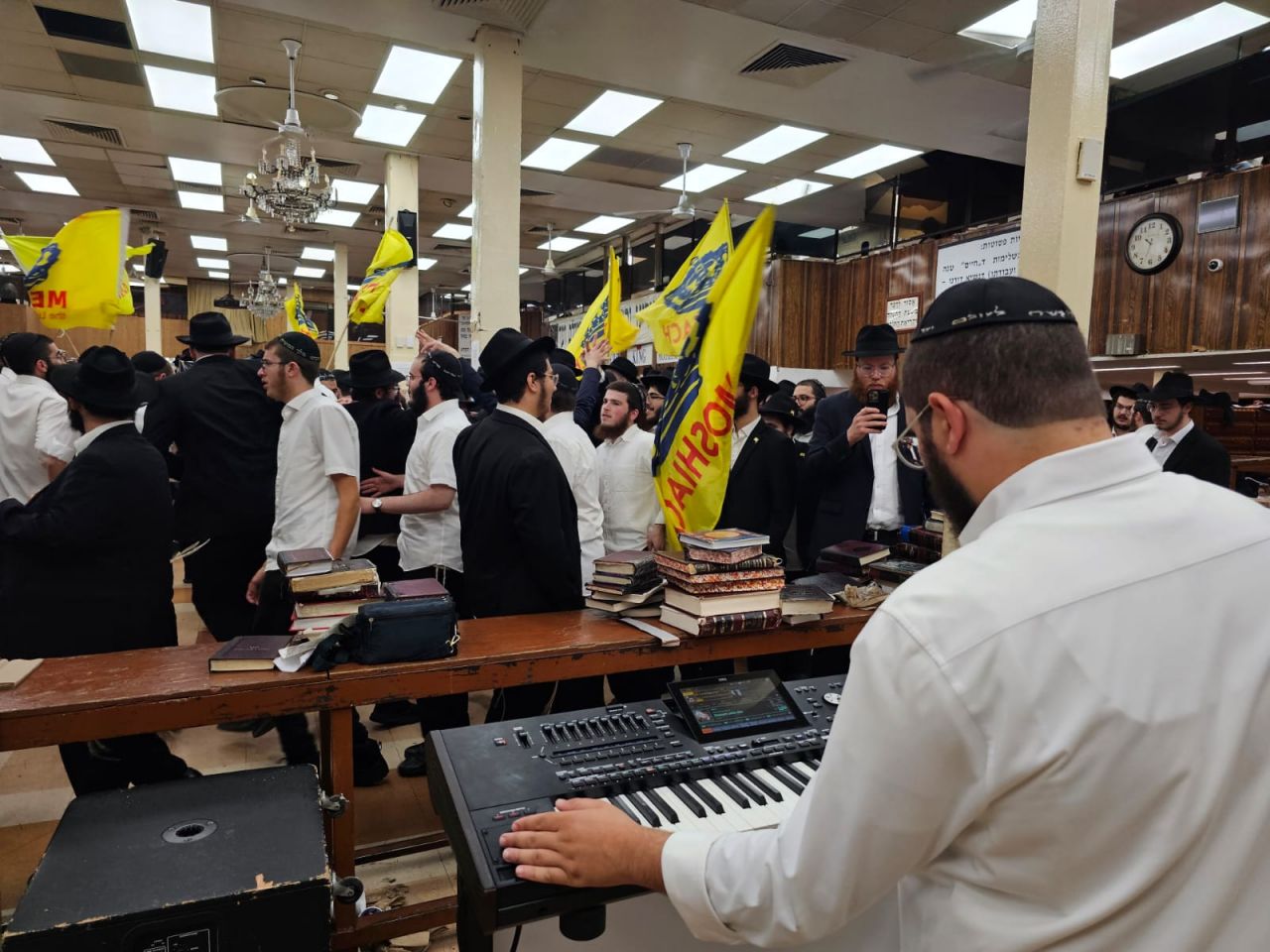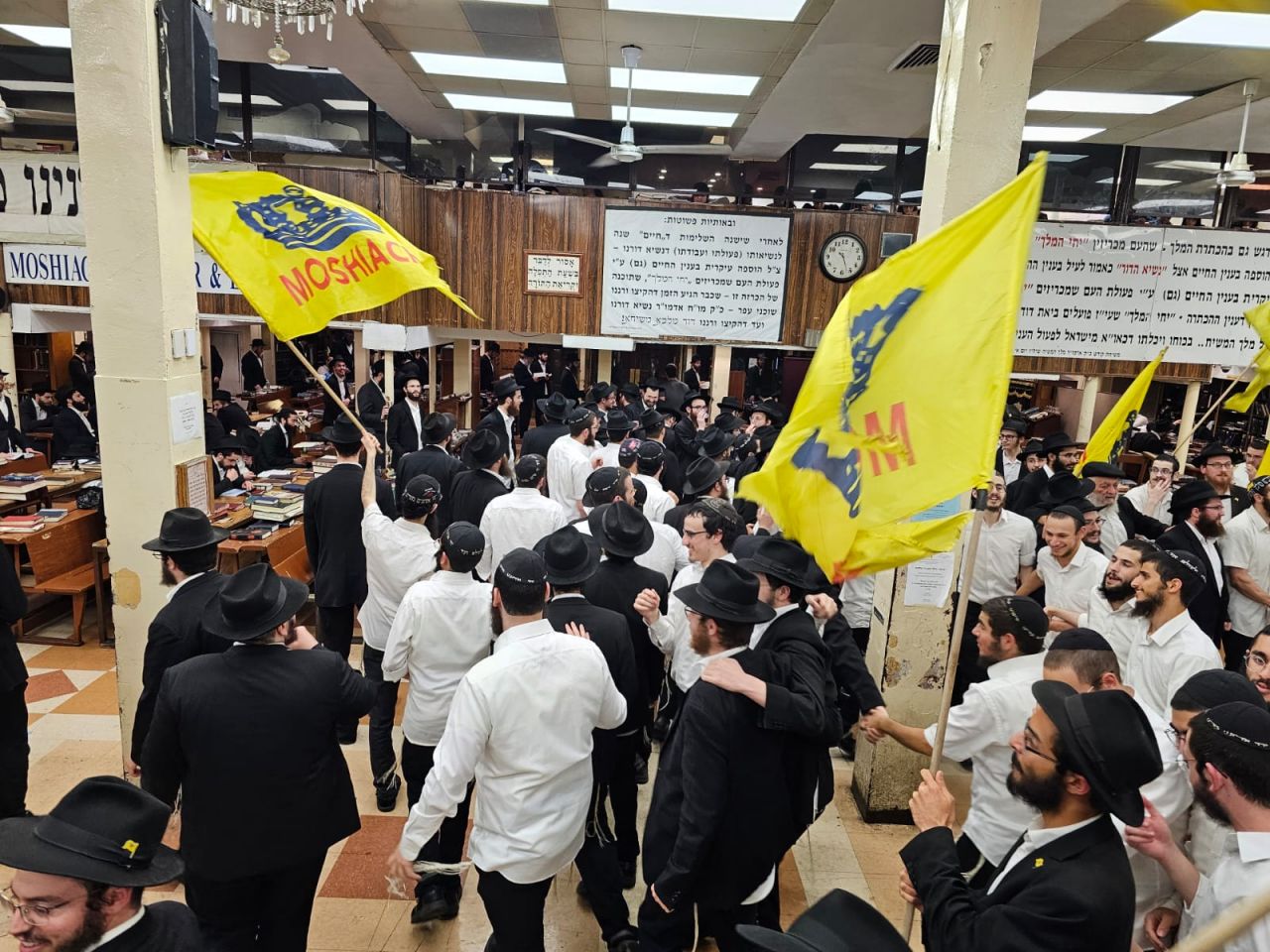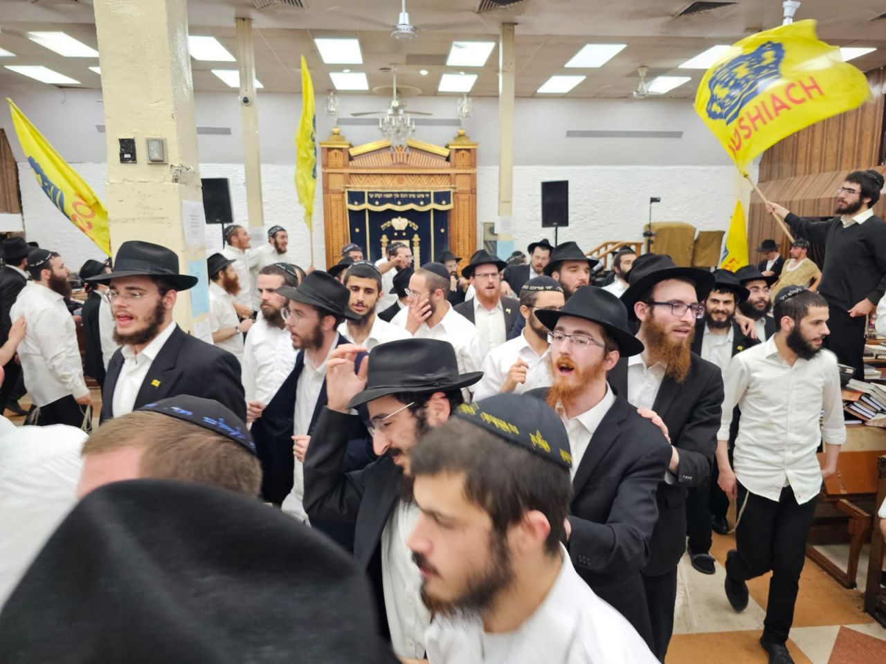 מטה שירה וזמרה ב-770, נטל על עצמו את המשימה לארגן ריקודי שמחה, במועדים שונים, ובינהם התאריך ט"ו אלול. אמש התקיימו ריקודים סוערים עם דגלי משיח ובתוספת נגינה בכלי שיר.