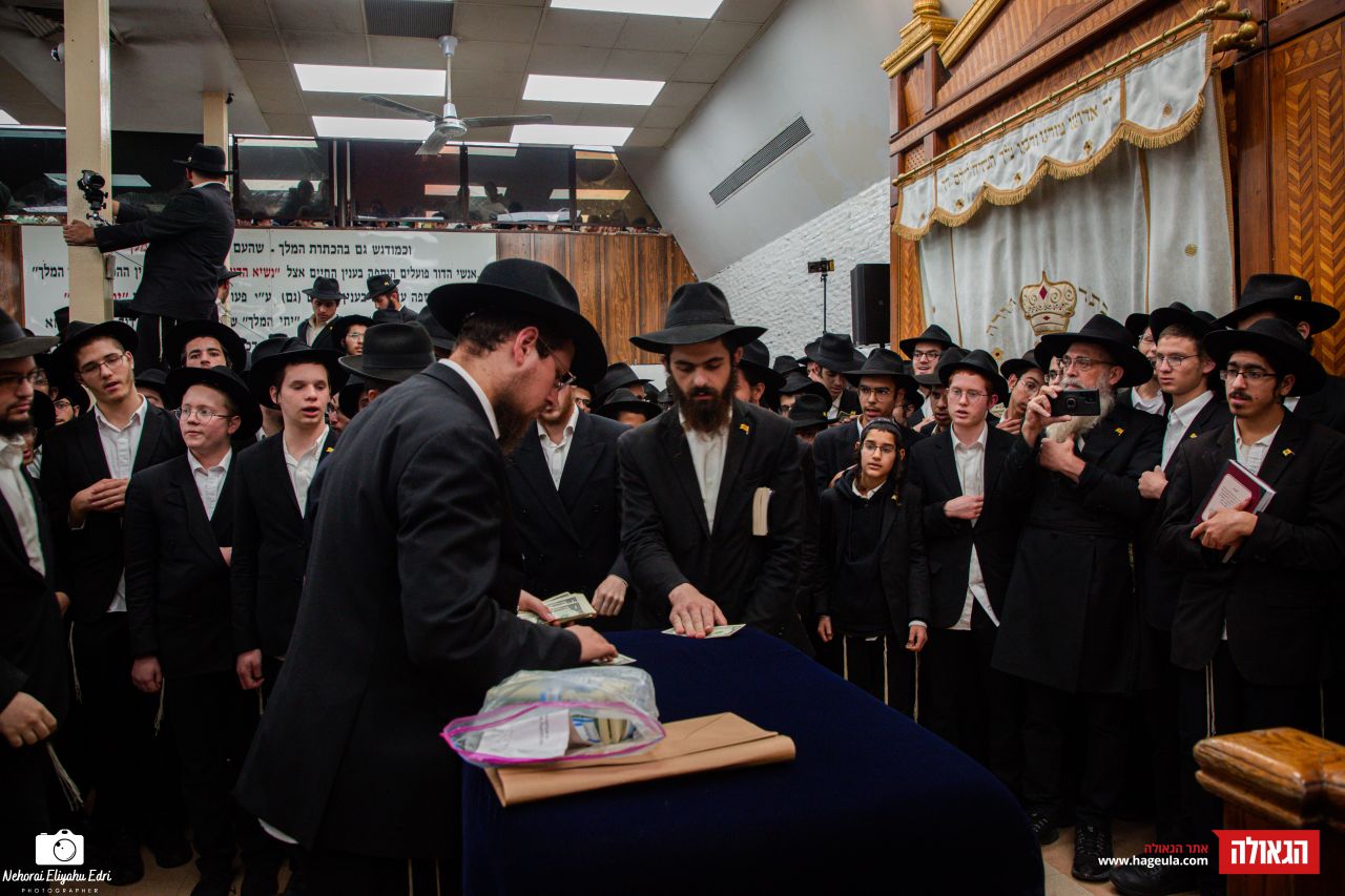 אמש (רביעי) לאחר תפילת מנחה וקריאת התורה נשאר הקהל לעמוד על מקומו ל"דברי כיבושין" - שיחה לרגל 'יום רצון לה'". לאחר כשעה החל מעמד חלוקת דולרים לברכה והצלחה בזאל הגדול.