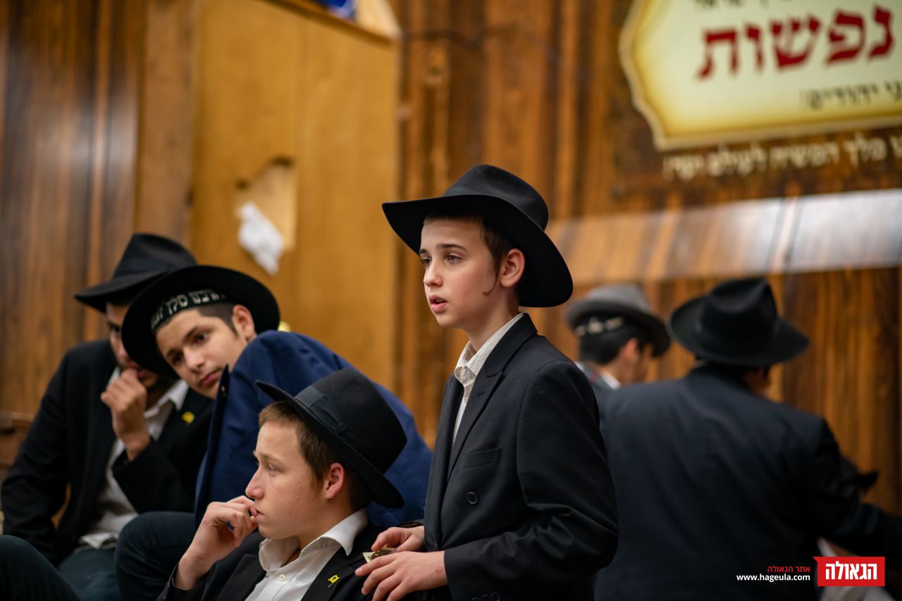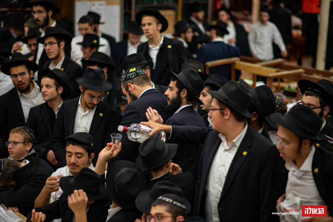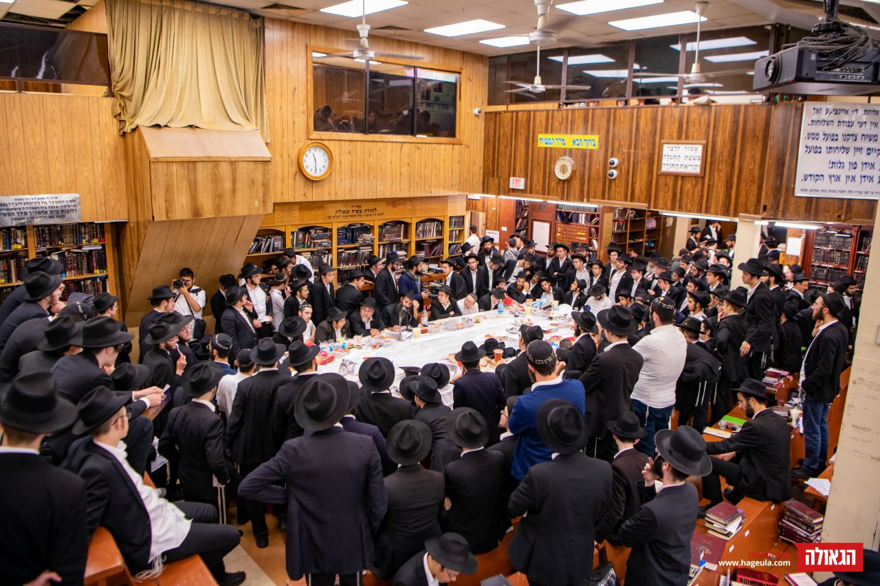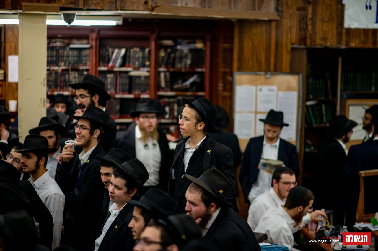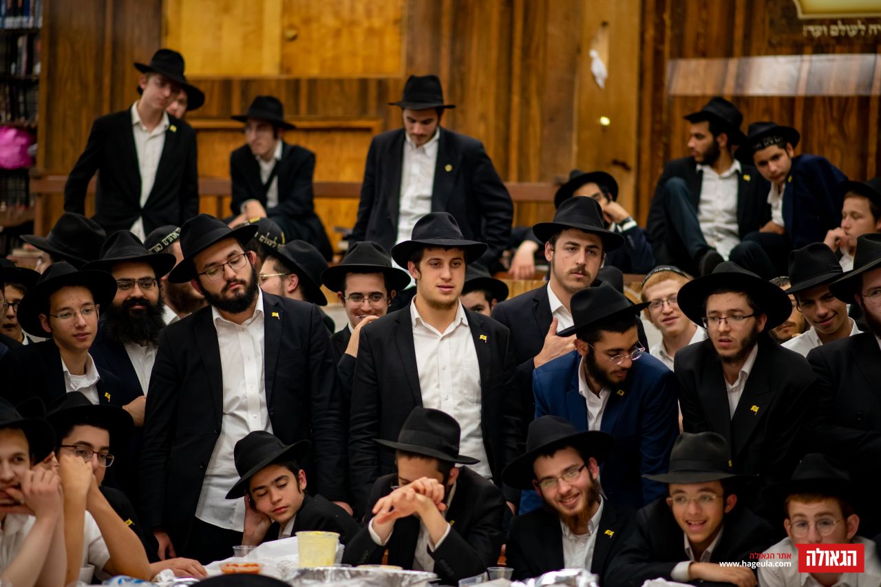 כ-200 בחורים ישבו סביב השולחן והספסלים הסמוכים והאזינו לרבנים בקשב.