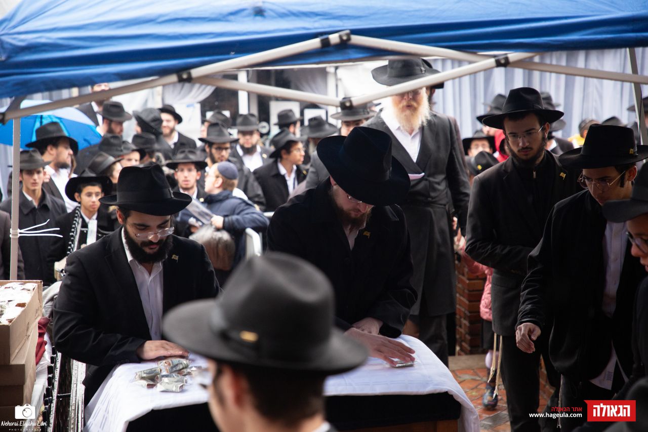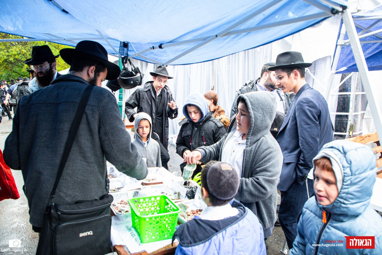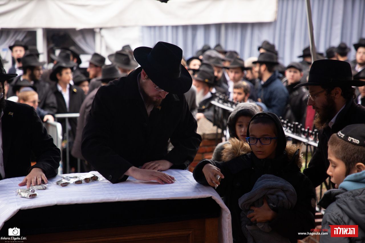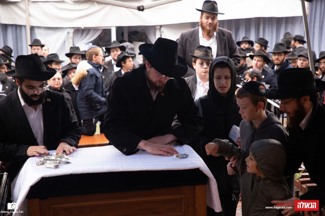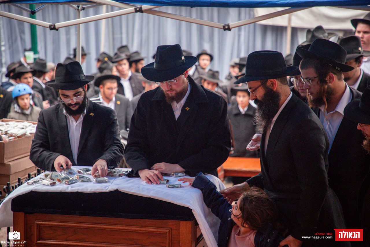 לאחר כעשרים דקות החל הרבי מלך המשיח שליט"א לחלק לקהל האלפים פרוסת 'לעקאח' - עוגת דבש בצירוף שטר של דולר, כפי מנהג חב"ד. לאחר תור הגברים, עברו גם מאות נשים לקבל 'לעקאח'.
