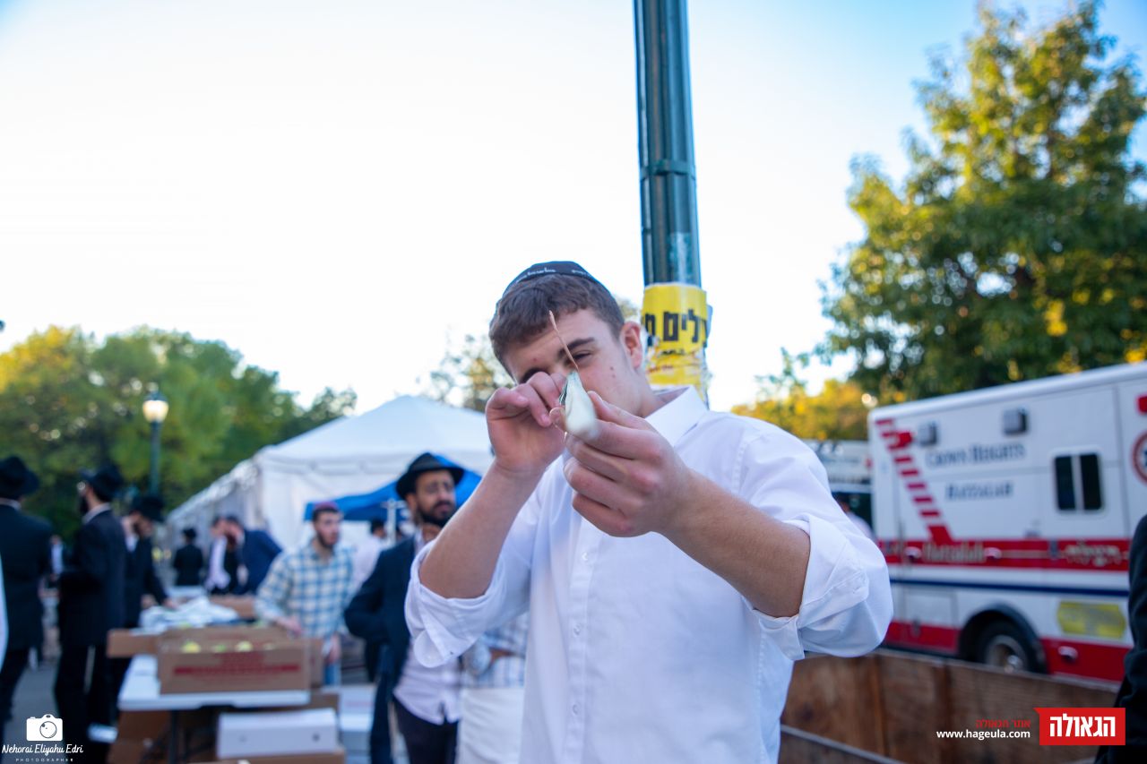 צלם אתר הגאולה בניו יורק, נהוראי אדרי, לא התאפק ויצא לתעד את הרגעים האלו. צפו בתיעוד: