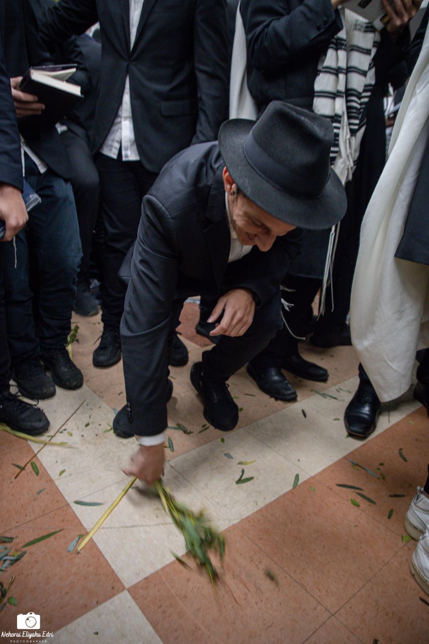 לאחר ההושענות קיים הקהל את מנהג 'חביטת ערבות', וכל בית הכנסת התמלא בעלים ירוקים. בסיום התפילה חילק הרבי מלך המשיח שליט"א פרוסת 'לעקאח' לאלו שלא קיבלו בערב יום כיפור.