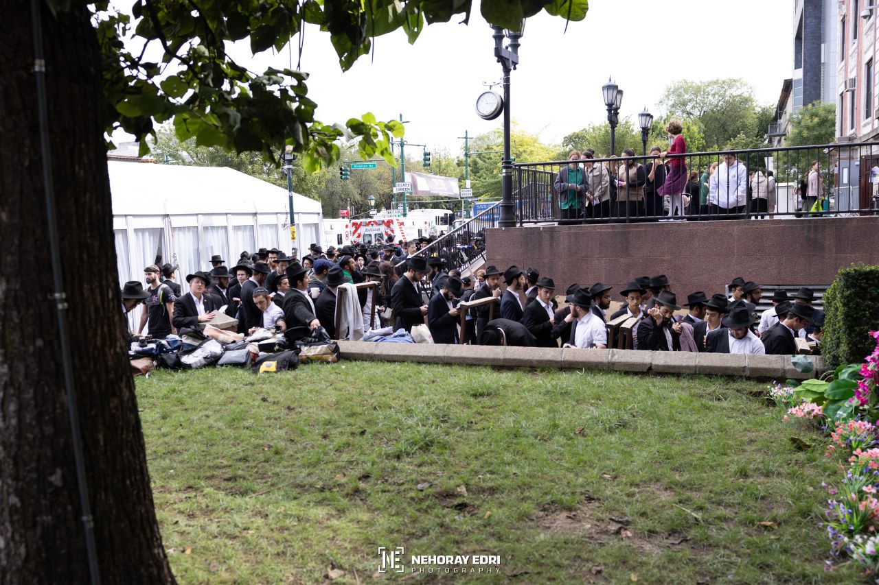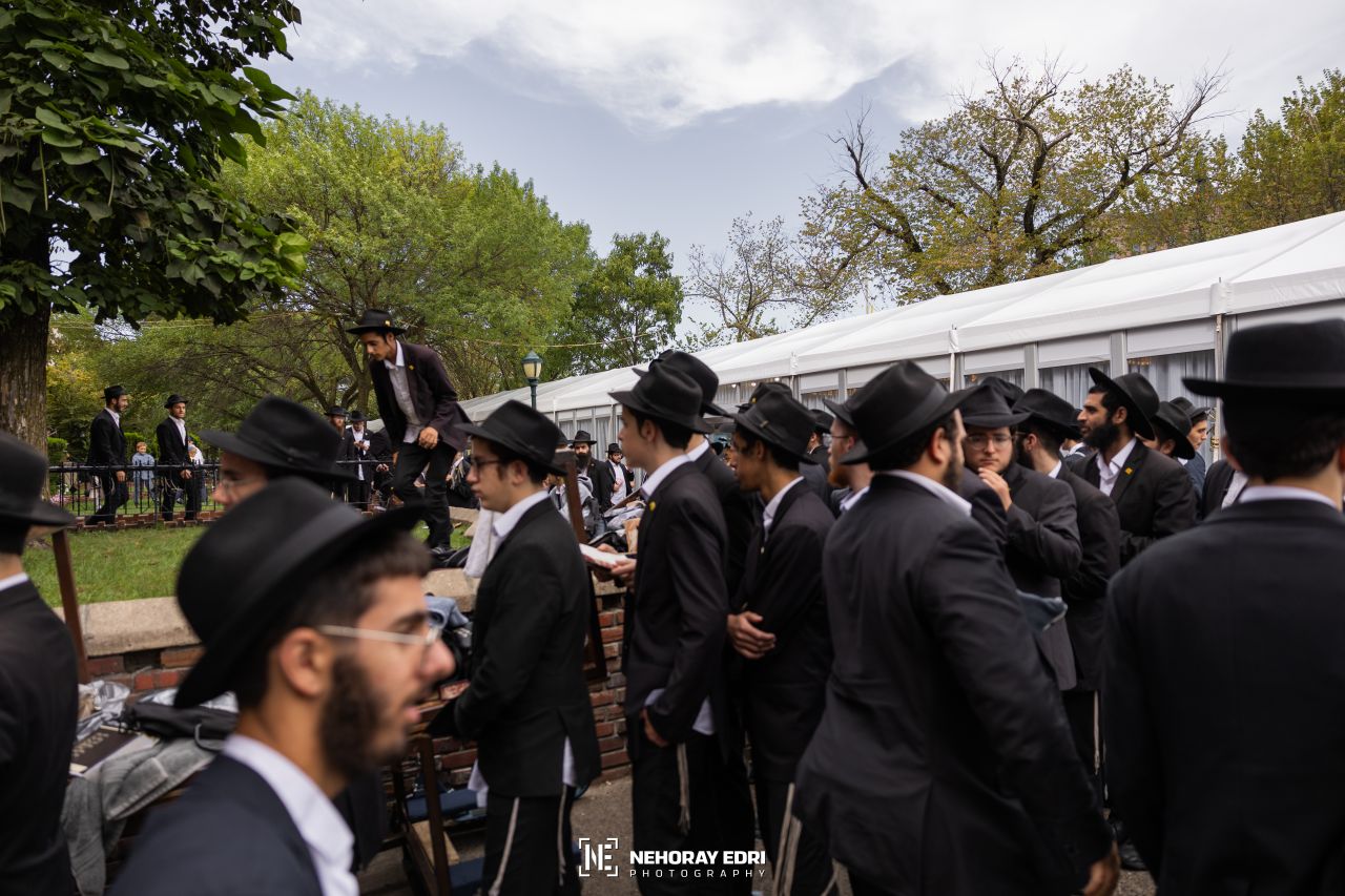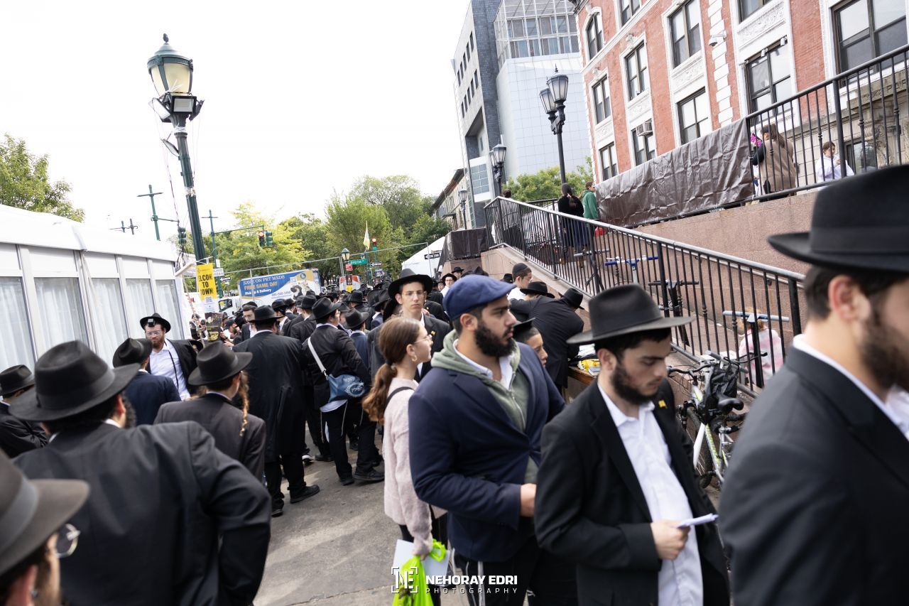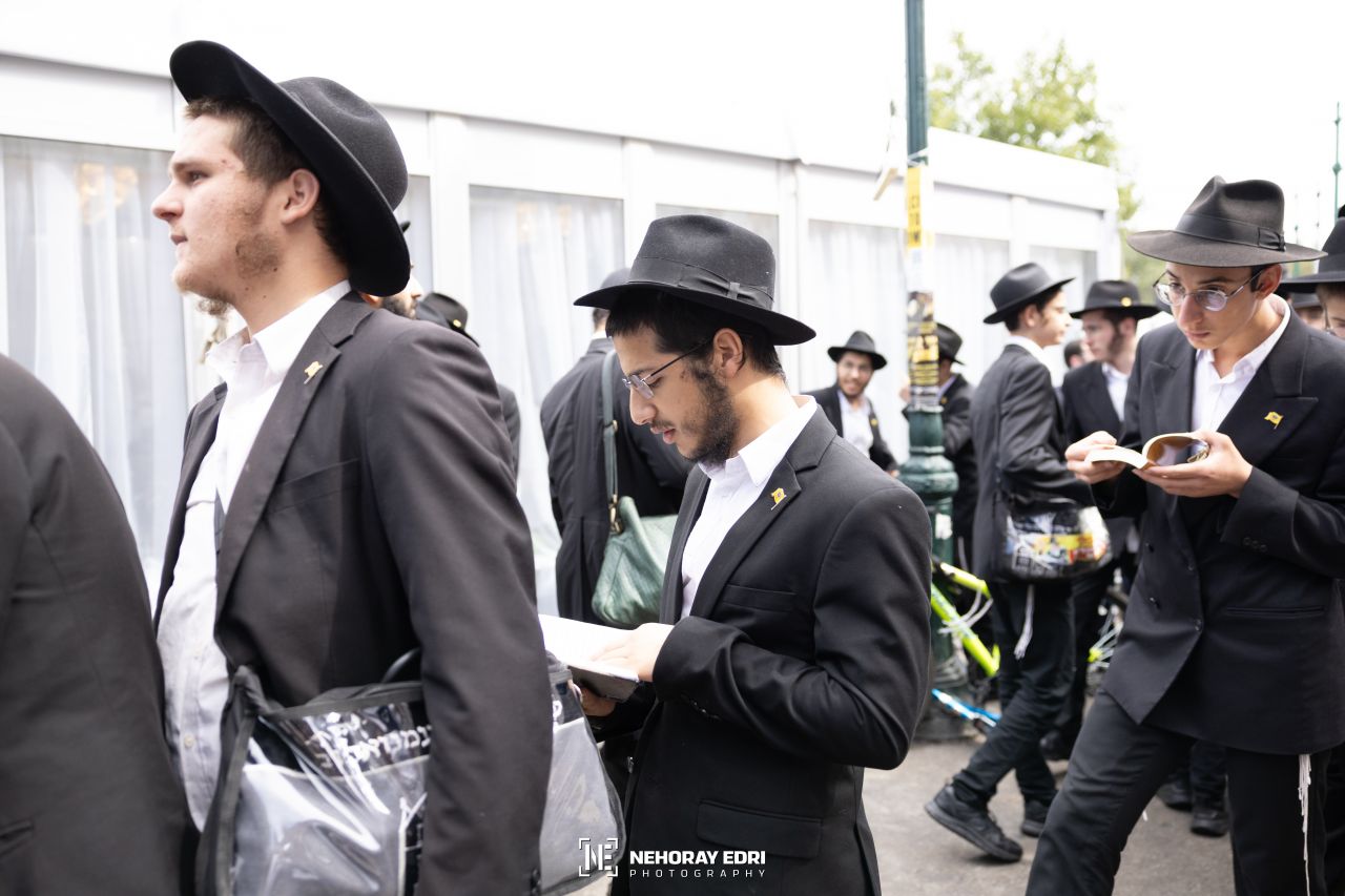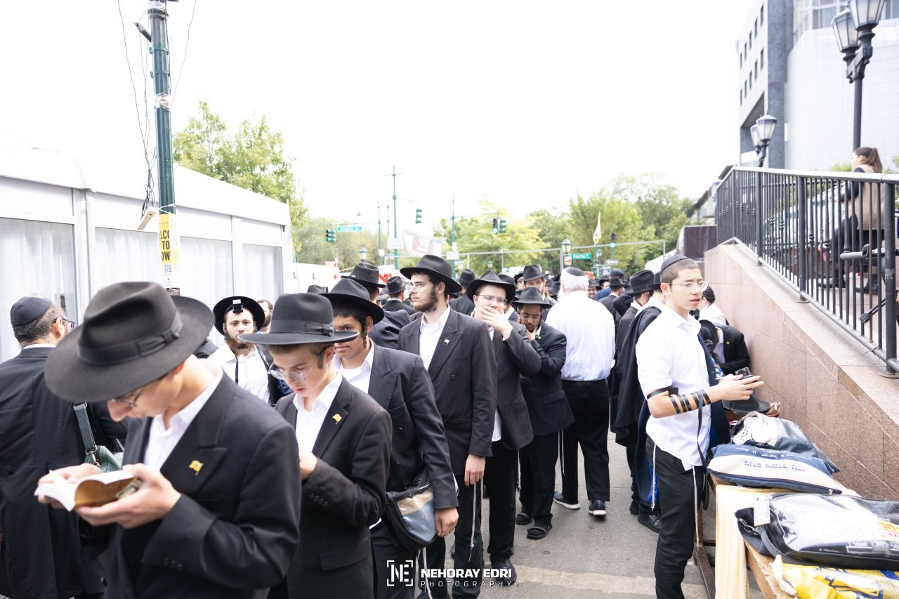 כעשרים דקות לאחר תפילת שחרית בערב ראש השנה, השתרך תור של אלפי חסידים, כאשר כל אחד חולף מול מלך המשיח לשניה אחת, ומגיש לו את הפ"נ.