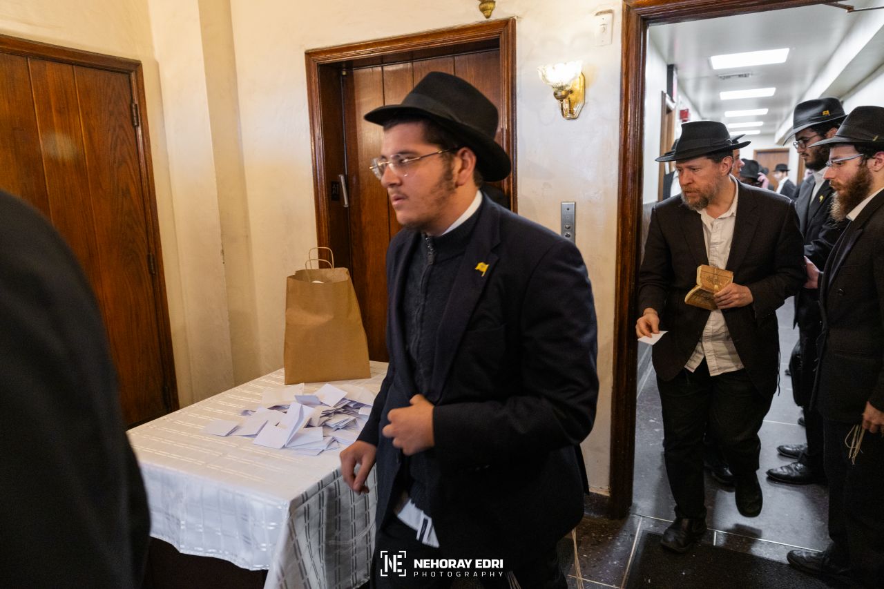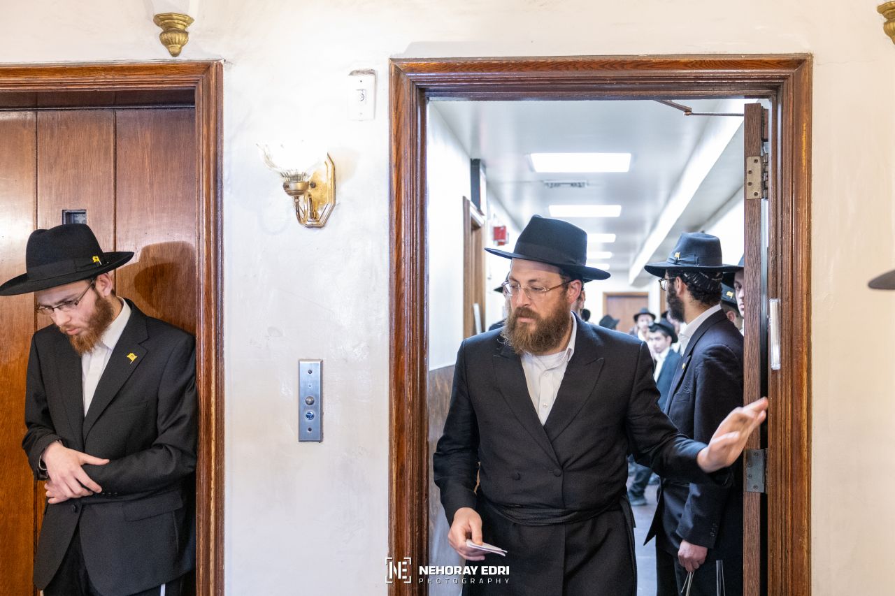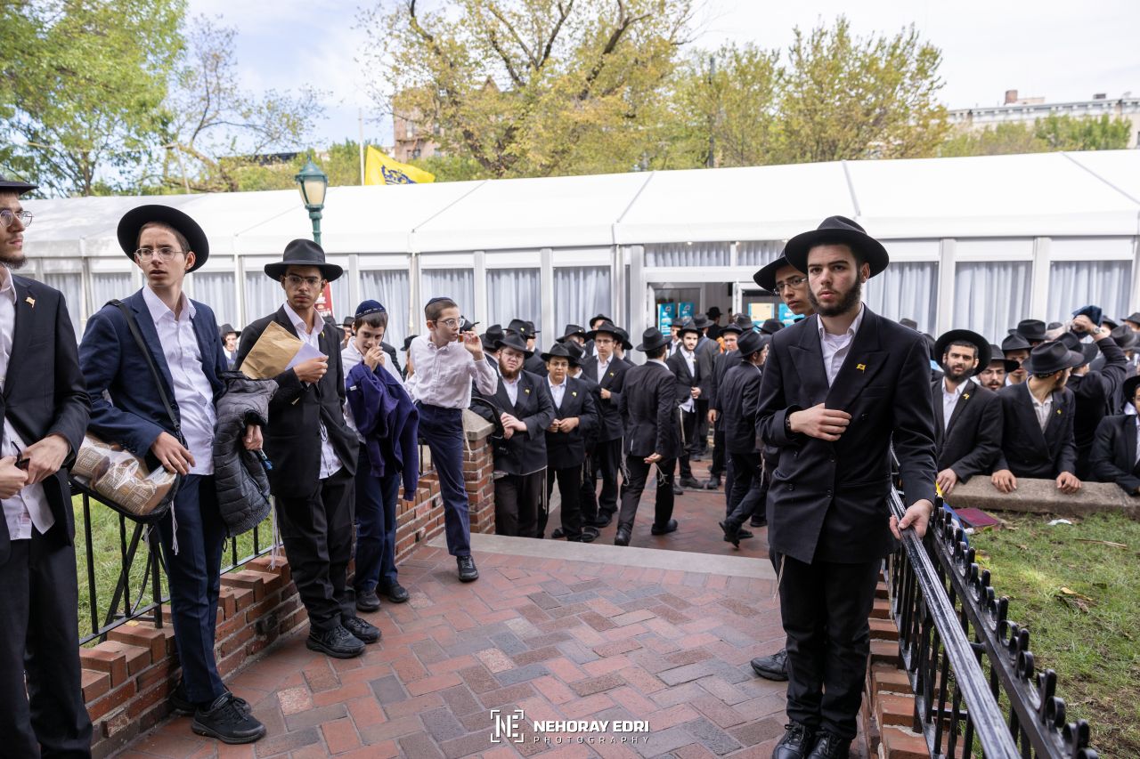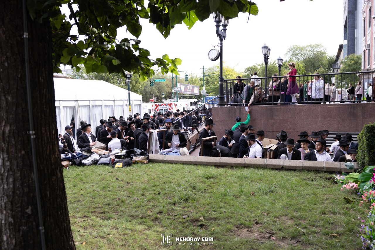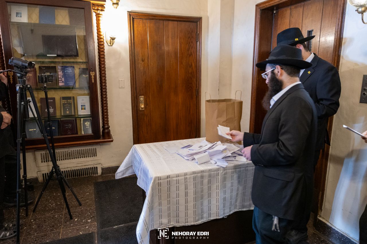 כעשרים דקות לאחר תפילת שחרית בערב ראש השנה, השתרך תור של אלפי חסידים, כאשר כל אחד חולף מול מלך המשיח לשניה אחת, ומגיש לו את הפ"נ.