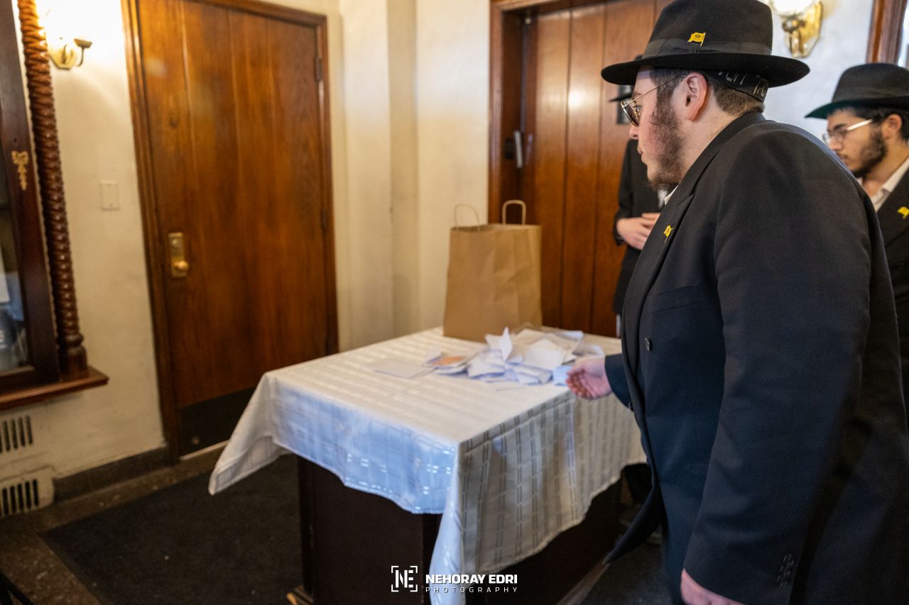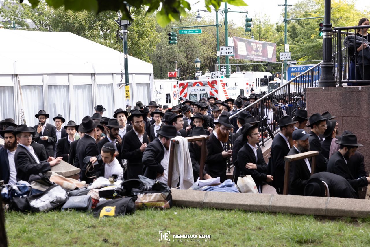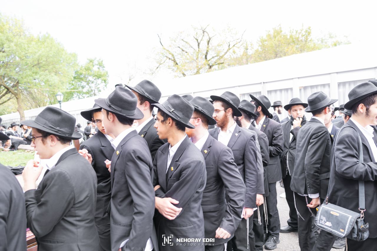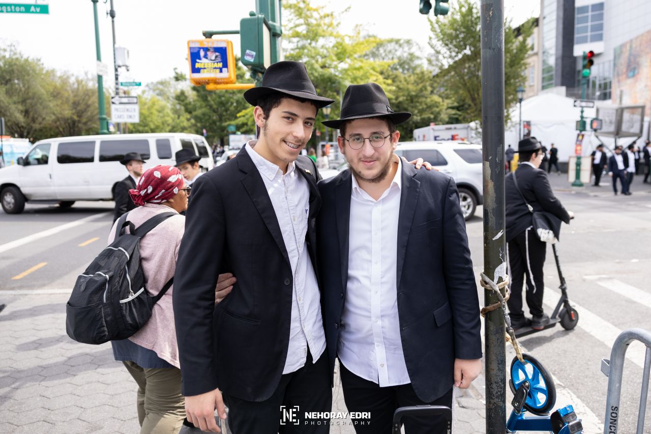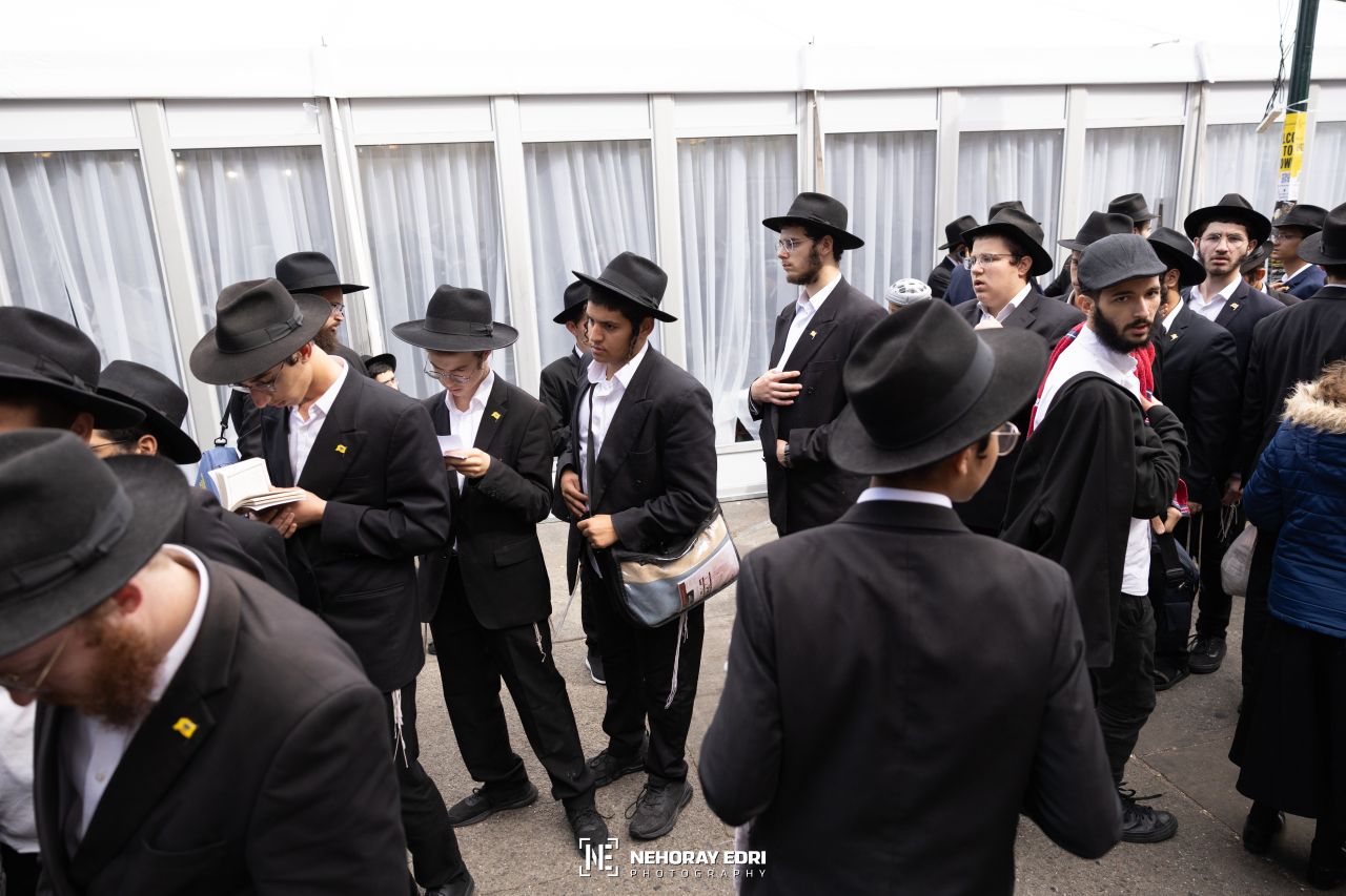 כעשרים דקות לאחר תפילת שחרית בערב ראש השנה, השתרך תור של אלפי חסידים, כאשר כל אחד חולף מול מלך המשיח לשניה אחת, ומגיש לו את הפ"נ.