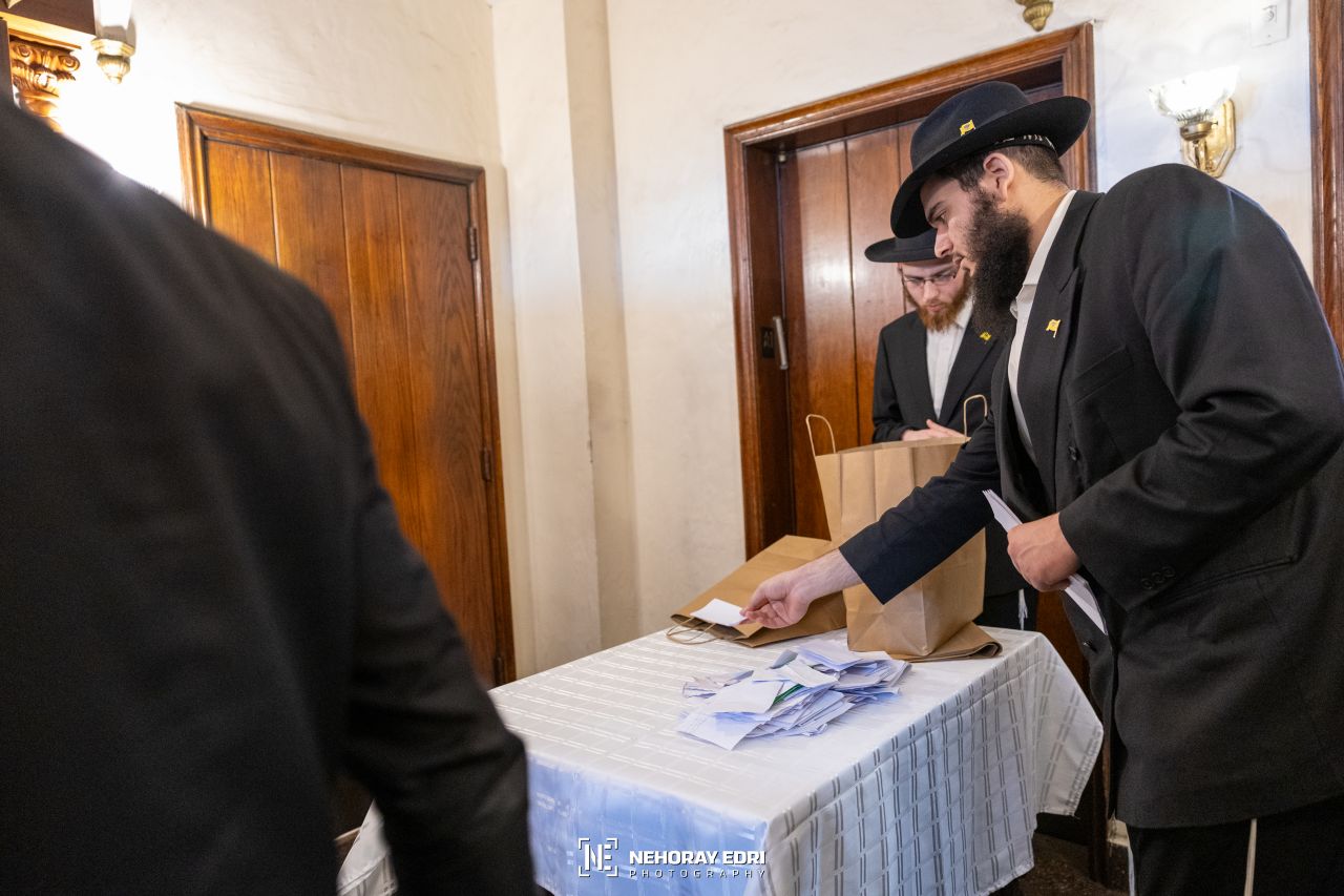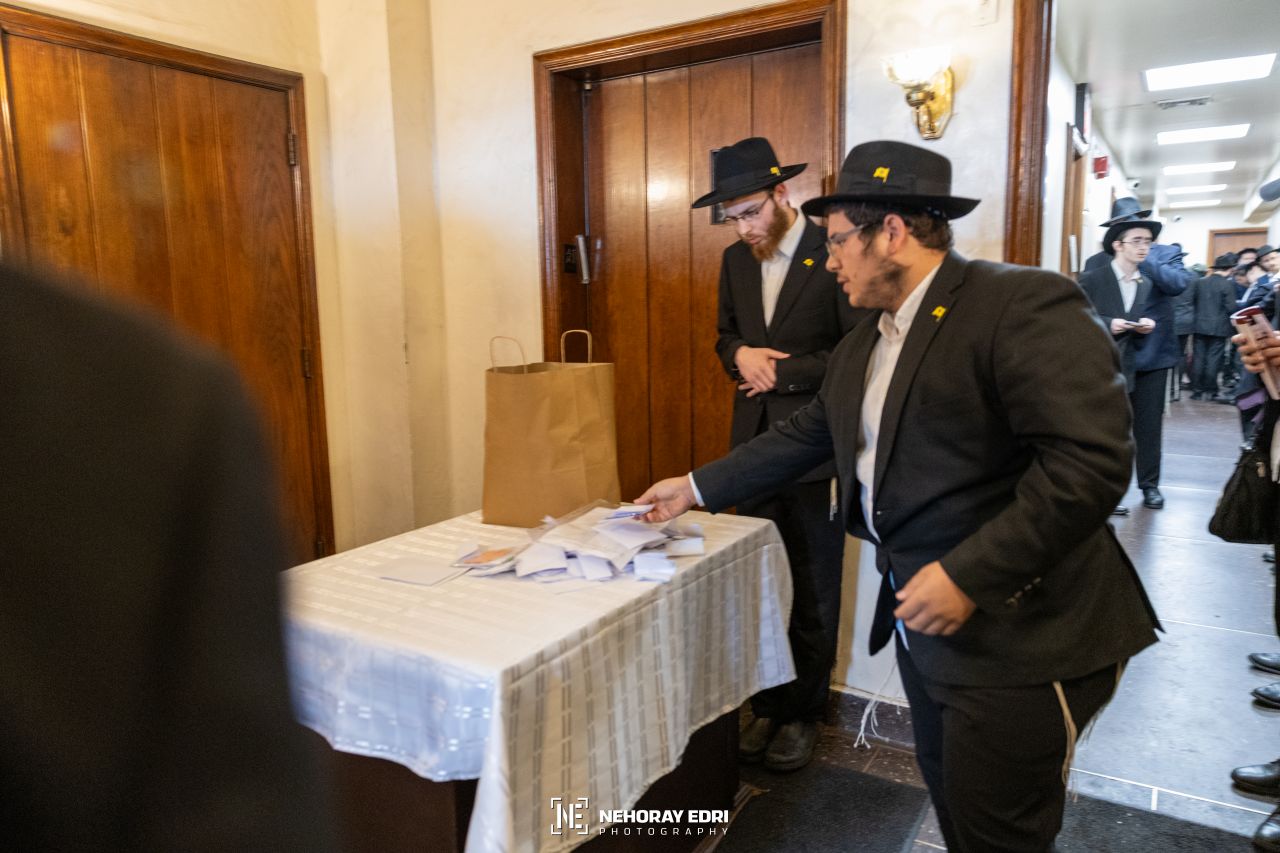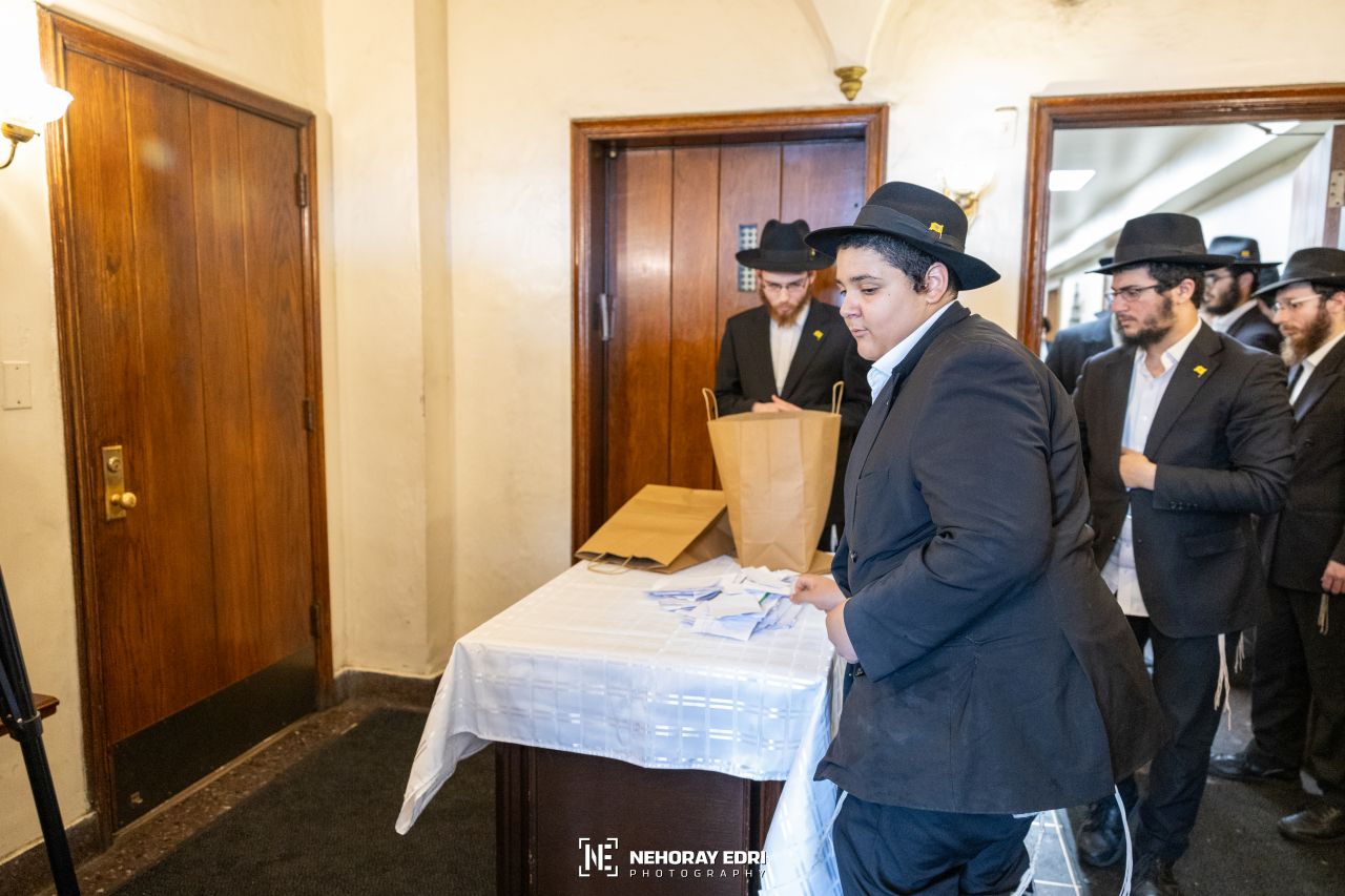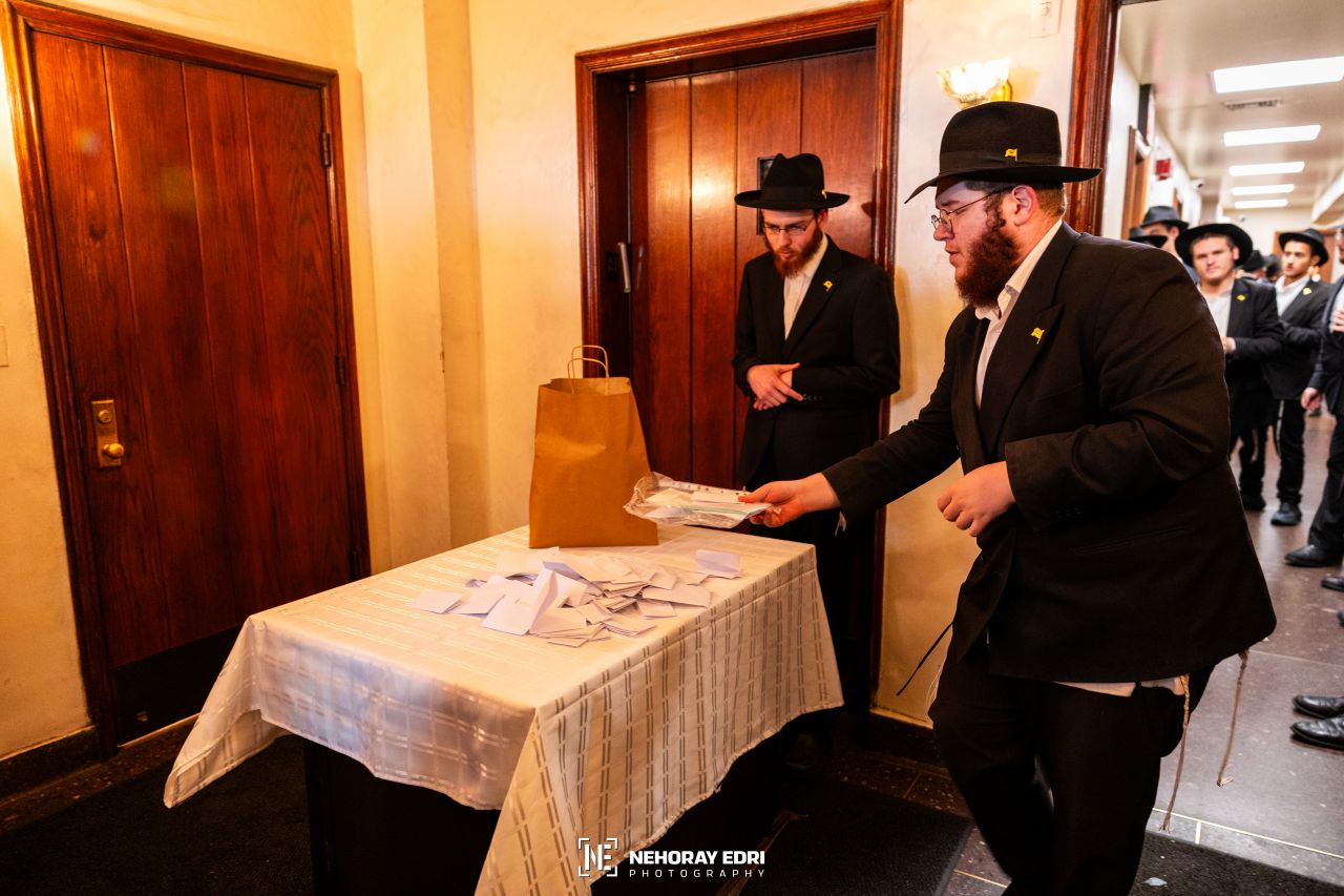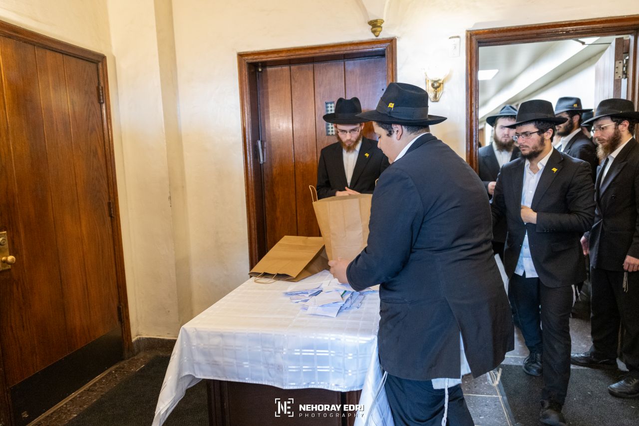 כעשרים דקות לאחר תפילת שחרית בערב ראש השנה, השתרך תור של אלפי חסידים, כאשר כל אחד חולף מול מלך המשיח לשניה אחת, ומגיש לו את הפ"נ.
