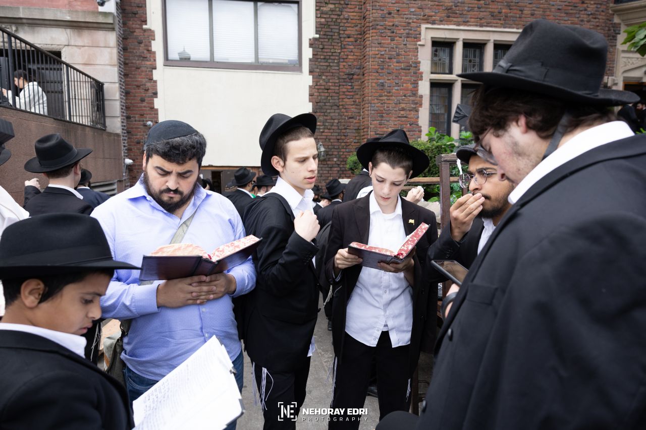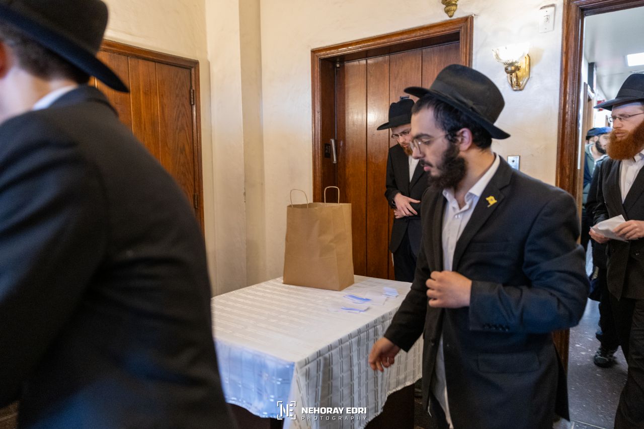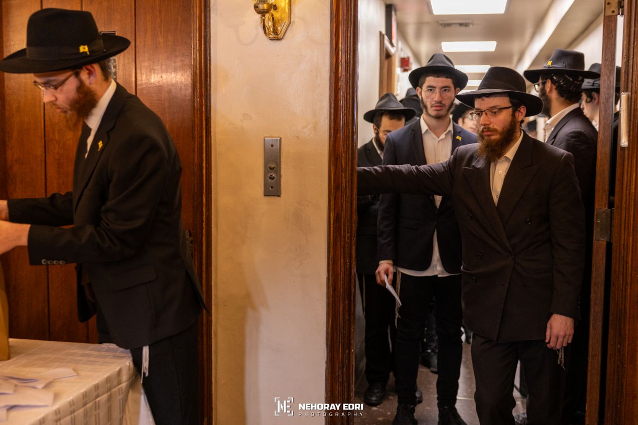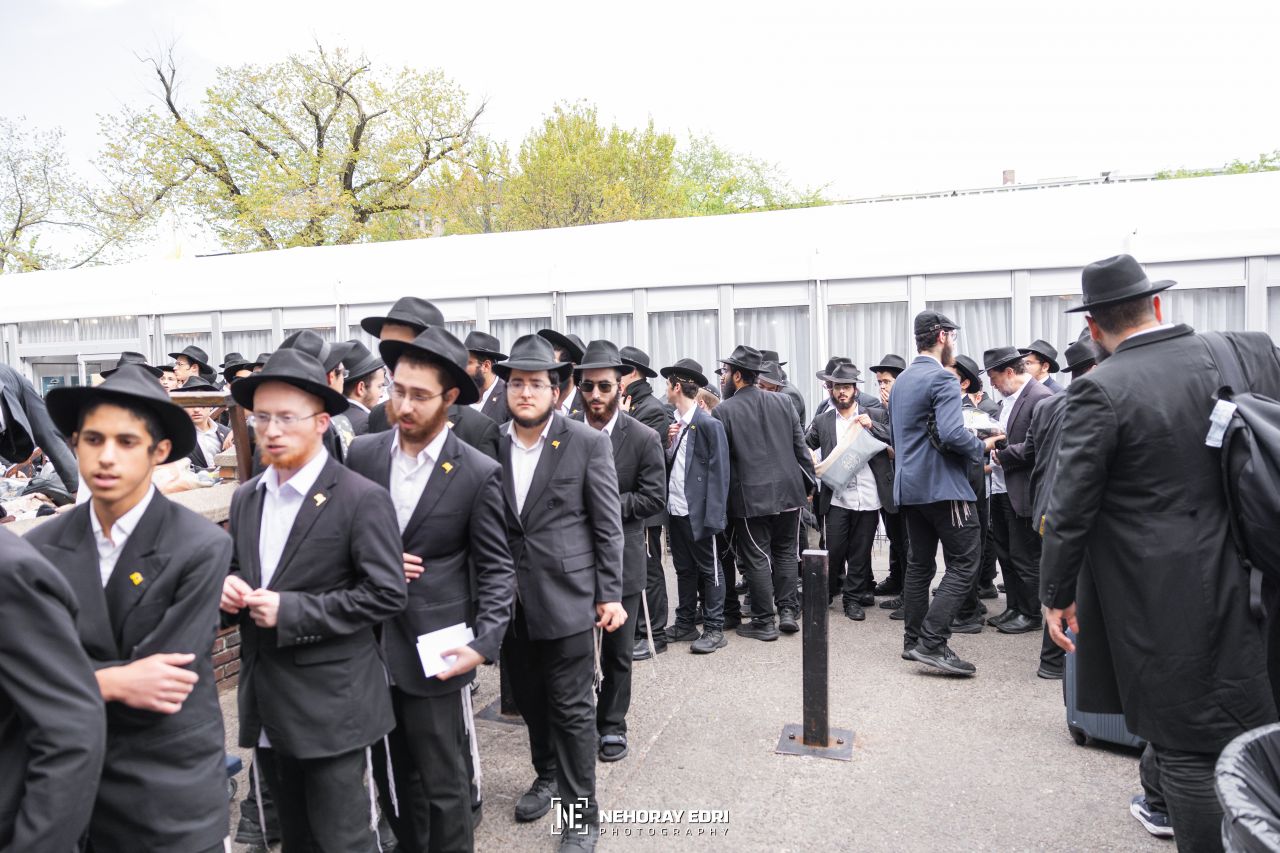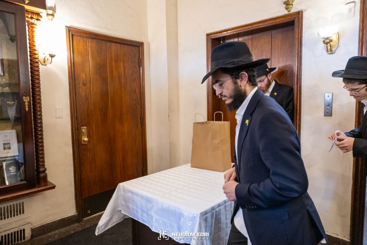 כעשרים דקות לאחר תפילת שחרית בערב ראש השנה, השתרך תור של אלפי חסידים, כאשר כל אחד חולף מול מלך המשיח לשניה אחת, ומגיש לו את הפ"נ.