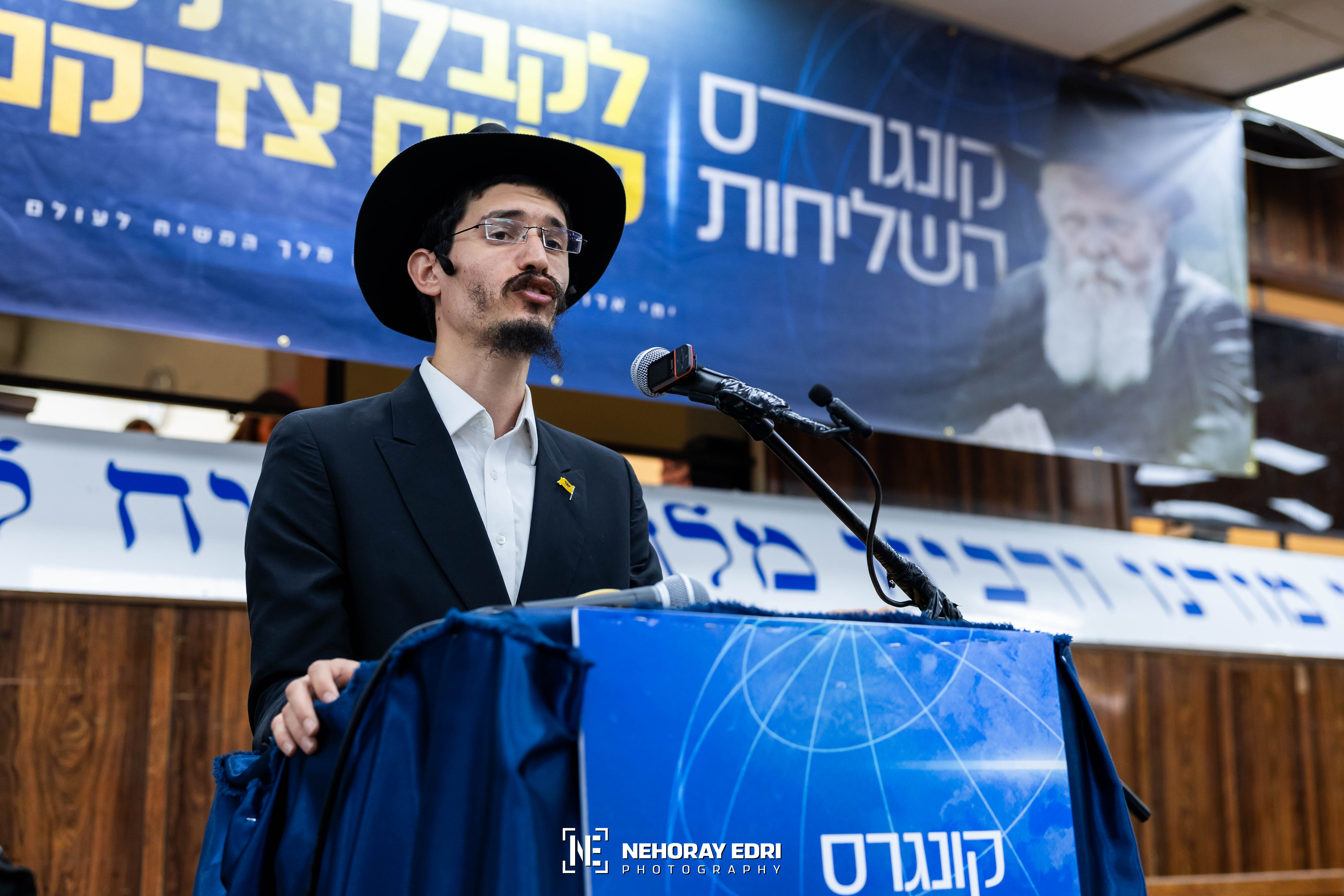 לאחר מכן ניגש המנחה - יו"ר 'מטה יציאה לשליחות' הרב דוד אקסלרוד שדיבר על כך שמטרת הכינוס זה אכן כדי שיהיה במודעות של התמימים שכל תפקידם זה בסופו של דבר, לצאת בפועל ממש לשליחות, ולהכין את העולם לקבלת פני משיח.